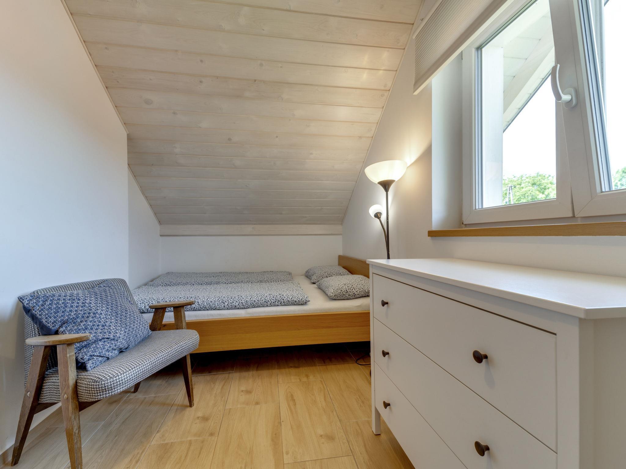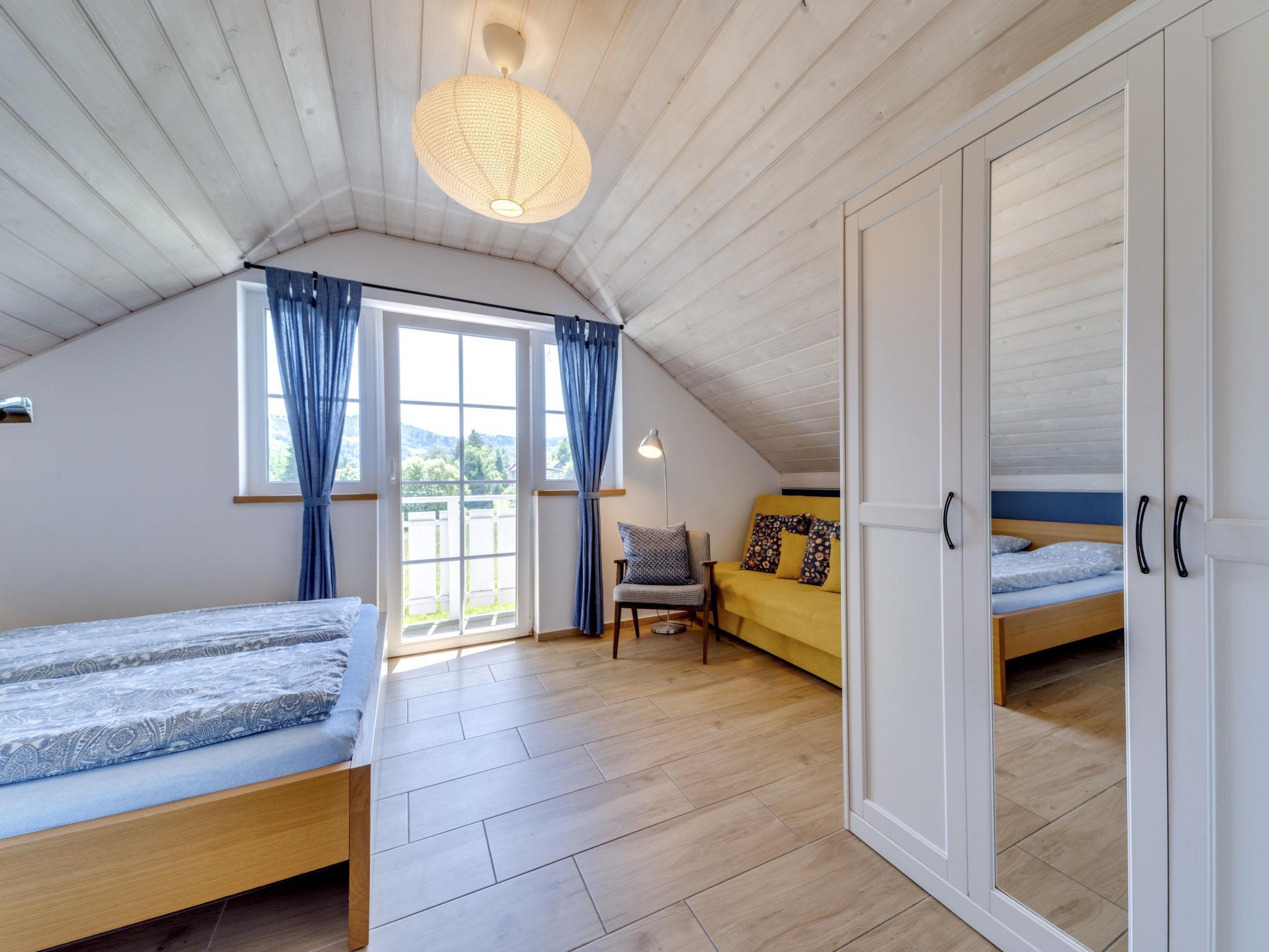 3-Zimmer-Haus 64 m2 auf 2 Stockwerken. Teilweise abgeschrägt, stilvoll eingerichtet: Wohn-/Esszimmer mit 1 Doppeldiwanbett, Esstisch und Sat-TV. Offene Küche (Backofen, Geschirrspüler, 2 Glaskeramikplatten, Tiefkühler). Dusche/WC. Obergeschoss: 1 Zimmer mit 1 Bett (80 cm, Länge 200 cm), 1 Doppelbett (140 cm, Länge 200 cm). 1 Zimmer mit 1 Diwanbett (120 cm, Länge 200 cm), 1 Doppelbett (160 cm, Länge 200 cm). Dusche/WC. G-Heizung. Balkon 3 m2, Terrasse 8 m2. Gartengrill, Liegestühle (8). Sicht auf die Berge. Zur Verfügung: Internet (WLAN). Bitte beachten: Rauchmelder.