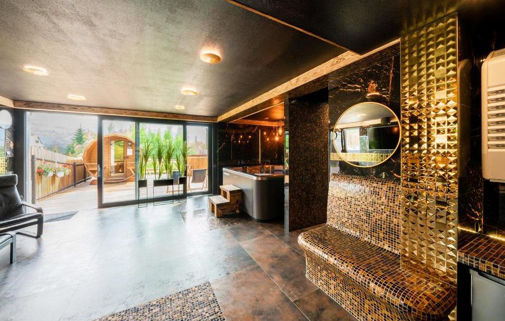 In der Unterkunft genießen Sie einen angenehmen Komfort, und werden neben der Aussicht besonders von den gemeinschaftlich genutzten, vielfältigen Wellness-Angeboten überzeugt sein. Whirlpools und eine Sauna sind tolle Angebote zum Entspannen, zudem können Sie Billard spielen, oder auf der Terrasse den Grill nutzen und beim Blick auf die Berglandschaft an der frischen Luft essen.