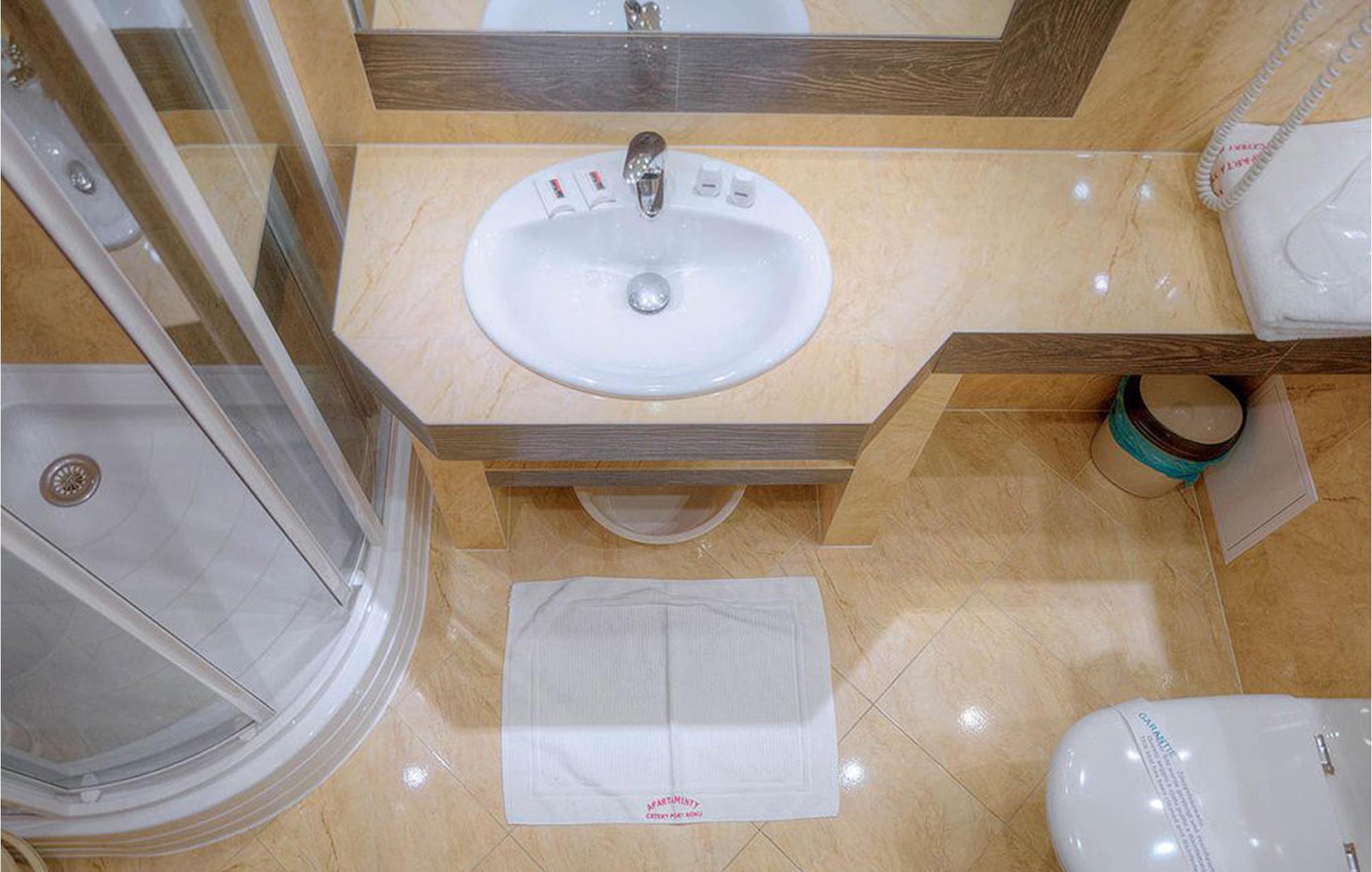 Badezimmer (nr. 1) - WC. Warmes und kaltes Wasser. Dusche