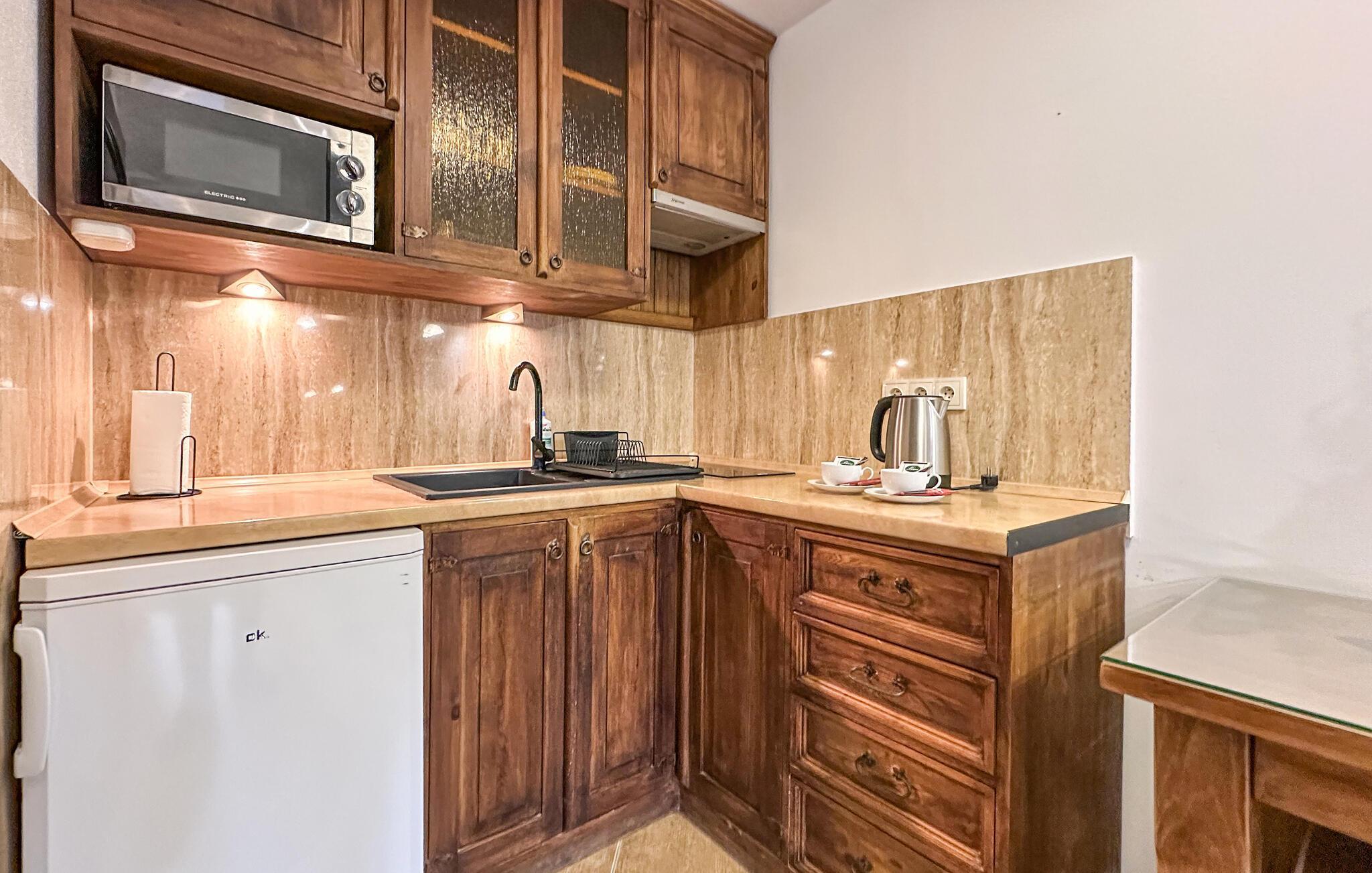 Wohnraum/Küche - 1 Schlafmöglichkeit. (Einzelbett(en)). 2 Schlafmöglichkeiten. (Doppelbett(en)).