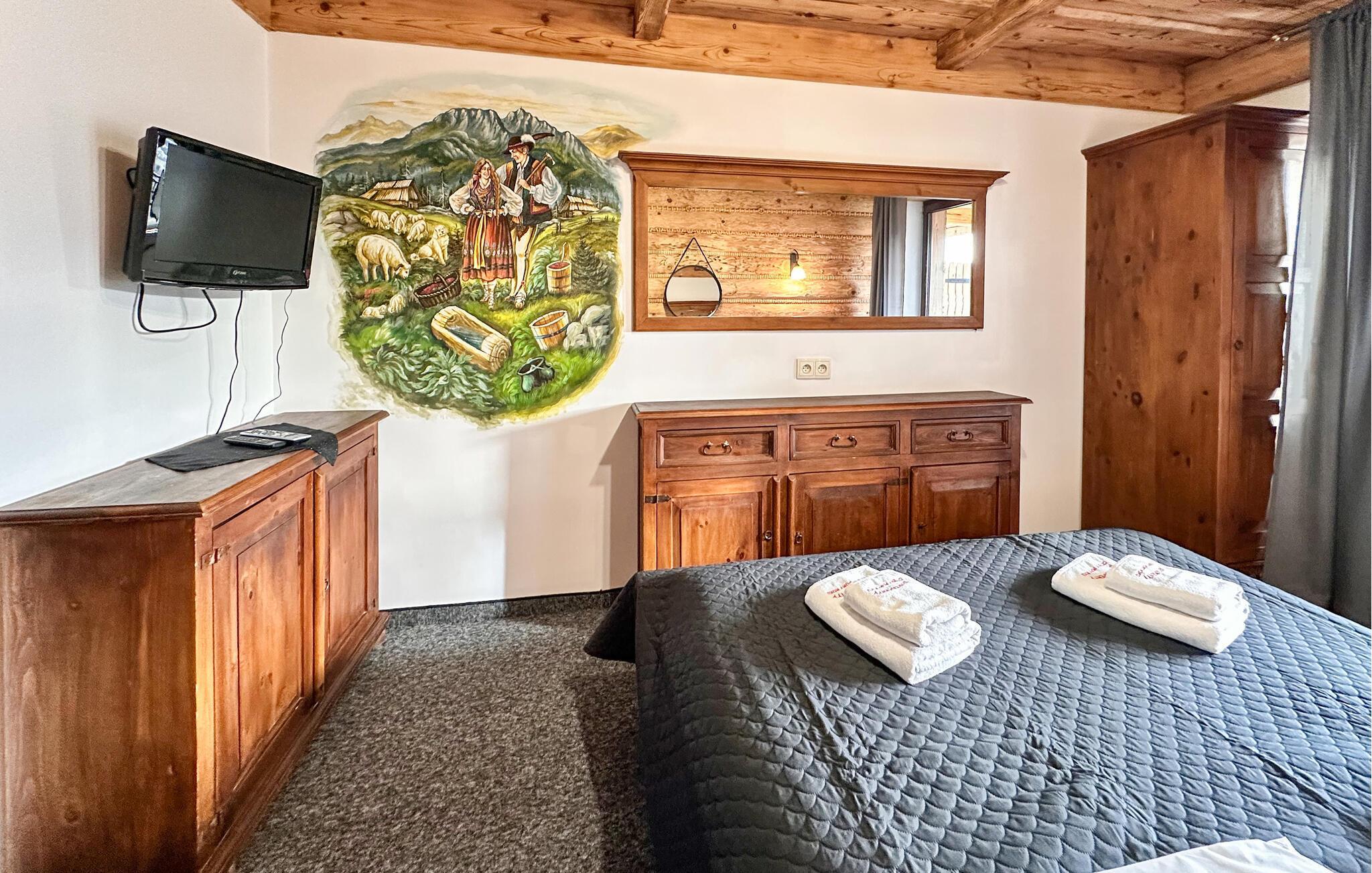 Drei moderne Apartments, ideal für Langläufer und Nordic Walker im Ort Zakopane - Koscielisko. Panoramablick auf die Berge - die polnische Tatra mit dem monumentalen Berg Giewont. Die Tatra bietet viele Möglichkeiten zum Sport treiben. Sie befinden sich auf einem gemeinsamen Grundstück im Ort Zakopane-Koscielisko auf dem sogenannten Papstweg, der über die Salamandra - einer Straße, die in Richtung des Bergkammes Gubalówka führt. Die Einrichtung ist modern und rustikal. Jedes Apartment verfügt über einen Balkon, für jede Wohnung ist auch ein Parkplatz reserviert. Es ist auch ein Internetanschluss vorhanden. Jeder Gast kann kostenlos den Billardsaal benutzen. Vollpension gegen Gebühr möglich. In der Umgebung laden schöne Wanderwege im Sommer und viele Skilifte im Winter dazu ein, Land und Leute kennen zu lernen.