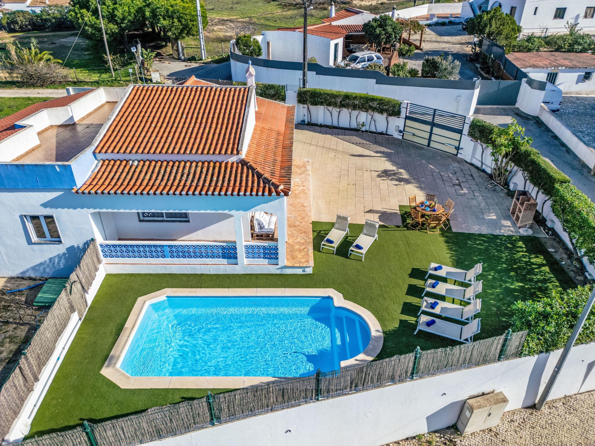Sehr gemütliches, freistehendes Haus "Antonica", renoviert im Jahre 2023. Ausserhalb des Ortes, 6.5 km vom Zentrum von Albufeira, im Villenviertel, 1.6 km vom Meer. Zur Alleinbenutzung: Schwimmbad (4 x 8 m, 85 - 185 cm tief, saisonale Verfügbarkeit: 01.Jan. - 31.Dez.). Terrasse, Gartenmöbel, Grill. Im Hause: Wireless LAN, Waschmaschine. Parkplatz beim Haus. Lebensmittelgeschäft 500 m, Supermarkt 900 m, Einkaufszentrum 8.4 km, Restaurant 110 m, Bar 350 m, Bäckerei 900 m, Café 350 m, Sandstrand "Praia do Evaristo" 1.6 km. Jacht-Hafen 3 km, Golfplatz (18 Loch) 4.1 km, Surfschule 2.1 km, Tennis 10.1 km, Minigolf 7.1 km, Reitstall 4.1 km, Kinderspielplatz 5 km. Nahe gelegene Sehenswürdigkeiten: Zoomarine 7.5 km, Aqualand 10.1 km, Krazy World 14.1 km, Museu Municipal de Arqueologia 5.1 km, Torre do Relógio de Albufeira 5.1 km, Miradouro do Pau da Bandeira 3.1 km. Wandergebiete: Lagoa dos Salgados 12.3 km. Bitte beachten: Fahrzeug empfohlen. Be- und Entladen am Ferienhaus möglich.