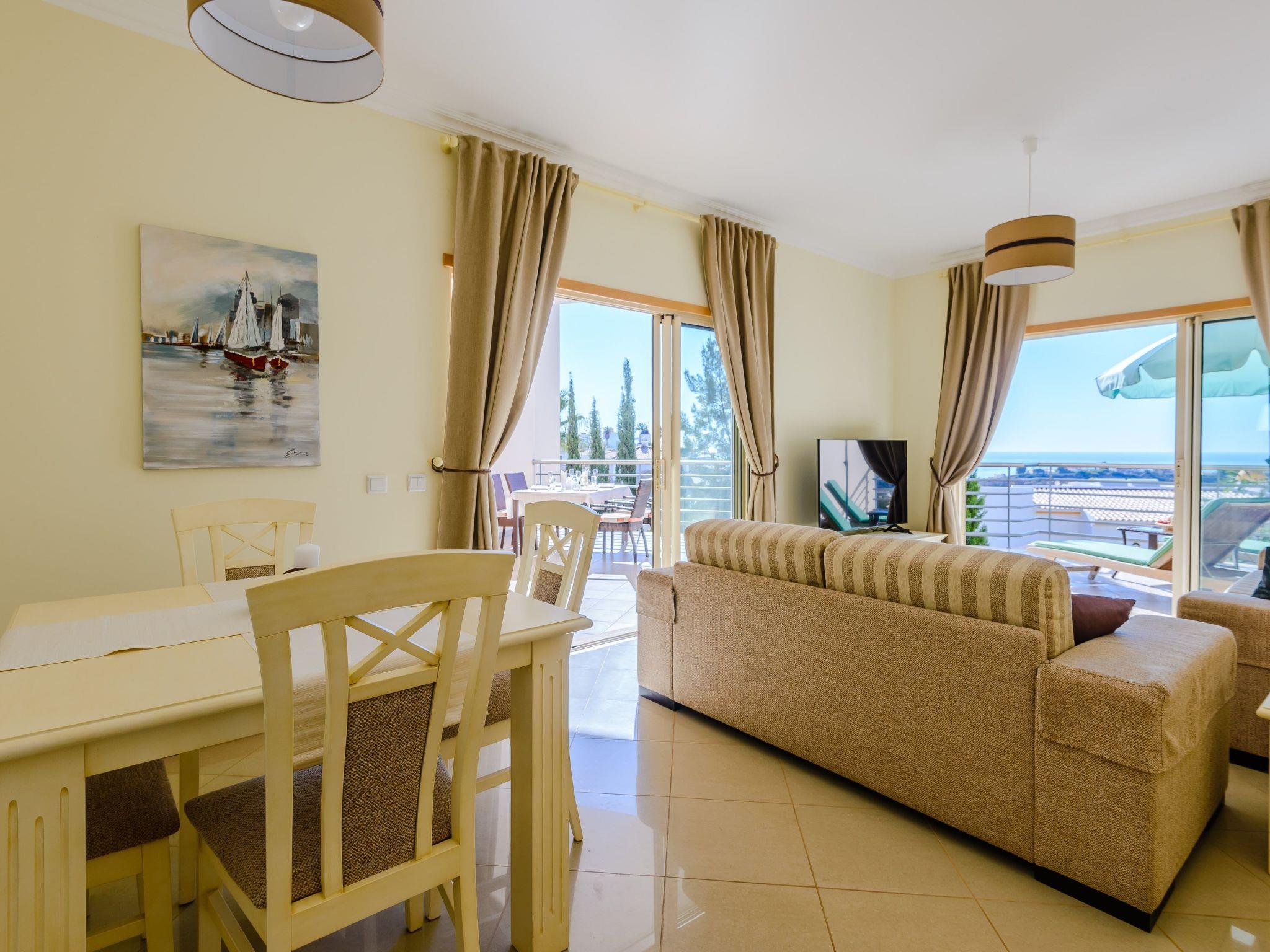 BnB Homes Apartment mit 2 großen sonnigen Terrassen mit Meerblick, 2 Swimmingpools und Tennisplatz befindet sich im Herzen des beliebtesten Ferienortes an der Südküste Portugals - Albufeira, nur wenige Gehminuten von der Altstadt, den Stränden und dem Yachthafen entfernt.