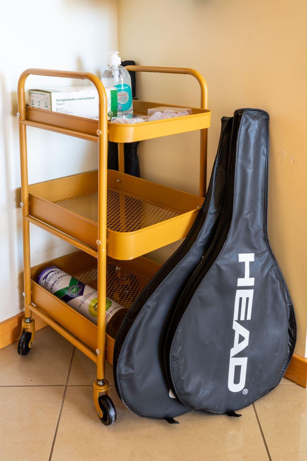 Wir stellen unseren Gästen Tennisschläger und einen Satz Tennisbälle (ebenfalls kostenlos) zur Verfügung, mit denen sie auf dem Tennisplatz des Komplexes spielen können.