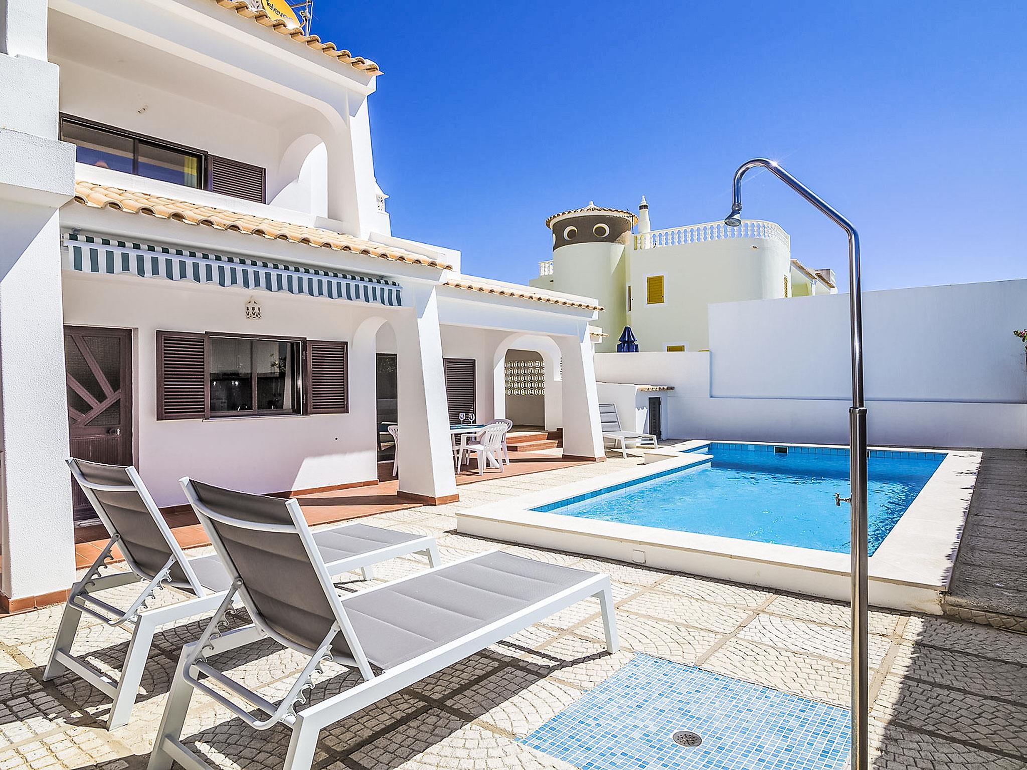 Zona Galé 8 km von Albufeira: Gemütliche, freistehende, komfortable Villa "Casa Galé 600m from the beach", auf 2 Stockwerken, Baujahr 1992, renoviert im Jahre 2016. Im Ort da Galé, im Bezirk Albufeira, sonnige Lage im Villenviertel, 550 m vom Meer, in einer Sackgasse. Zur Alleinbenutzung: Grundstück 300 m2 (eingezäunt), Garten 20 m2, Schwimmbad eckig (8 x 4 m, 80 - 190 cm tief, saisonale Verfügbarkeit: 01.Jan. - 31.Dez.). Aussendusche, Gartenmöbel, Grill. Im Hause: Klimaanlage, Waschmaschine. Parkplatz beim Haus. Lebensmittelgeschäft, Supermarkt 400 m, Restaurant 300 m, Bar, Bäckerei, Biergarten, Bushaltestelle 400 m, Bahnstation "Estação de Tunes" 13.4 km, Sandstrand "São Lourenço" 550 m. Sporthafen 4.5 km, Jacht-Hafen 8.5 km, Golfplatz (18 Loch) 2.6 km, Surfschule 650 m, Minigolf 6.1 km, Reitstall 8.7 km. Nahe gelegene Sehenswürdigkeiten: Zoomarine 9.1 km, Algarve Shopping 7.8 km, Slide e Splash Parque Aquático 24.8 km, Marina de Albufeira 4.5 km, Castelo de Silves 22.2 km, Praia da Galé 1 km. Bitte beachten: geeignet für Familien. Jugendgruppen nur auf Anfrage. Be- und Entladen am Ferienhaus möglich.