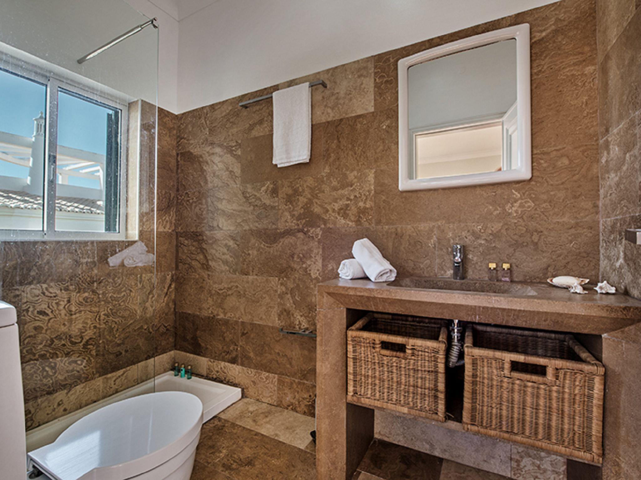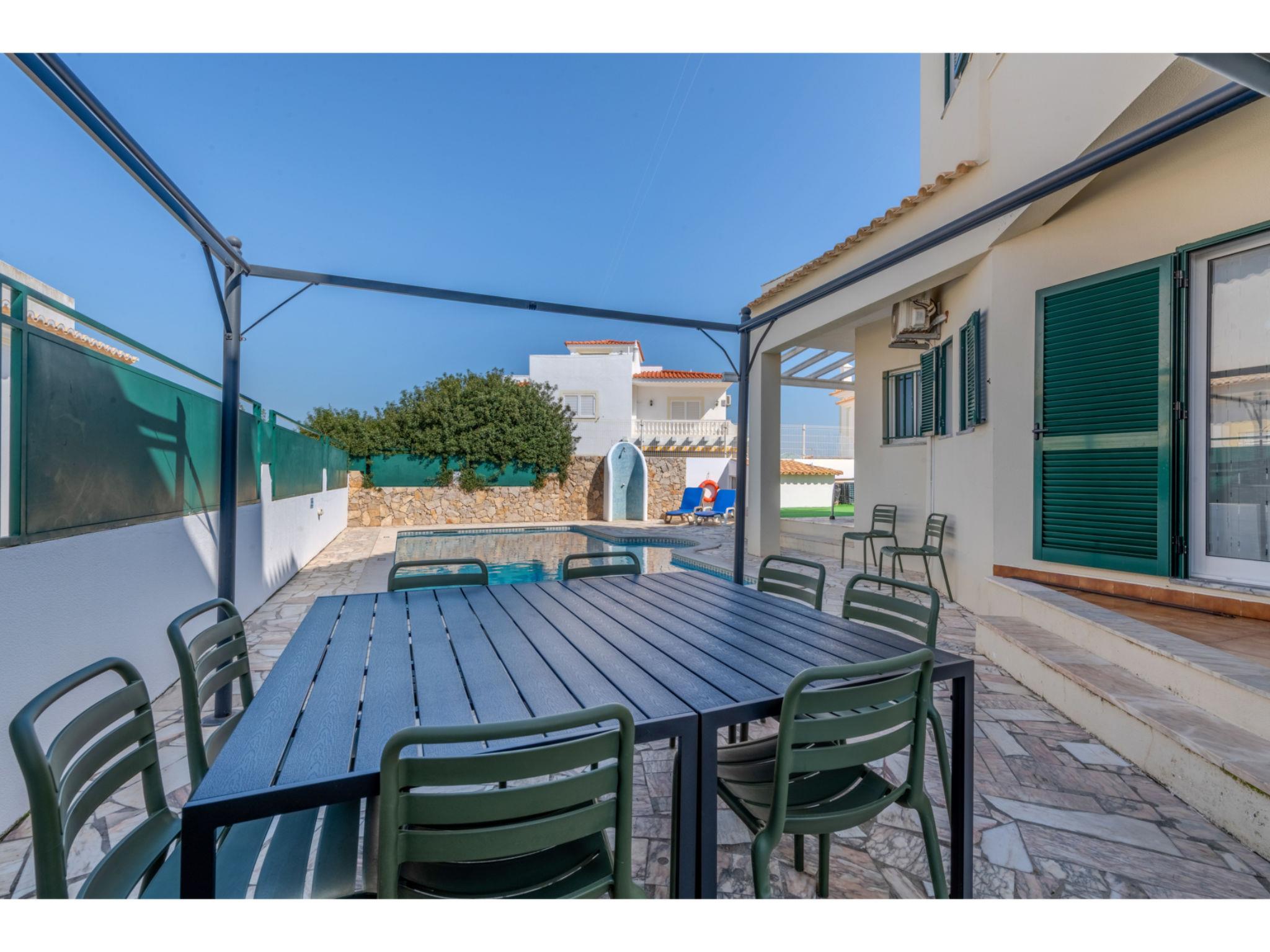 "Monteiro V4 - VIP Properties", 5-Zimmer-Villa 156 m2 auf 2 Stockwerken. Zweckmässig und gemütlich eingerichtet: Wohnzimmer mit 1 Diwanbett (140 cm, Länge 190 cm), TV, Internationale TV-Sender, Klimaanlage und Warmluftheizung. Ausgang zur Terrasse, zum Schwimmbad. 1 Zimmer mit 2 Betten (90 cm, Länge 200 cm), Dusche/WC und Klimaanlage. 1 Zimmer mit 2 Betten (90 cm, Länge 200 cm), Dusche/WC, Klimaanlage und Warmluftheizung. Offene Küche (Backofen, Geschirrspüler, 4 Glaskeramikplatten, Toaster, Wasserkocher, Mikrowelle, Tiefkühler, elektrische Kaffeemaschine) mit Esstisch. Dusche/WC. Obergeschoss: 1 Zimmer mit 2 Betten (90 cm, Länge 200 cm), Bad/Dusche/WC, Klimaanlage und Warmluftheizung. 1 Zimmer mit 1 franz. Bett (160 cm, Länge 200 cm), Dusche/WC, Klimaanlage und Warmluftheizung. Balkonmöbel, Gartengrill, Liegestühle (8), Sitzplatz. Sicht auf das Meer und das Schwimmbad. Zur Verfügung: Waschmaschine, Bügeleisen, Kinderhochstuhl, Babybett bis 2 Jahre (extra), Haartrockner. Internet (WLAN, gratis). Parkplatz beim Haus. Geeignet für Familien. 4275/AL