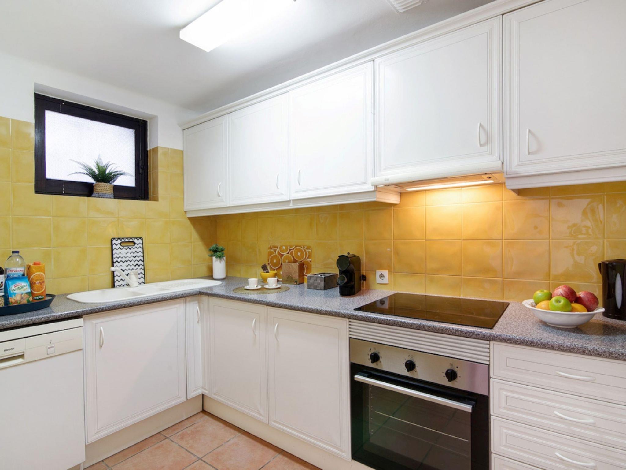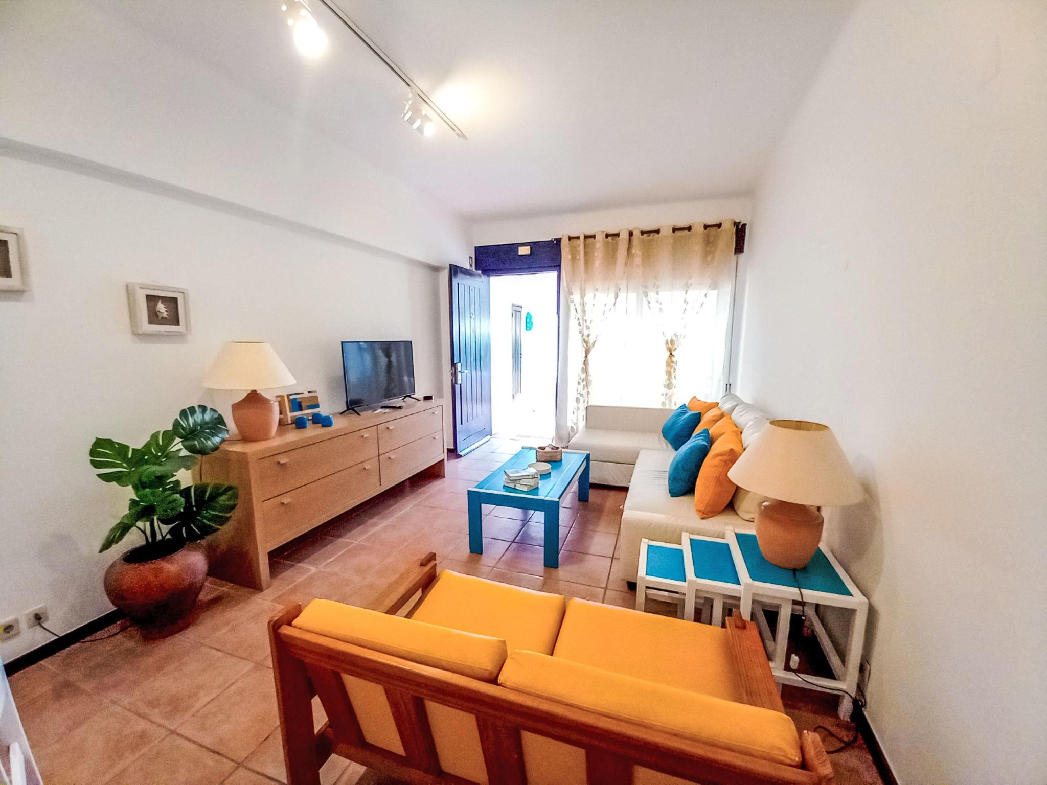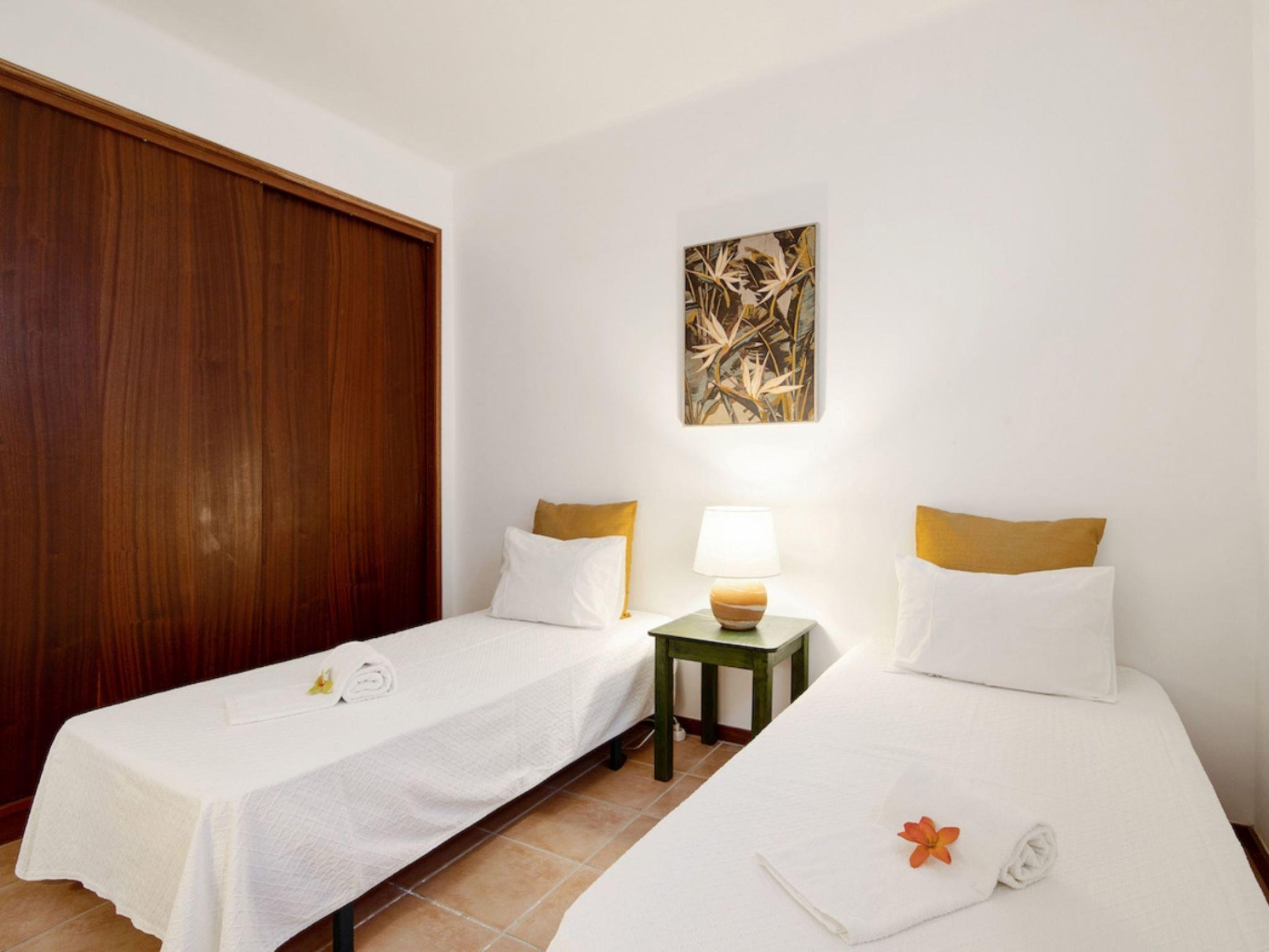"Joyce - Sunny Way", 3-Zimmer-Wohnung 62 m2, im Erdgeschoss. Sehr zweckmässig eingerichtet: Wohnzimmer mit 1 Diwanbett (140 cm, Länge 190 cm), Esstisch, Kabel-TV und Flachbildschirm. Ausgang zum Balkon. 1 Zimmer mit 1 franz. Bett (140 cm, Länge 200 cm). 1 Zimmer mit 2 Betten (90 cm, Länge 200 cm), Klimaanlage und Warmluftheizung. Küche (4 Kochplatten, Backofen, Geschirrspüler, Toaster, Wasserkocher, Mikrowelle, Tiefkühler, elektrische Kaffeemaschine). Dusche/WC. Balkonmöbel. Zur Verfügung: Bügeleisen, Haartrockner. Internet (WLAN, gratis). Geeignet für Familien. 137099/AL