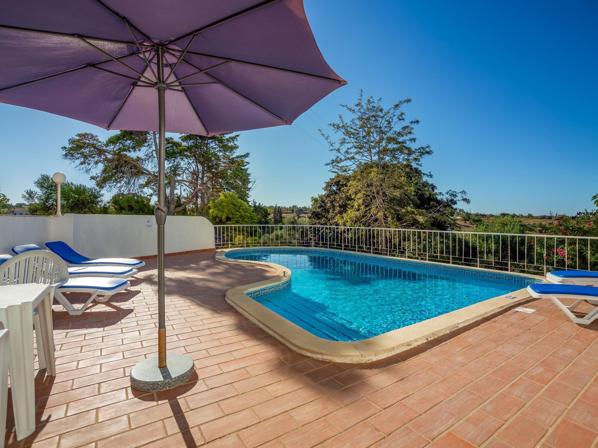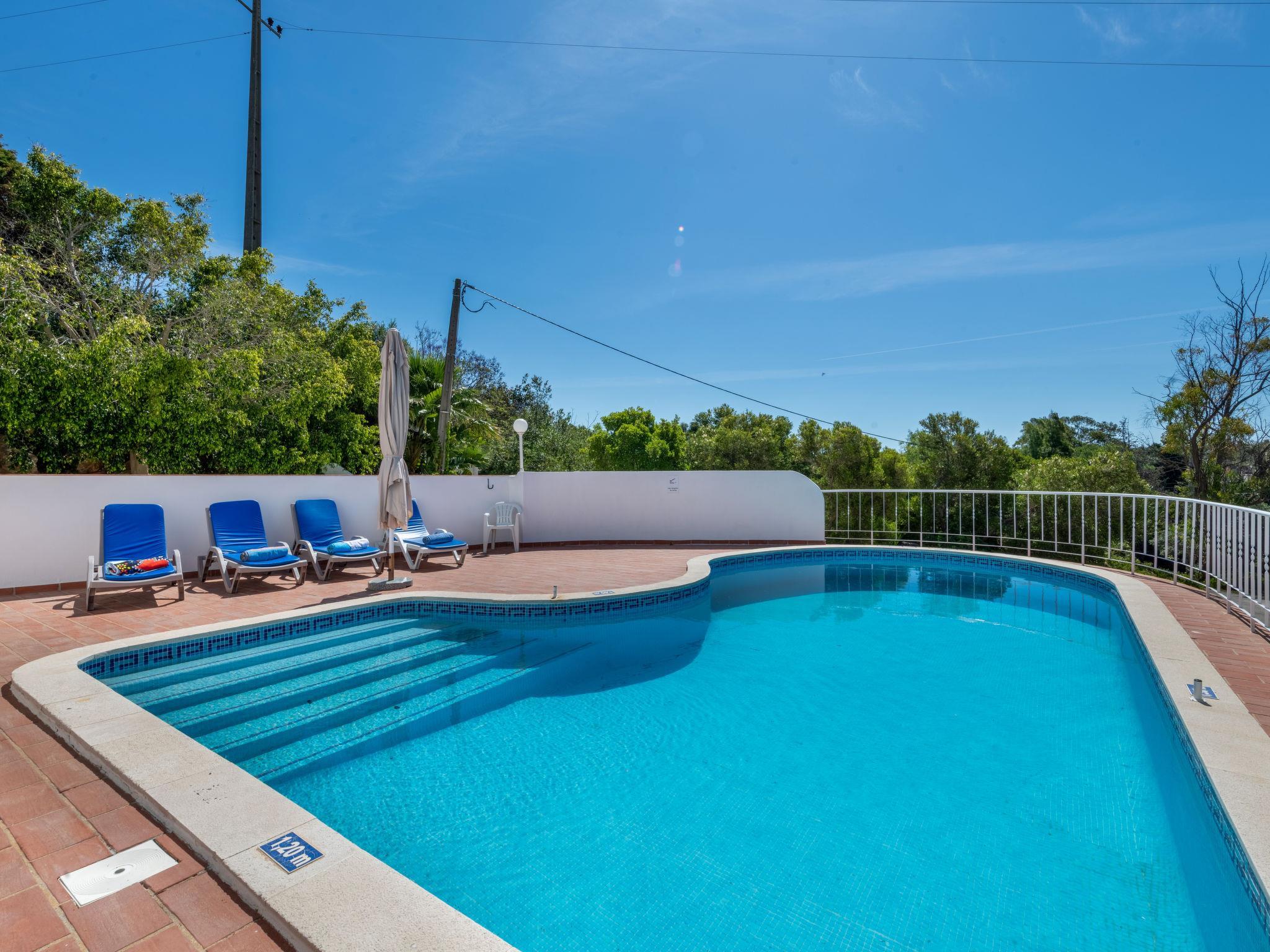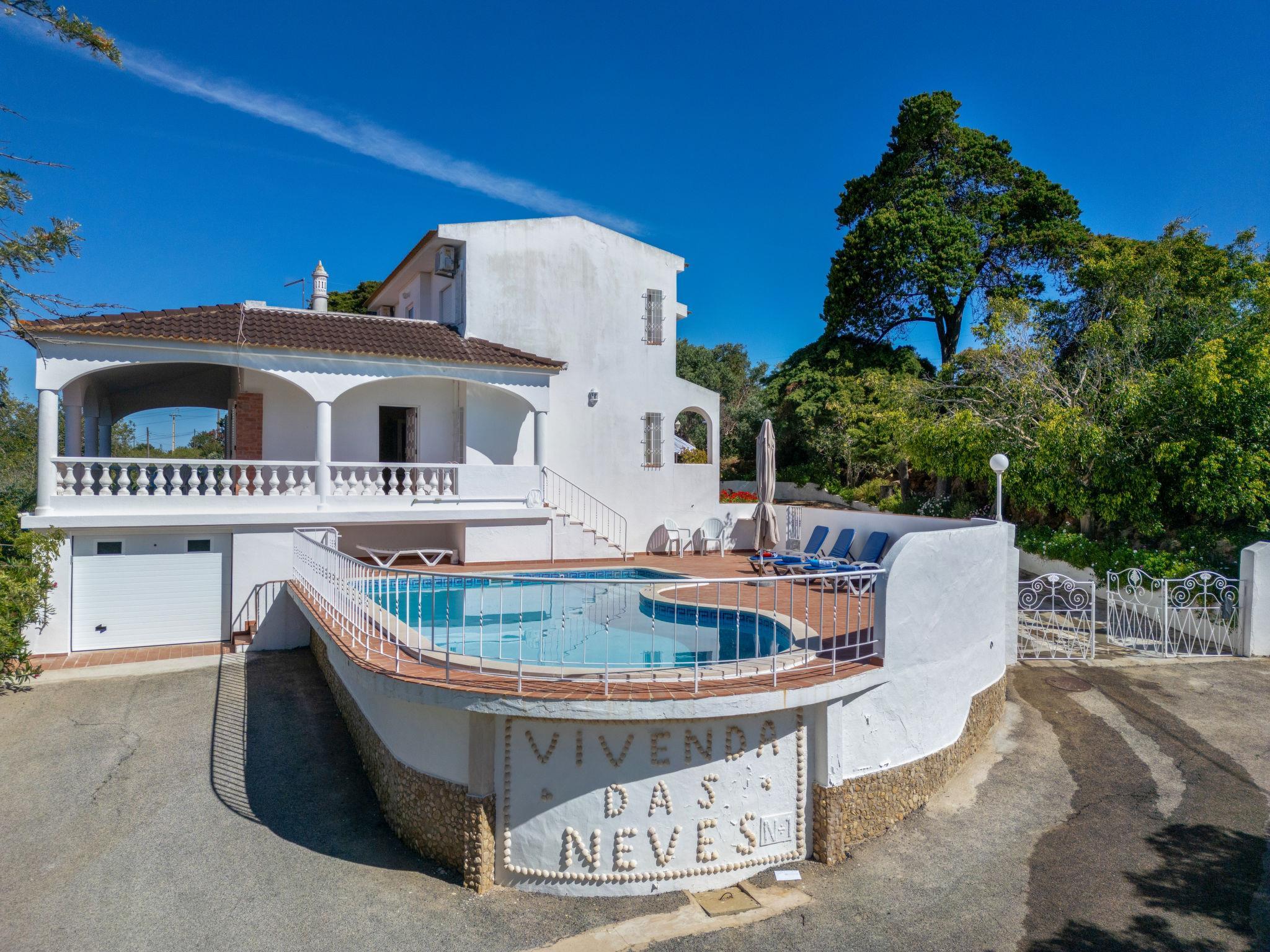 Schönes, rustikales Haus "Neves I", umgeben von Bäumen und Wiesen. 4 km vom Zentrum von Albufeira, 3 km vom Meer. Zur Mitbenutzung: Tennis. Zur Alleinbenutzung: Grundstück 500 m2 (eingezäunt) mit Bäumen, Wiese, Schwimmbad beheizt (37 m2, 70 - 200 cm tief, saisonale Verfügbarkeit: 01.Jan. - 31.Dez.) mit Innentreppe. Ungleichmässige Schwimmbadform, Tischtennis. Im Hause: Sonnenterrasse, Dachterrasse, Alarmanlage. Parkplatz auf dem Grundstück. Einkaufsgeschäft 2 km, Restaurant 1.5 km, Bushaltestelle 1.5 km, Sandstrand 4 km, Freibad 10 km. Jacht-Hafen 4.5 km.