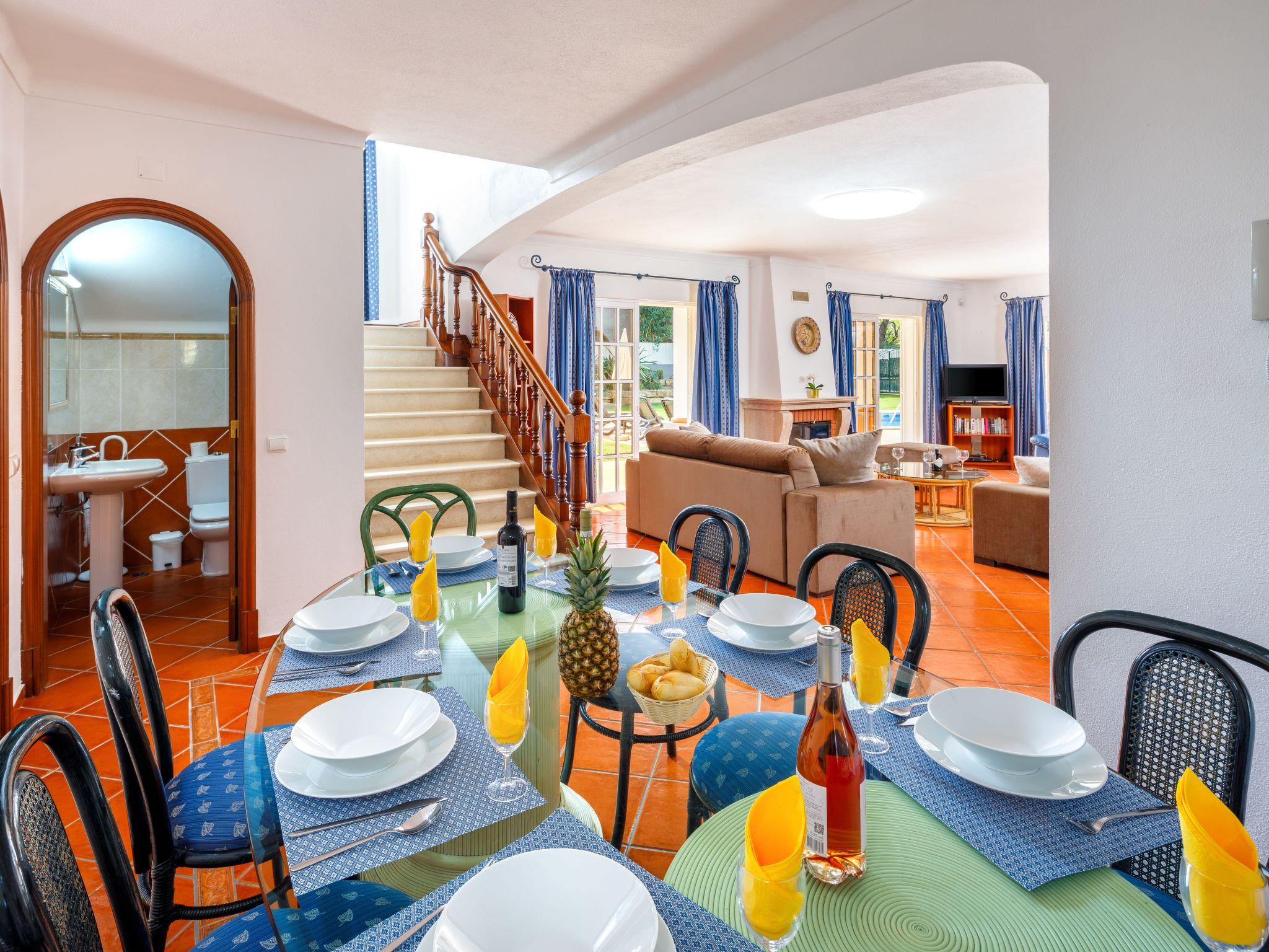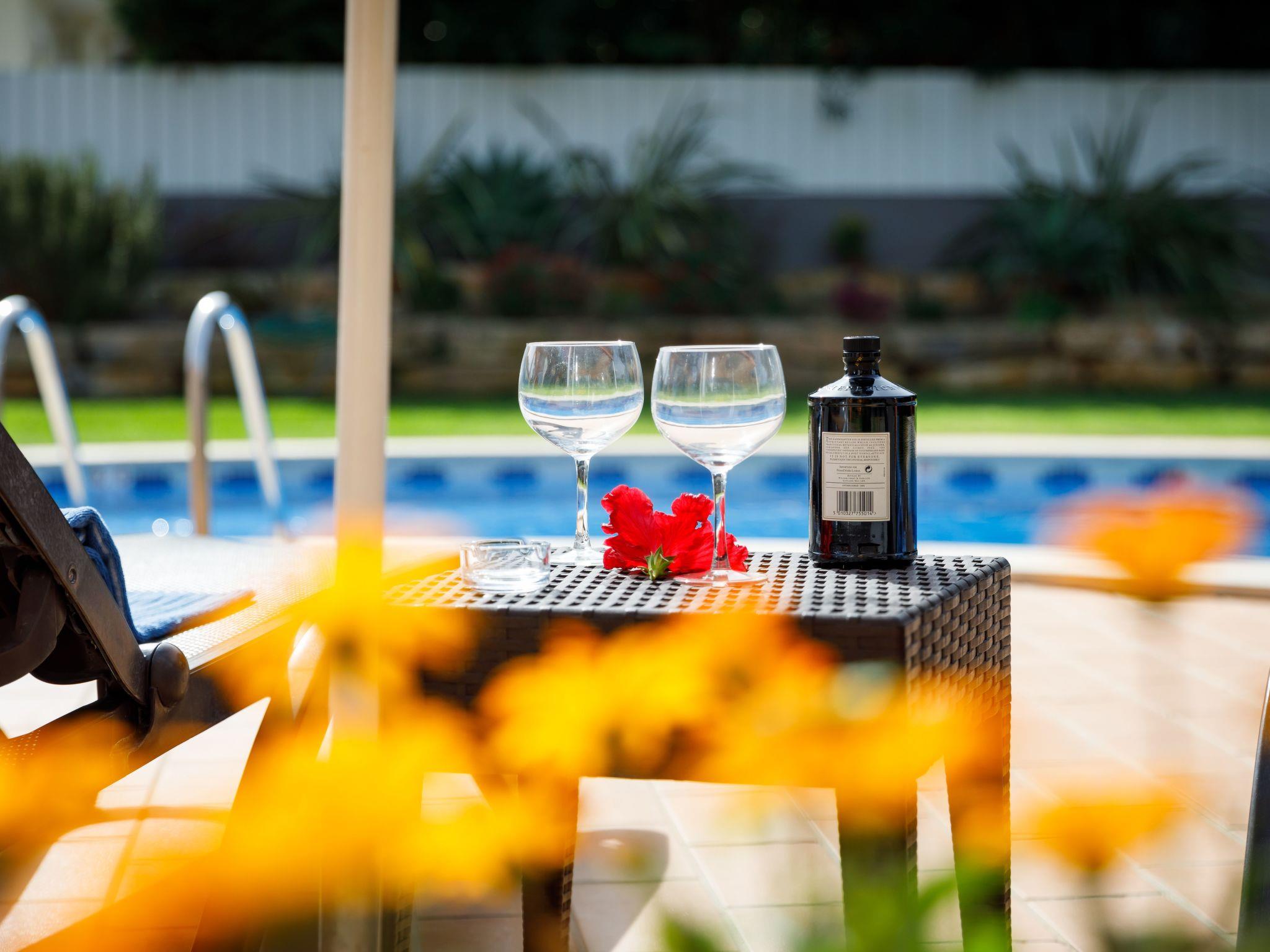 Erster Stock: 1 Schlafzimmer 2 mit zwei Einzelbetten, Klimaanlage, Kleiderschrank und eigenem Bad. 1 Doppelschlafzimmer mit Einbauschränken, großem Bad mit Dusche und Badewanne und Klimaanlage. 1 Doppelschlafzimmer mit Einbauschränken, Klimaanlage und großem Bad en-suite. Alle Zimmer haben Zugang zum Garten und zum Schwimmbad. Ausgestattete Küche. Wohn-/Esszimmer mit einem Tisch für bis zu 12 Personen, reich dekoriert mit einem Kamin und drei großen Glastüren mit Zugang zur Terrasse, zum Garten und zum Pool.