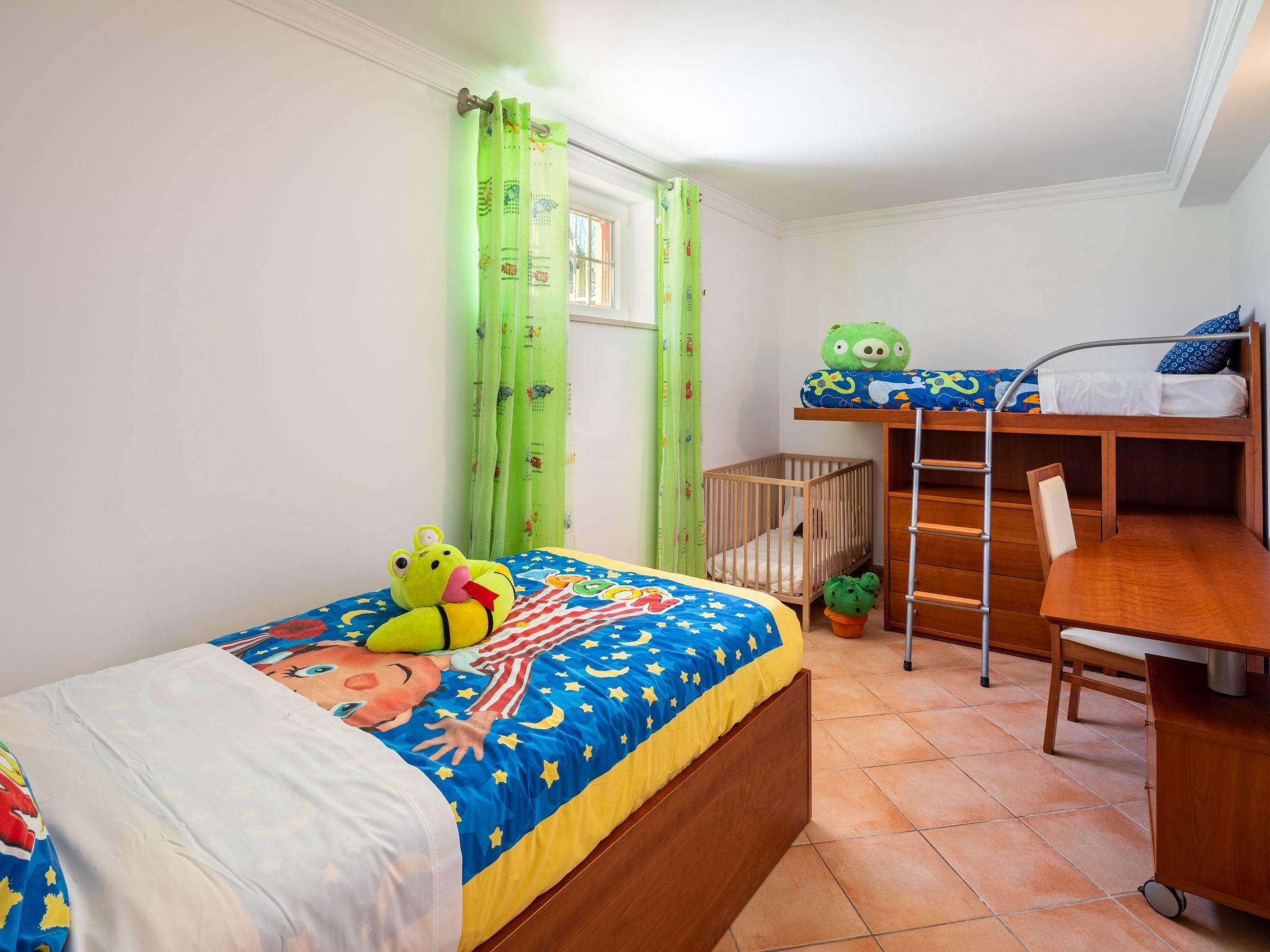 Im Erdgeschoss befinden sich 4 Schlafzimmer: ein Schlafzimmer mit Doppelbett und ein weiteres (kleines) mit Etagenbetten speziell für Kinder, ein drittes Schlafzimmer mit zwei Einzelbetten und ein viertes Schlafzimmer mit Doppelbett, alle 3 Schlafzimmer mit Klimaanlage.