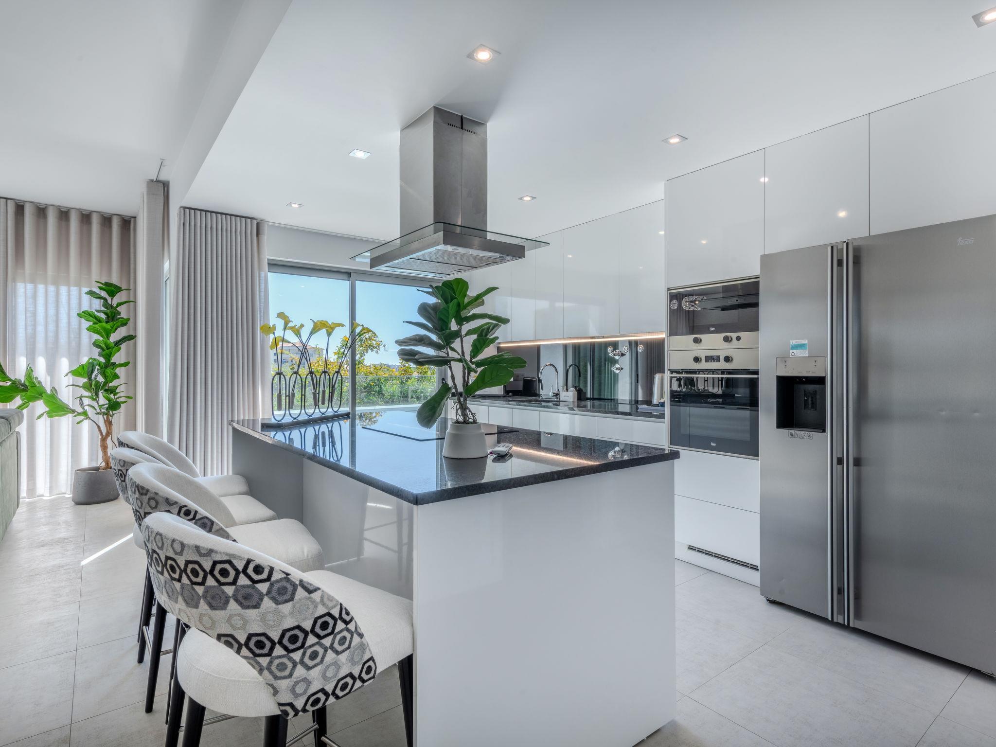 "Vitória", 4-Zimmer-Haus 245 m2. Geräumig und hell, sehr komfortabel und modern eingerichtet: Wohn-/Esszimmer mit Kabel-TV, Internationale TV-Sender, Flachbildschirm, Klimaanlage und Warmluftheizung. Ausgang zur Terrasse, zum Schwimmbad. 1 Zimmer mit 1 franz. Bett (160 cm, Länge 200 cm), Klimaanlage und Warmluftheizung. 1 Zimmer mit 1 franz. Bett (160 cm, Länge 200 cm), Bad/WC, Klimaanlage und Warmluftheizung. Ausgang zur Terrasse, zum Schwimmbad. 1 Zimmer mit 2 Betten (90 cm, Länge 200 cm), Klimaanlage und Warmluftheizung. Ausgang zur Terrasse, zum Schwimmbad. Offene Küche (Backofen, Geschirrspüler, 4 Glaskeramikplatten, Toaster, Wasserkocher, Mikrowelle, Tiefkühler). Dusche/WC. Terrassenmöbel, Balkonmöbel, Gartengrill, Liegestühle (4). Panoramasicht auf das Meer und die Ortschaft. Zur Verfügung: Waschmaschine, Kinderhochstuhl, Babybett bis 2 Jahre (extra). Internet (WLAN, gratis). Parkplatz beim Haus. Geeignet für Familien. 166039/AL