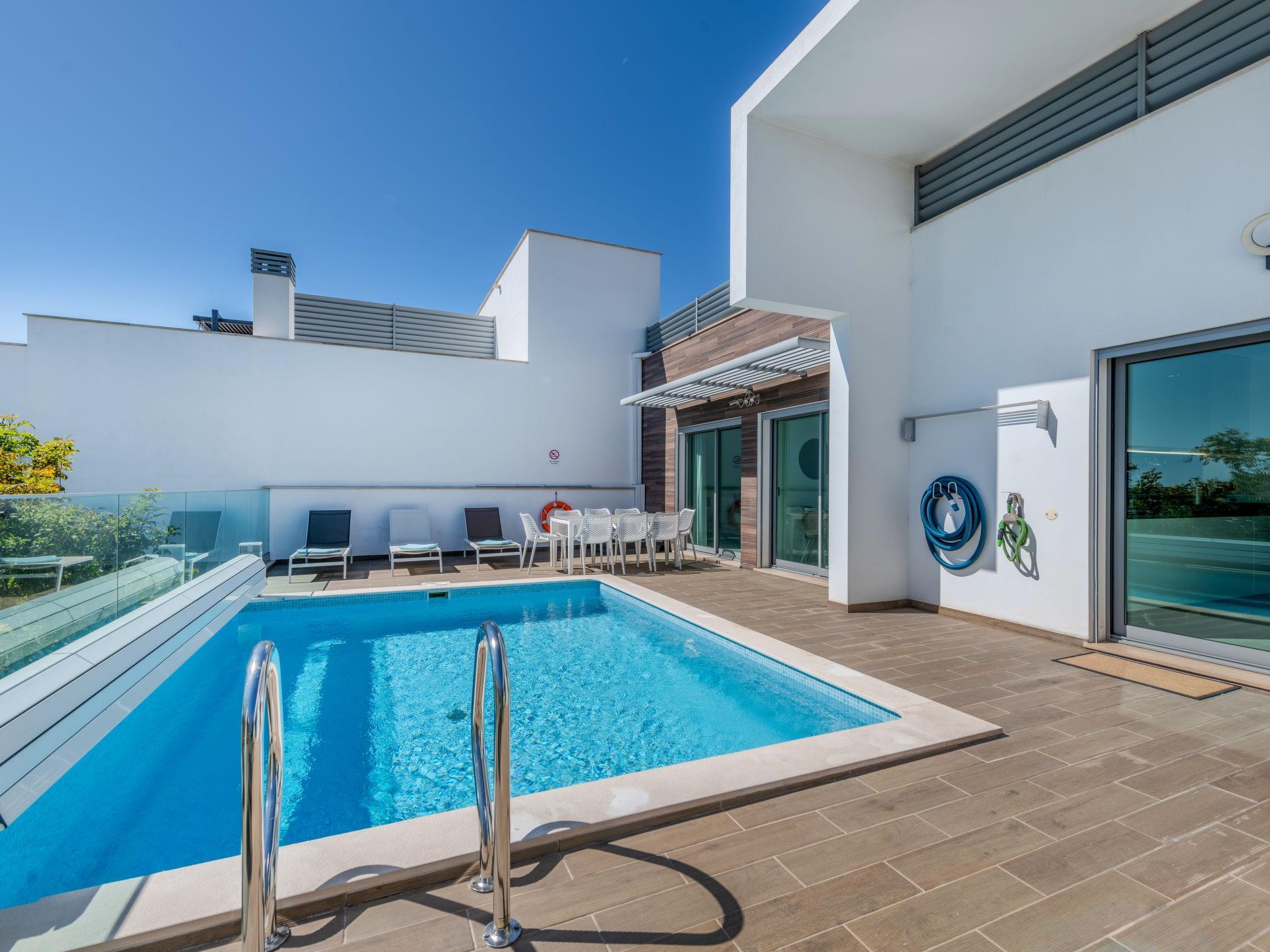 Sehr moderne, komfortable Villa. Im Ort, 2.1 km vom Zentrum von Albufeira, 1.7 km vom Meer. Zur Alleinbenutzung: Schwimmbad eckig (4 x 6 m, 110 - 110 cm tief, saisonale Verfügbarkeit: 01.Jan. - 31.Dez.). Im Hause: Wireless LAN, Klimaanlage, Waschmaschine, Trockenraum. Parkplatz beim Haus. Lebensmittelgeschäft, Supermarkt 250 m, Einkaufszentrum 1.1 km, Restaurant 350 m, Bar 800 m, Bäckerei, Café 250 m, Fahrradverleih 2.9 km, Bushaltestelle 220 m, Bahnstation 5.5 km, Sandstrand "Praia da Oura" 1.7 km, Tauchzentrum 5.5 km. Jacht-Hafen 5.9 km, Golfplatz (18 Loch) 10.5 km, Surfschule 10.1 km, Minigolf 1 km, Reitstall 10.3 km, Kinderspielplatz 1.2 km. Nahe gelegene Sehenswürdigkeiten: Adventure Mini Golf Park 1 km, Zebra Safari Tours 2.9 km, Algarve Shopping 9.4 km, Zoomarine 10.6 km, Krazy World 15.3 km, Faro Airport 35.3 km. Bekannte Seen in der Umgebung sind gut erreichbar: Lagoa dos Salgados 13.4 km. Bitte beachten: Be- und Entladen am Ferienhaus möglich. Gruppen von Jugendlichen unter 25 Jahren zahlen eine zusätzliche Kaution pro Person vor Ort.