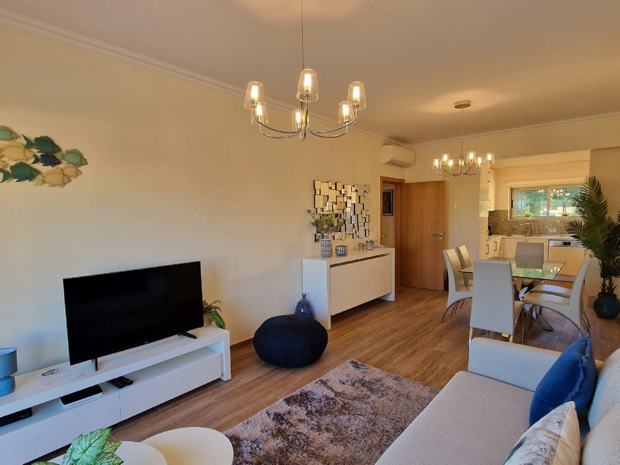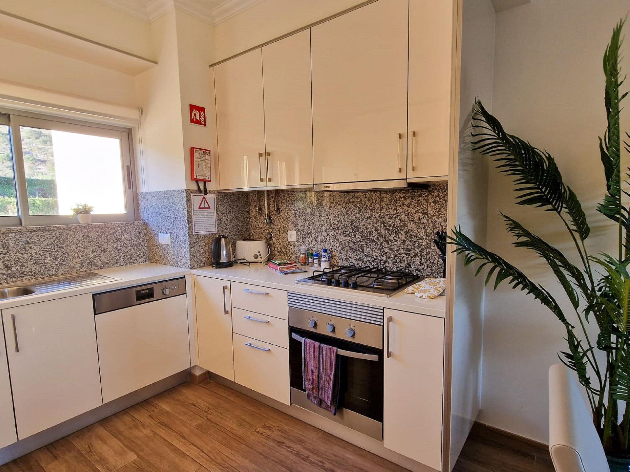 "Jardins Marina T2", 3-Zimmer-Wohnung 85 m2 im 2. Stock. Sehr zweckmässig und gemütlich eingerichtet: Wohnzimmer mit 1 Diwanbett (140 cm, Länge 190 cm), Esstisch und Kabel-TV (Flachbildschirm), Klimaanlage und Warmluftheizung. Ausgang zum Balkon. 1 Zimmer mit 2 Betten (90 cm, Länge 200 cm), Klimaanlage und Warmluftheizung. 1 Zimmer mit 1 franz. Bett (160 cm, Länge 200 cm), Sitzbad/WC, Klimaanlage und Warmluftheizung. Offene Küche (Backofen, Geschirrspüler, 4 Glaskeramikplatten, Toaster, Wasserkocher, Mikrowelle, Tiefkühler, elektrische Kaffeemaschine). Dusche/WC. Terrassenmöbel. Schöne Sicht auf das Schwimmbad und den Garten. Zur Verfügung: Waschmaschine, Kinderhochstuhl, Babybett bis 2 Jahre (extra), Haartrockner. Internet (Wireless LAN, gratis). Parkplatz beim Haus. Geeignet für Familien. 47451/AL