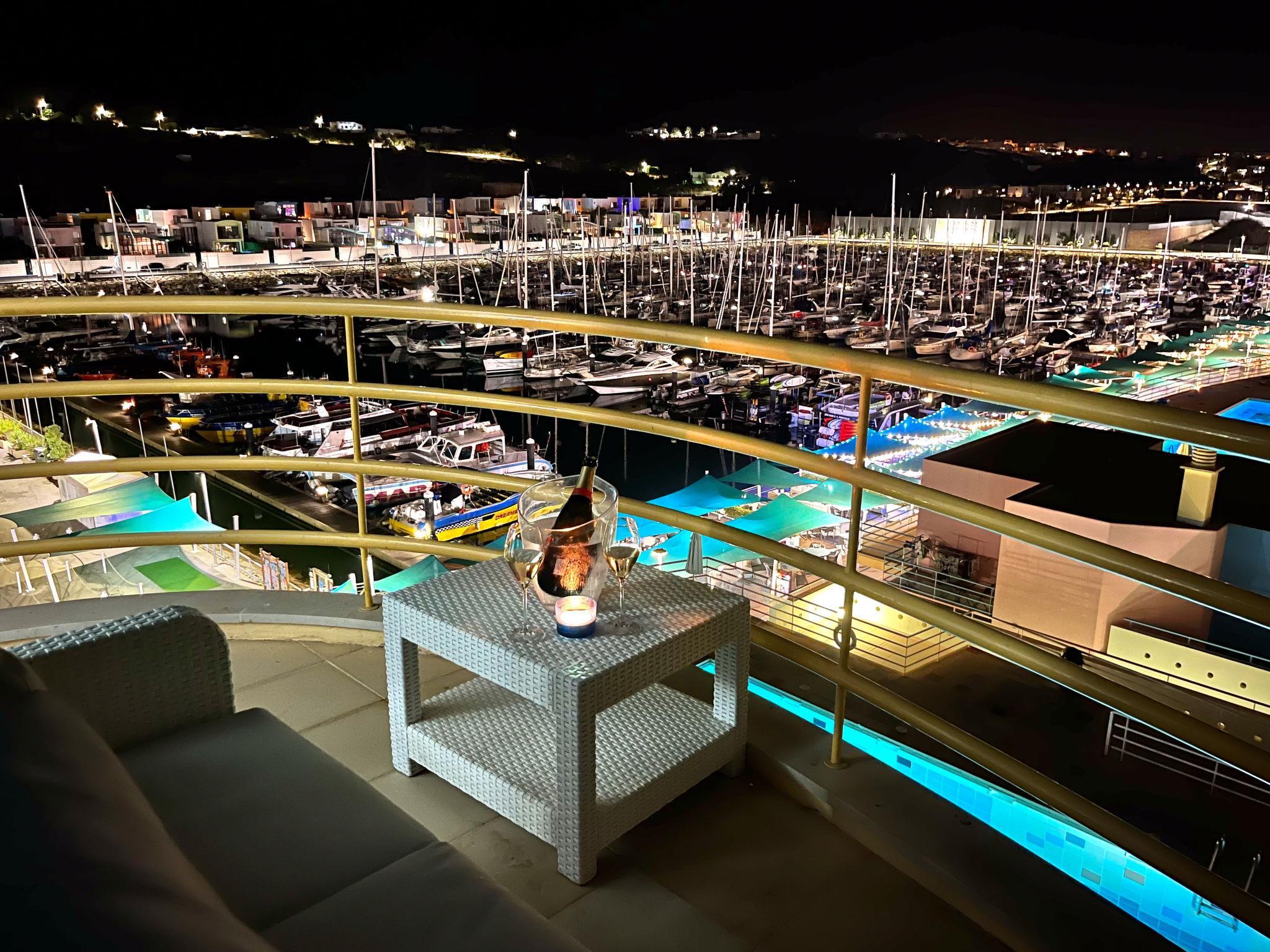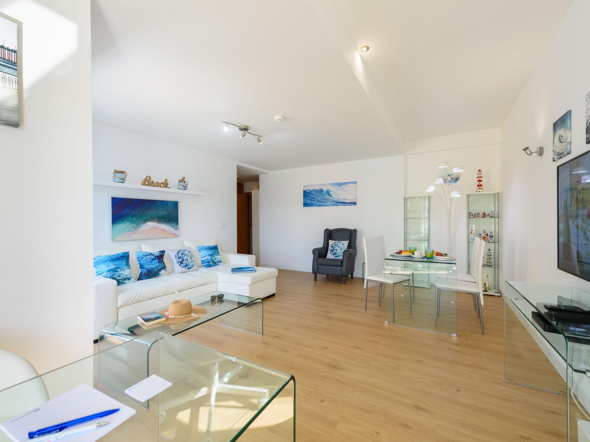 "The LightHouse", 3-Zimmer-Wohnung 104 m2 im 3. Stock. Geräumig und hell, komfortabel und geschmackvoll eingerichtet: Wohn-/Esszimmer mit 1 Diwanbett (140 cm, Länge 200 cm), Esstisch, TV, Internationale TV-Sender, Flachbildschirm und Klimaanlage. Ausgang zum Balkon. 1 Zimmer mit 1 Doppelbett (160 cm, Länge 200 cm), Bad/Dusche/WC und Klimaanlage. Ausgang zum Balkon. 1 Zimmer mit 2 Betten (90 cm, Länge 200 cm), Klimaanlage. Ausgang zum Balkon. Küche (Backofen, Geschirrspüler, 4 Flammen, Toaster, Wasserkocher, Mikrowelle, Tiefkühler, elektrische Kaffeemaschine). Bad/Dusche/WC. Balkon 8 m2, Westlage Balkon 2 m2, Ostlage Terrasse 20 m2, Westlage und Südlage. Terrassenmöbel, Balkonmöbel, Sitzplatz. Sehr schöne Sicht auf das Schwimmbad und den Hafen. Zur Verfügung: Waschmaschine, Bügeleisen, Kinderhochstuhl, Babybett bis 2 Jahre, Haartrockner. Internet (WLAN, gratis). Bitte beachten: geeignet für Familien. Nichtraucher-Unterkunft. Feuerlöscher. 71269/AL