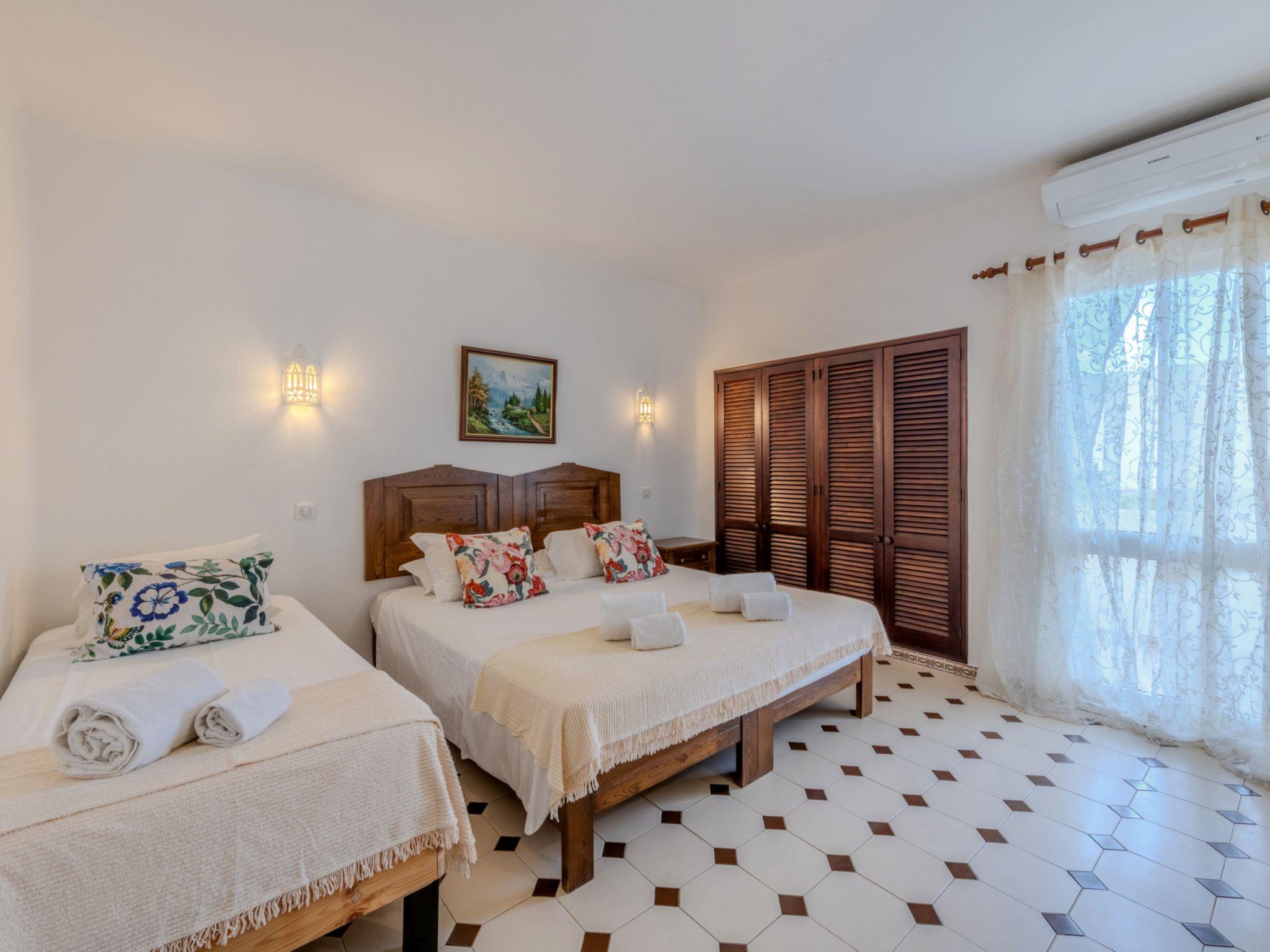 "T3 capricórnio", 4-Zimmer-Wohnung 98 m2. Zweckmässig eingerichtet: offenes Wohnzimmer mit Esstisch und Kabel-TV. Ausgang zur Terrasse. 1 Zimmer mit 2 Betten (90 cm, Länge 190 cm), Klimaanlage und Warmluftheizung. 1 Zimmer mit 1 franz. Bett (160 cm, Länge 190 cm), Klimaanlage und Warmluftheizung. 1 Zimmer mit 2 Betten (90 cm, Länge 190 cm), Klimaanlage und Warmluftheizung. Offene Küche (4 Kochplatten, Backofen, Geschirrspüler, Toaster, Wasserkocher, Mikrowelle, elektrische Kaffeemaschine, Kapseln für die Kaffeemaschine (Dolce Gusto not incl)). 2 Duschen/WC. Gartengrill, Liegestühle (4), Sitzplatz. Sicht auf das Schwimmbad. Zur Verfügung: Waschmaschine, Bügeleisen, Kinderhochstuhl, Babybett bis 2 Jahre, Haartrockner. Internet (Wireless LAN, gratis). Bitte beachten: geeignet für Familien. Nichtraucher-Unterkunft. Feuerlöscher. 124171/AL