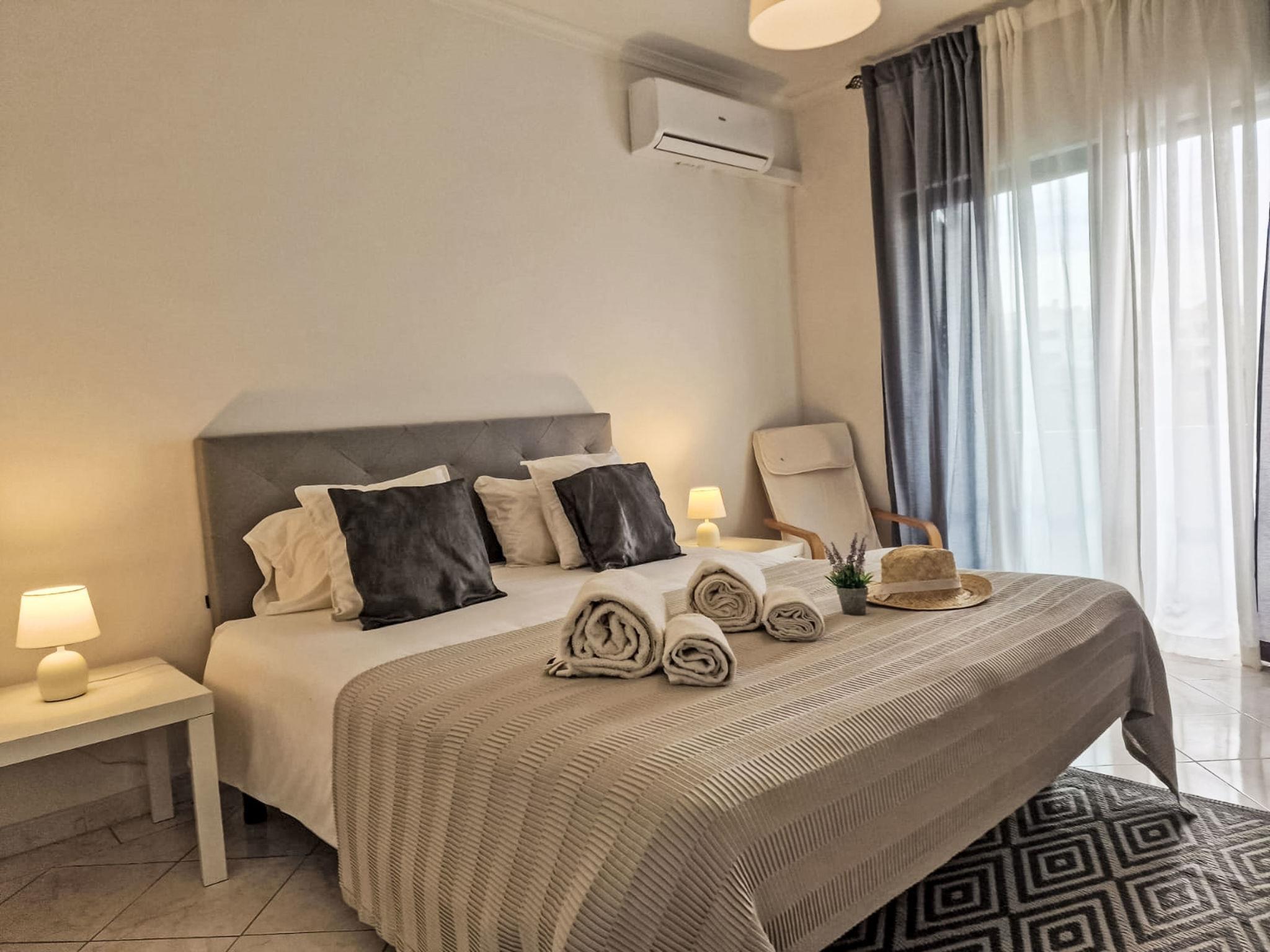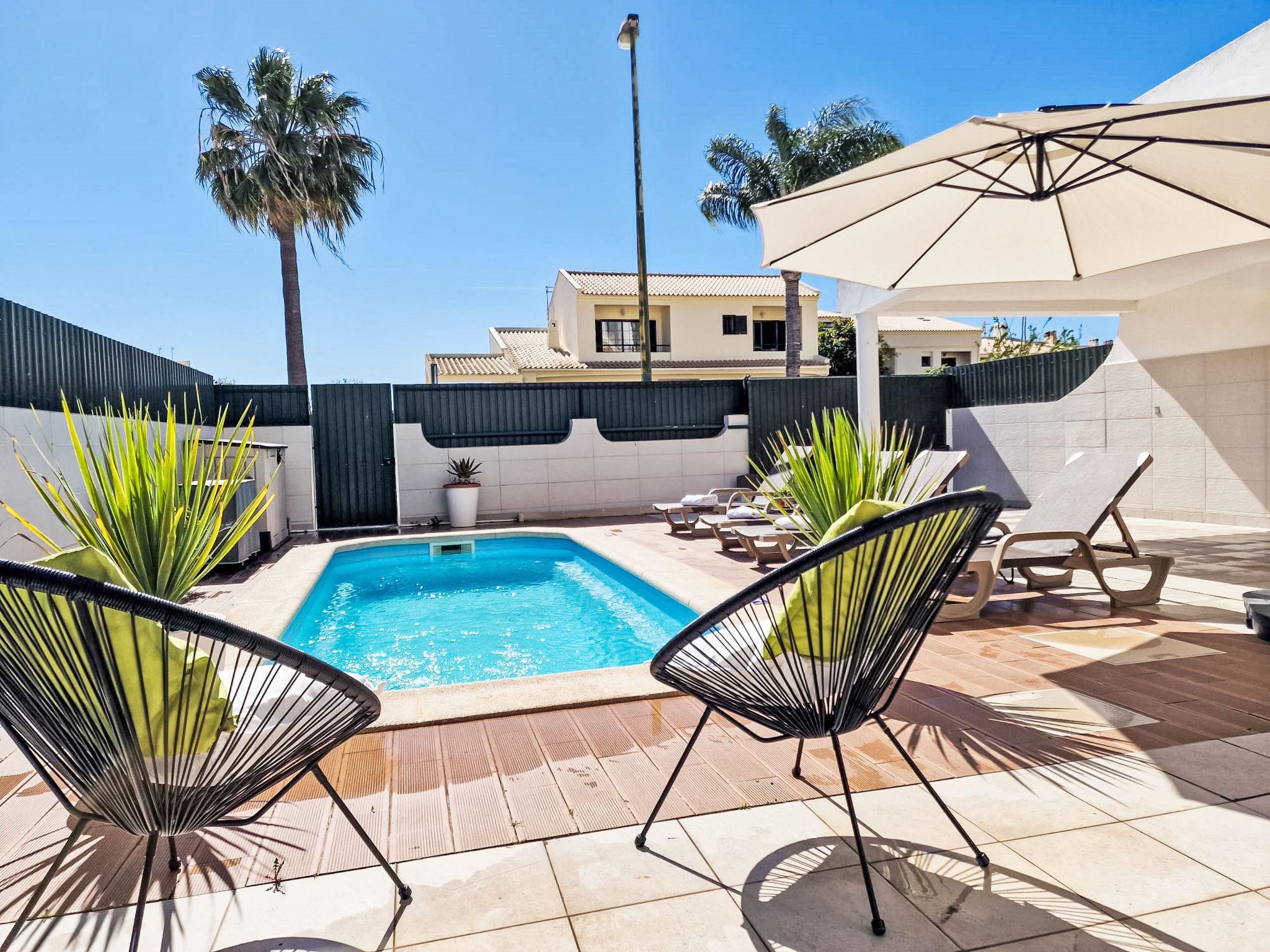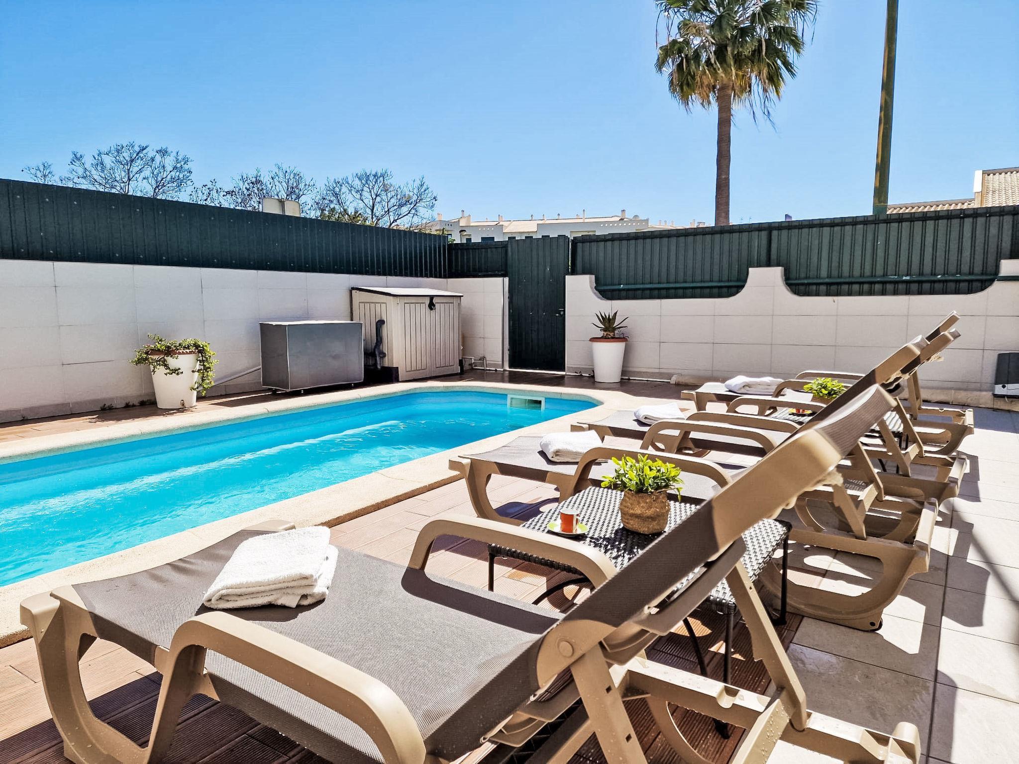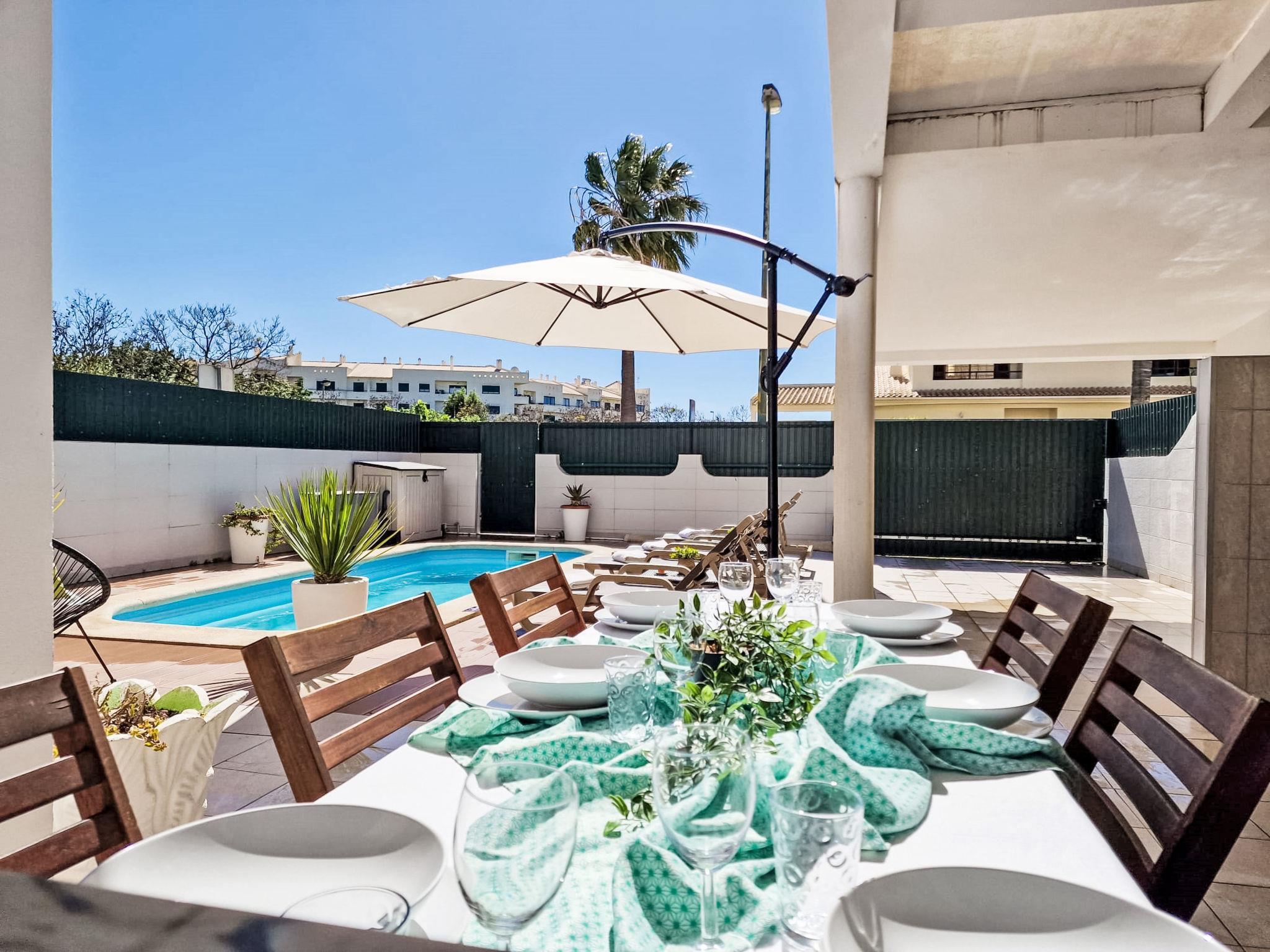 Sehr gemütliches, komfortables Reihenhaus "V2 Caliços". 2 km vom Meer. Zur Alleinbenutzung: Schwimmbad eckig, beheizt (4 x 8 m, 90 - 130 cm tief, saisonale Verfügbarkeit: 01.Jan. - 31.Dez.). Im Hause: Wireless LAN, Waschmaschine, Trockenraum. Parkplatz beim Haus. Lebensmittelgeschäft, Supermarkt 900 m, Einkaufszentrum 1.7 km, Restaurant, Bäckerei, Café 230 m, Fahrradverleih 1.5 km, Bushaltestelle 270 m, Bahnstation 6.3 km, Sandstrand "Praia do Inatel" 2 km, Tauchzentrum 3.6 km. Jacht-Hafen 3.9 km, Golfplatz (18 Loch) 9.2 km, Surfschule 1.8 km, Minigolf 2.5 km, Reitstall 9.4 km, Kinderspielplatz 1.3 km. Nahe gelegene Sehenswürdigkeiten: Adventure Mini Golfe Park 2.5 km, Zebra Safari Tours 3.6 km, Algarve Shopping, Guia 7.5 km, Zoomarine 8.7 km, Krazy World 11.7 km, Aeroporto Faro 38 km. Bekannte Seen in der Umgebung sind gut erreichbar: Lagoa dos Salgados 9.5 km. Bitte beachten: Be- und Entladen am Ferienhaus möglich. Gruppen von Jugendlichen unter 25 Jahren zahlen eine zusätzliche Kaution pro Person vor Ort.
