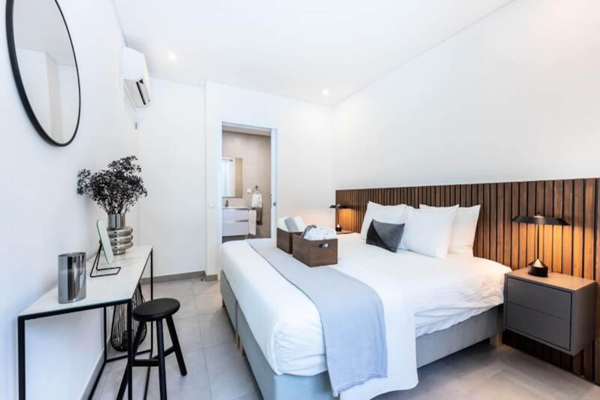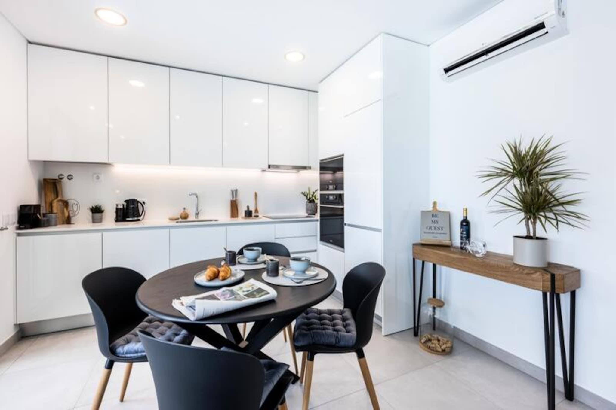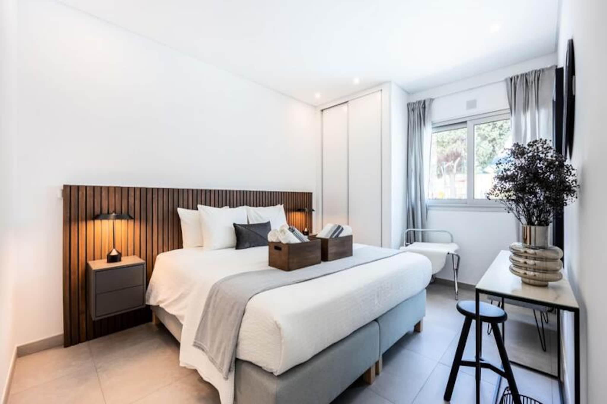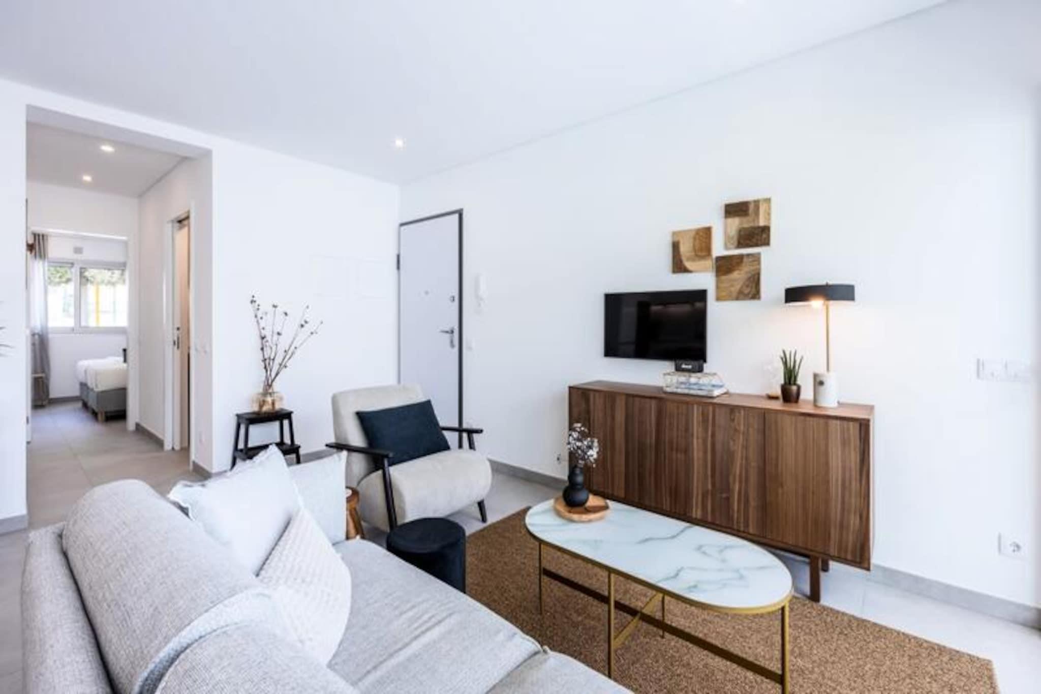 Stellen Sie sich vor, Sie wachen mit dem sanften Rauschen der Wellen auf und treten auf Ihre private Terrasse, um die warme Sonne der Algarve auf Ihrer Haut zu spüren. Dieses atemberaubende Apartment, nur 100 Meter vom berühmten Fischerstrand von Albufeira entfernt, bietet die perfekte Kombination aus Luxus, Komfort und Bequemlichkeit. Eingebettet in eine ruhige, geschlossene Wohnanlage, bietet es einen exklusiven Rückzugsort und ist gleichzeitig nur wenige Schritte vom lebhaften Stadtzentrum mit seinen charmanten Gassen, stimmungsvollen Bars und authentischen portugiesischen Restaurants entfernt. Ob Sie Entspannung oder Abenteuer suchen – hier finden Sie alles. Das Apartment selbst ist eine Oase moderner Eleganz. Die voll ausgestattete Küche lädt zum Zubereiten köstlicher Mahlzeiten ein, während der geräumige Wohnbereich mit WLAN und Fernseher einen gemütlichen Ort zum Entspannen nach einem erlebnisreichen Tag bietet. Die private Terrasse ist ideal, um den Morgenkaffee oder ein Glas Wein zu genießen, während die Sonne über dem Atlantik untergeht. Bettwäsche und Handtücher werden gestellt – an jedes Detail wurde gedacht, um Ihren Aufenthalt so angenehm wie möglich zu gestalten. Familien und verantwortungsbewusste Erwachsene werden die ruhige Atmosphäre dieser Ferienwohnung zu schätzen wissen, die außerdem über einen Gemeinschaftspool und private Parkplätze verfügt. Treten Sie vor die Tür und Sie befinden sich im Herzen von Albufeira, einem Reiseziel, das für jeden Geschmack etwas bietet. Schlendern Sie durch die historische Altstadt, deren Kopfsteinpflastergassen zu kulturellen Schätzen wie der Kirche Santa Anna und der Statue des Heiligen Michael führen. Entspannen Sie sich an den goldenen Sandstränden in der Nähe oder erkunden Sie den lebhaften Strip und erleben Sie das Nachtleben von Albufeira. Wer es lieber etwas ruhiger mag, findet Cafés, Supermärkte und die Anbindung an den öffentlichen Nahverkehr in unmittelbarer Nähe. Ob Sie die Sonne genießen, in die reiche Kultur der Region eintauchen oder die atemberaubende Küste der Algarve erkunden möchten – diese Wohnung ist der ideale Ausgangspunkt. Mit ihrer unschlagbaren Lage und den durchdachten Annehmlichkeiten verspricht sie ein unvergessliches Urlaubserlebnis.