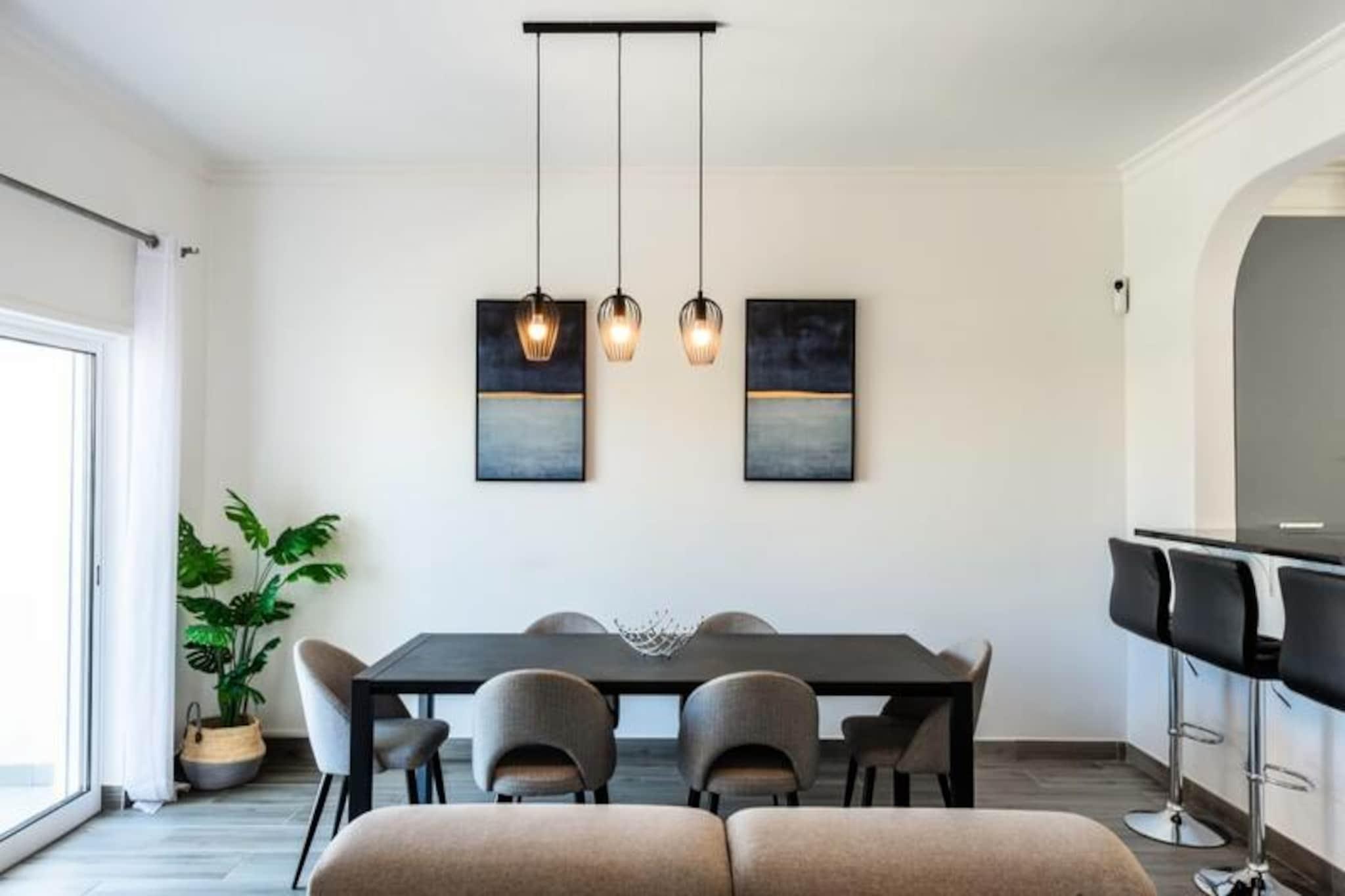 Inmitten der idyllischen Landschaft von Vale Parra, nur eine kurze Fahrt von Albufeira entfernt, bietet die Casa Merrigan eine harmonische Verbindung von Ruhe und modernem Komfort. Dieses charmante Reihenhaus mit drei Schlafzimmern ist der perfekte Rückzugsort für Familien oder kleine Gruppen, die eine friedliche Auszeit an der Algarve suchen. Umgeben von üppiger Natur und in der Nähe einiger der schönsten Strände der Region, ist es eine Oase, in der Entspannung und Abenteuer Hand in Hand gehen. Treten Sie ein und entdecken Sie ein durchdacht gestaltetes Haus für bis zu sechs Gäste. Das geräumige Wohnzimmer öffnet sich zu einem privaten Garten mit einem voll ausgestatteten Grillplatz – ideal für Mahlzeiten im Freien unter der portugiesischen Sonne. Die drei hellen Schlafzimmer, zwei moderne Badezimmer und eine voll ausgestattete Küche sorgen für einen komfortablen Aufenthalt. Klimaanlage in den Schlafzimmern und im Wohnzimmer bietet eine angenehme Kühle nach einem erlebnisreichen Tag. Gästen steht außerdem ein großer Gemeinschaftspool zur Verfügung, der sich perfekt zum Entspannen oder für Familienspaß eignet. Der Charme von Vale Parra liegt in der gelungenen Kombination aus Ruhe und guter Erreichbarkeit. Von der Casa Merrigan aus erreichen Sie Restaurants, Bars und alle wichtigen Einrichtungen in wenigen Minuten. Die goldenen Sandstrände von Galé und Salgados mit ihrem kristallklaren Wasser und atemberaubenden Sonnenuntergängen sind bequem zu erreichen. Naturliebhaber finden in der nahegelegenen Lagune von Salgados eine Fülle an Vögeln und malerische Wanderwege, während Golffreunde auf dem renommierten Golfplatz von Salgados abschlagen können. Ob Sie einen ruhigen Abend in Ihrem privaten Garten genießen oder die lebhafte Küste der Algarve erkunden möchten – die Casa Merrigan verspricht einen unvergesslichen Aufenthalt. Dank ihrer erstklassigen Lage, der modernen Ausstattung und des warmen Ambientes ist sie der ideale Ausgangspunkt, um in Portugals sonnenverwöhntem Süden unvergessliche Erinnerungen zu schaffen.