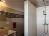 * 1 Badezimmer mit Dusche, Waschbecken und Toilette mit Hygienedusche