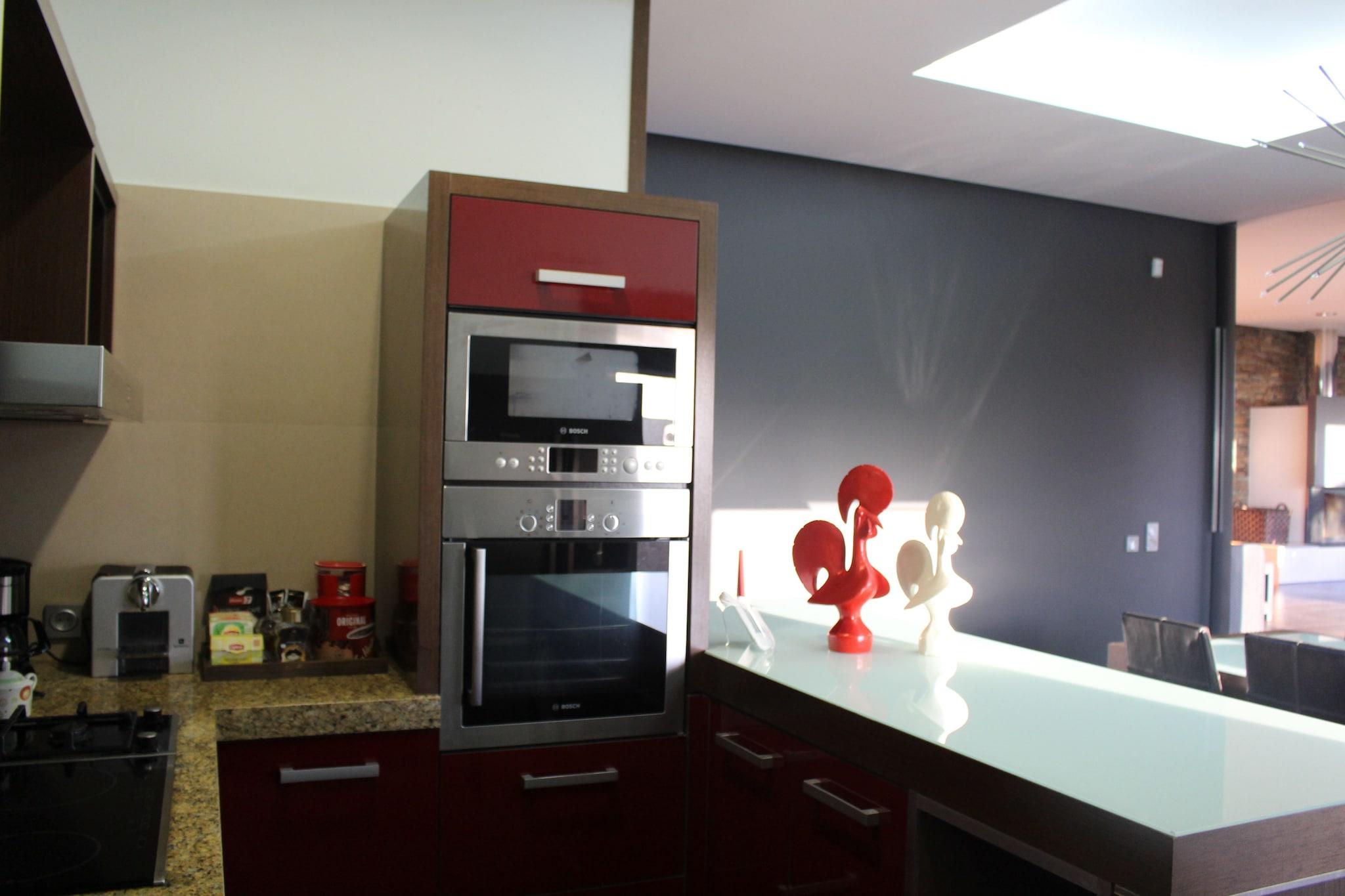 Parterre: (Wohnzimmer(60 m2)(TV(Kabel), Kaminofen, Sitzecke), Esszimmer(Esstisch), Wohnküche(Bar(Esstheke), Kochplatte(2 Kochplatten, 4 Kochplatten, Gas, Induktion), Wasserkocher, Kaffeemaschine(cups), Backofen, Mikrowelle, Spülmaschine, Kühlschrank(amerikaner)), Badezimmer(Dusche, Waschbecken, Toilette)) In der 1. Etage: (Schlafzimmer(Doppelbett(140 x 200 cm), Balkon), Schlafzimmer mit Badezimmer(Doppelbett king size(195 x 200 cm), Dusche, Waschbecken, Toilette, Bidet, Balkon), Badezimmer(Badewanne, Waschbecken, Toilette, Bidet)) Terrasse, Garten(alleinige Nutzung, umzäunt, angelegt, 1500 m2), Gartenmöbel, Grill, Parkplatz