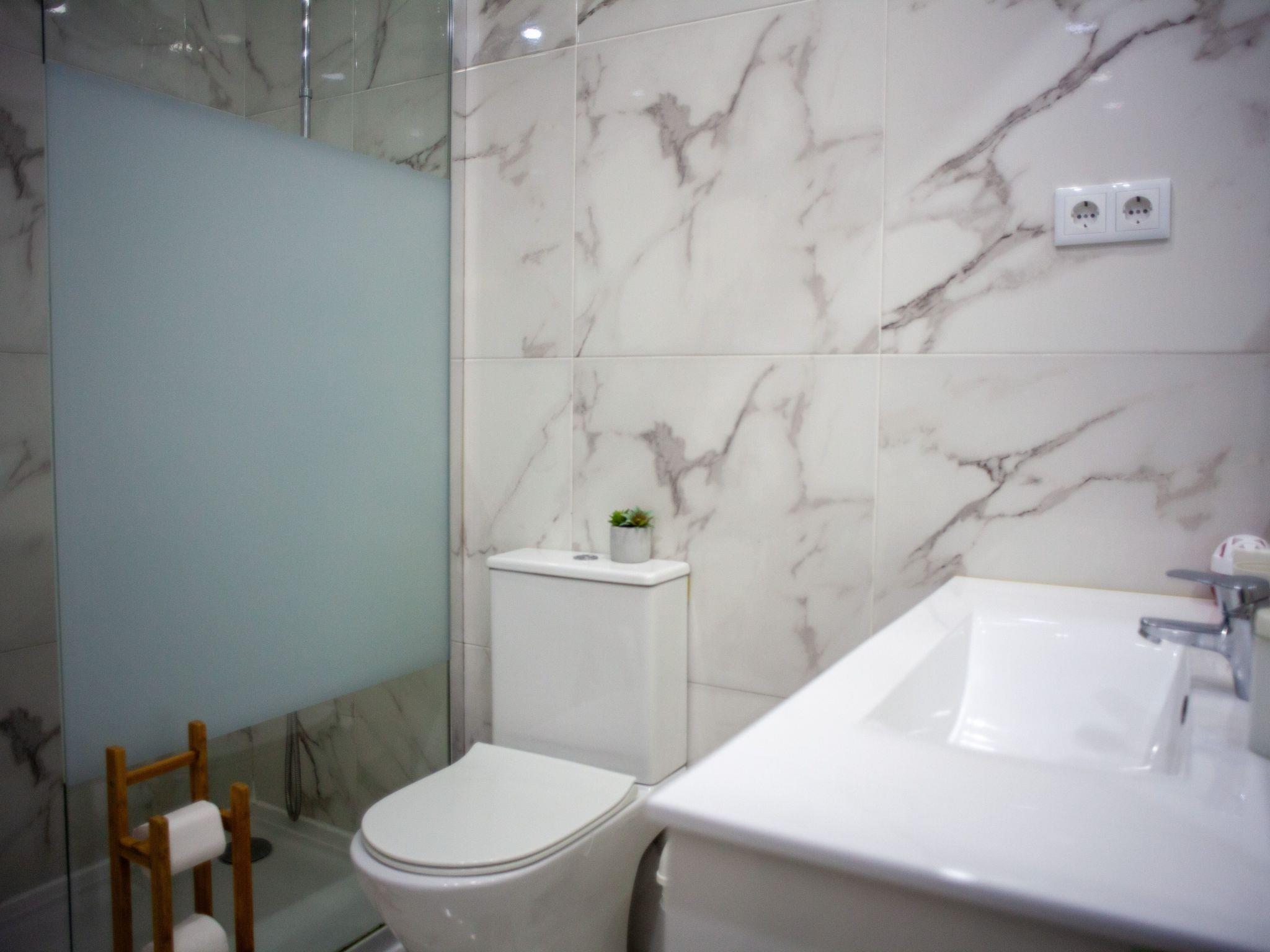 Im Inneren ist dieser Raum so ausgestattet, dass er alle Ihre Bedürfnisse erfüllt. Die Klimaanlage sorgt für Ihren Komfort in der gesamten Wohnung und schafft so eine kühle Oase an heißen Sommertagen. Für Ihre Entspannungsmomente steht Ihnen ein vernetzter Fernseher zur Verfügung, der ideal ist, um sich nach einem Tag voller Erkundungen zu unterhalten. Eine Waschmaschine zur privaten Nutzung, eine Kaffeemaschine für einen energiegeladenen Start in den Morgen, ein Geschirrspüler für eine einfache Reinigung nach den Mahlzeiten und ein Wasserkocher für Ihren Warmwasserbedarf erleichtern das häusliche Leben.