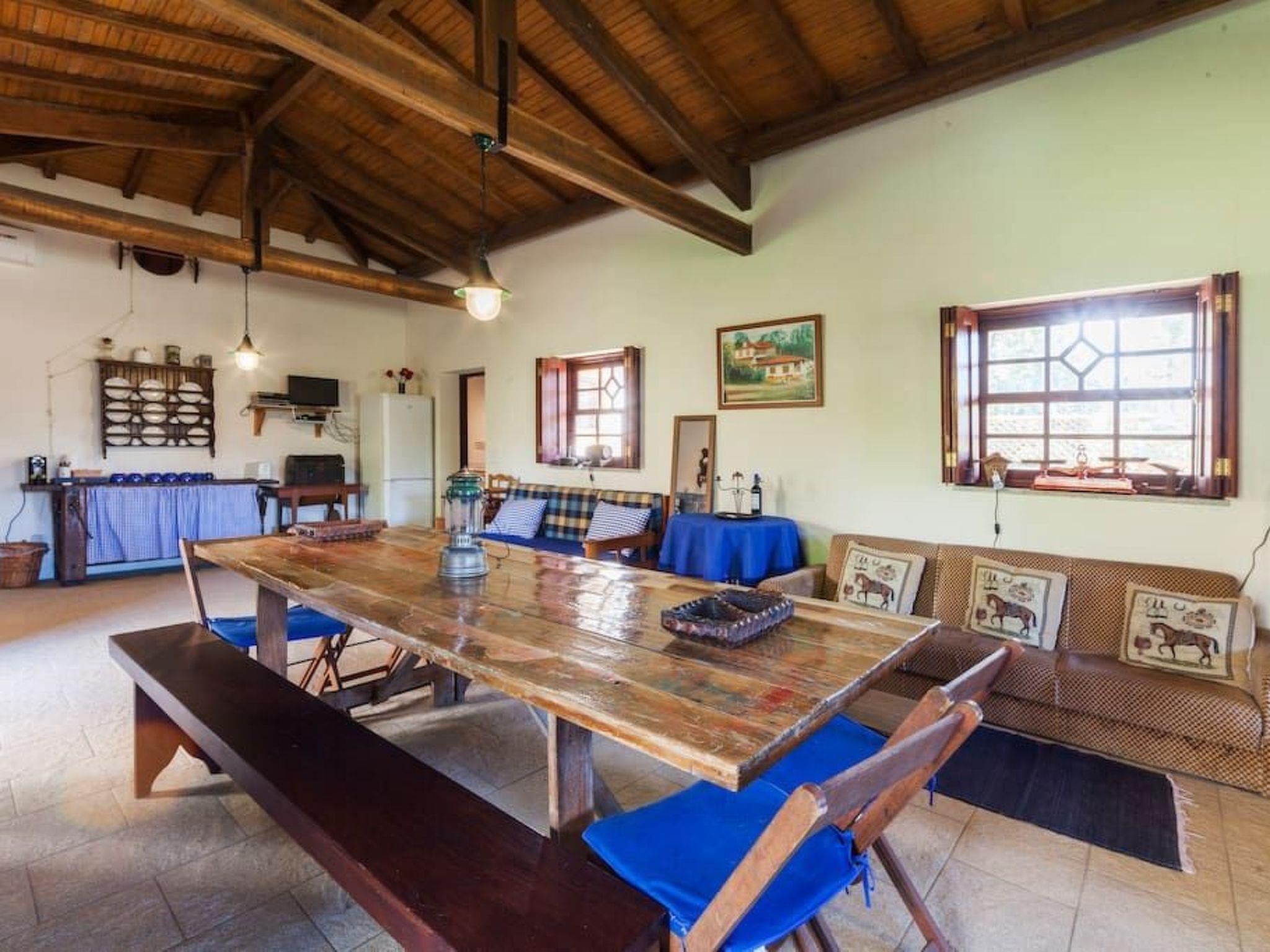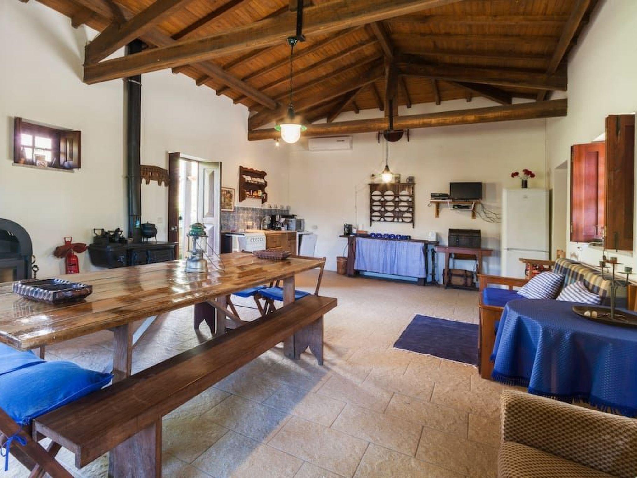 Das ca. 100 m² große Ferienhaus ist für zwölf Personen ausgelegt. Es besteht aus drei Schlafzimmern, zwei Badezimmern, einem großen Wohnzimmer und einer voll ausgestatteten Küche. Das erste Schlafzimmer ist eine Suite mit angrenzendem Badezimmer, einem Doppelbett (140 x 190 cm) und einem Babybett, während das zweite über ein Doppelbett (190 x 140 cm) und ein Einzelbett (90 x 190 cm) verfügt. Zwei weitere Schlafzimmer verfügen sogar über einen separaten Eingang von außen und sind mit insgesamt zwei Doppelbetten (190 x 140 cm) und einem Einzelbett (190 x 190 cm) ausgestattet. Im Wohnzimmer befinden sich zwei weitere Einzelbetten, die durch einen Vorhang getrennt sind. Das Besondere daran ist, dass sie sich direkt neben dem alten Möbelstück befinden. Das Haus ist außerdem mit einem Holzofen (Brennholz wird gestellt) sowie mit Heizung und Klimaanlage ausgestattet. Drahtloses Wi-Fi ist ebenfalls verfügbar.