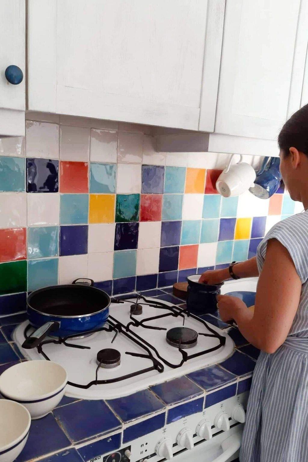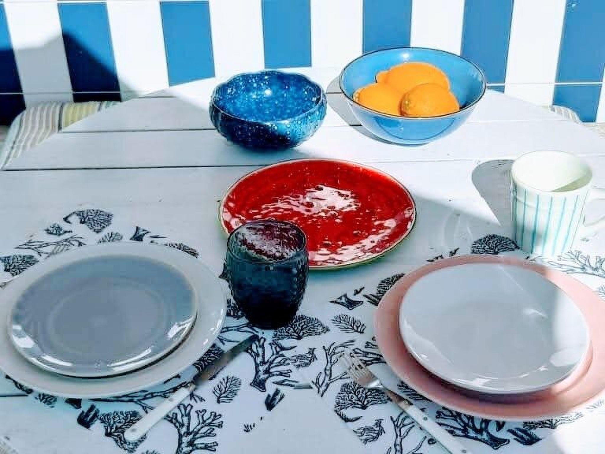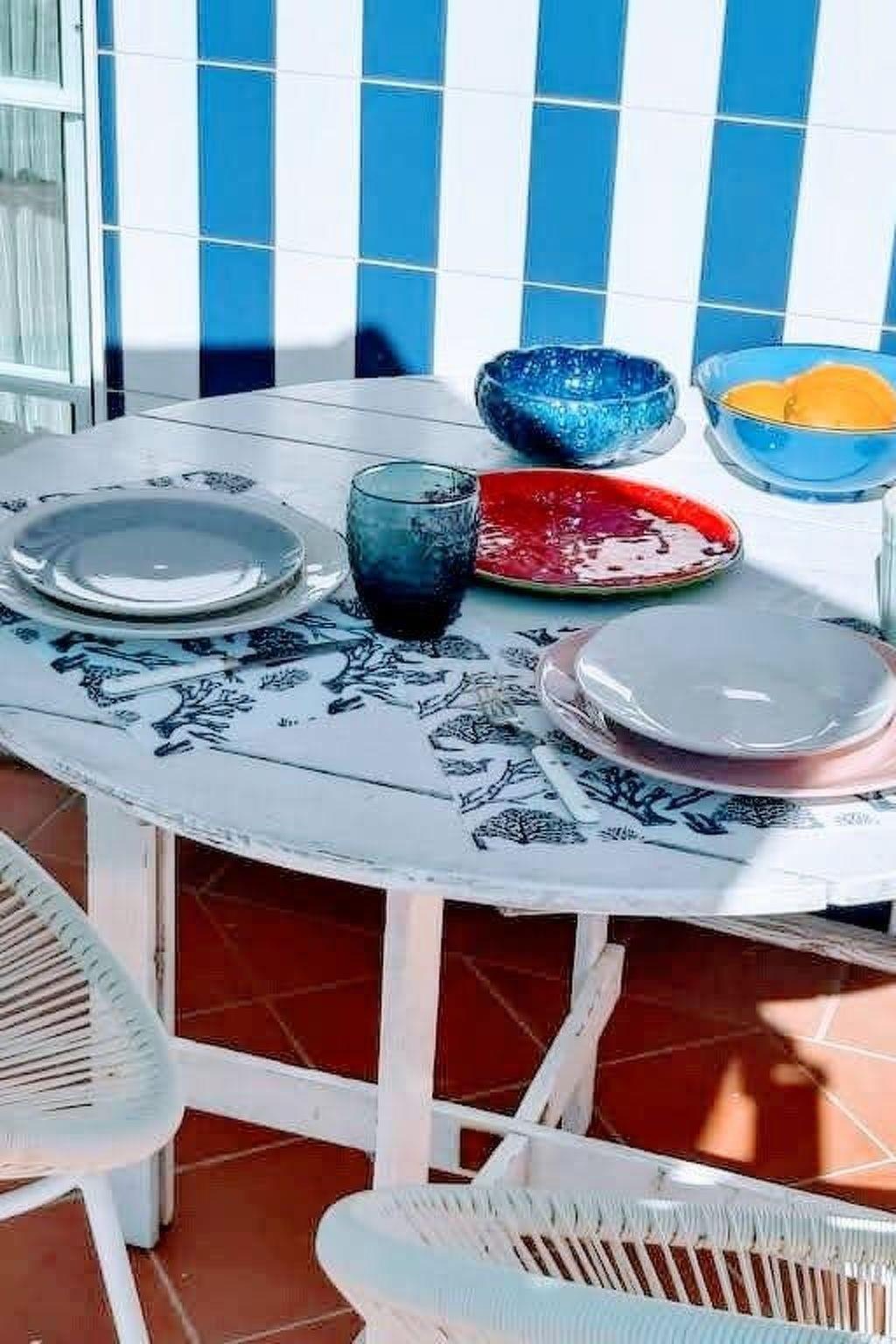 Im Innern erwartet Sie eine durchdachte Raumaufteilung, in der natürliches Licht jede Ecke durchflutet und eine warme und einladende Atmosphäre schafft. Das Herzstück des Apartments ist die Küchenzeile, die mit einem Gasherd, einer Kaffeemaschine, einem Geschirrspüler und einem Wasserkocher ausgestattet ist, was die Zubereitung von Mahlzeiten zu einem Kinderspiel macht. Die Mahlzeiten können dann im gemütlichen Wohnbereich genossen werden, der eine nahtlose Mischung aus Funktionalität und Entspannung bietet. Die Einrichtung ist eine Hommage an den Geist der alten Fischerhütten, die mit den leuchtenden Farben Marokkos und einigen Vintage-Details aufgepeppt wurde. Authentische portugiesische Fliesen fangen diese einzigartige Ästhetik ein und verleihen dem Raum Charakter und Charme.
