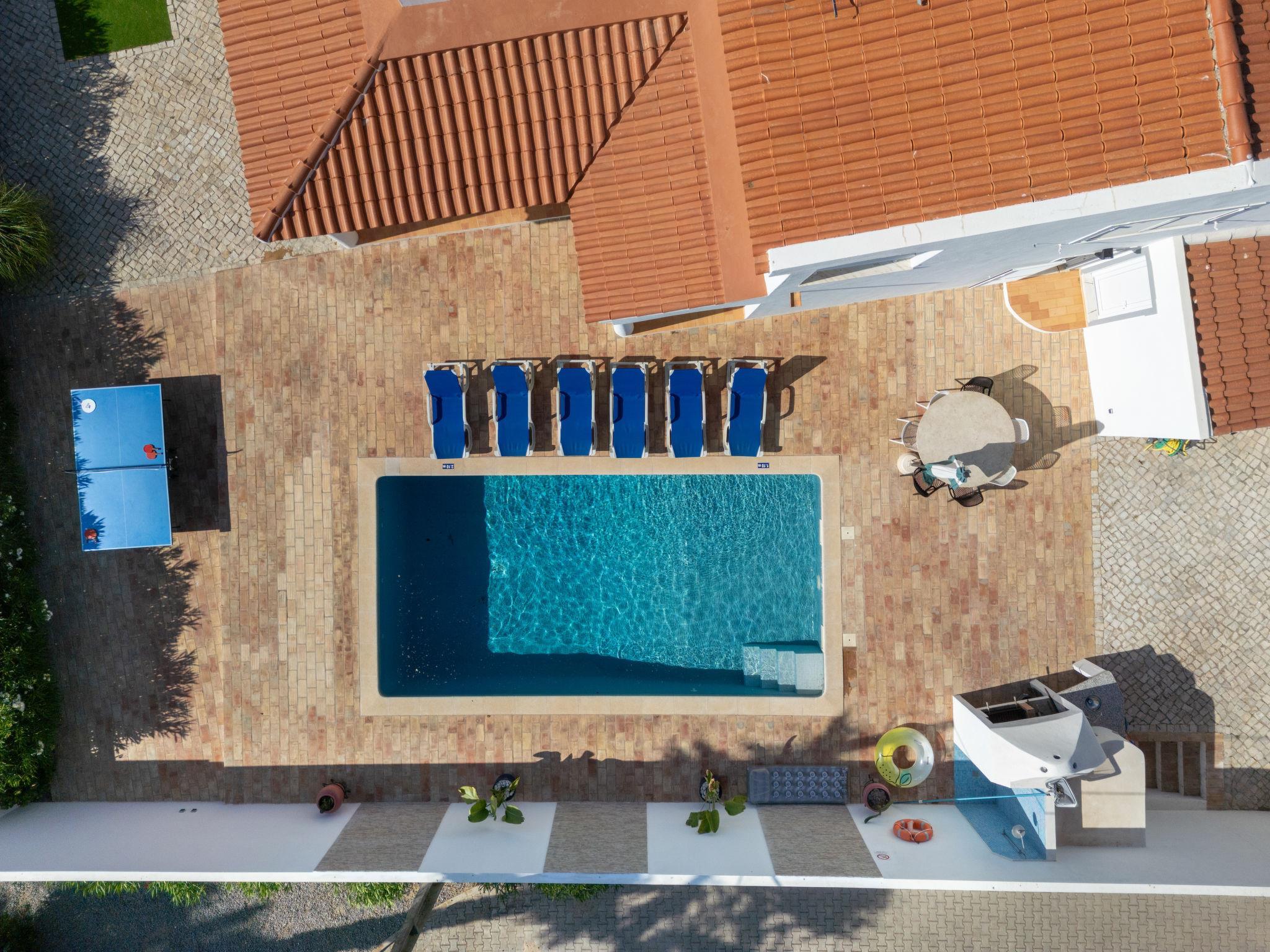 Sehr gemütliche, komfortable Villa "dos Sonhos". Ausserhalb des Ortes, 5.5 km vom Zentrum von Albufeira, im Villenviertel, 850 m vom Meer. Zur Alleinbenutzung: Schwimmbad nierenförmig (4 x 8 m, 110 - 185 cm tief, saisonale Verfügbarkeit: 01.Jan. - 31.Dez.). Tischtennis. Im Hause: Wireless LAN, Waschmaschine. Parkplatz beim Haus. Einkaufsgeschäft 6.5 km, Lebensmittelgeschäft 1.7 km, Supermarkt 1.7 km, Einkaufszentrum 7 km, Restaurant 600 m, Bar 270 m, Bäckerei 1.7 km, Fahrradverleih 5.7 km, Bushaltestelle 600 m, Bahnstation 10.7 km, Sandstrand "Praia do Evaristo" 850 m, Tauchzentrum 4.2 km. Jacht-Hafen 3.4 km, Golfplatz (18 Loch) 4 km, Surfschule 1.9 km, Minigolf 7.7 km, Reitstall 4.1 km, Kinderspielplatz 6.6 km. Nahe gelegene Sehenswürdigkeiten: Zoomarine 7.1 km, Aqualand 9.3 km, Krazy World 13.7 km, Marina De Albufeira 3.3 km, Sand City 13.8 km, Faro Airport 39.2 km. Bekannte Seen in der Umgebung sind gut erreichbar: Lagoa dos Salgados 3.9 km. Bitte beachten: Fahrzeug empfohlen. Geeignet für Familien. Be- und Entladen am Ferienhaus möglich. Gruppen von Jugendlichen unter 25 Jahren zahlen eine zusätzliche Kaution pro Person vor Ort.