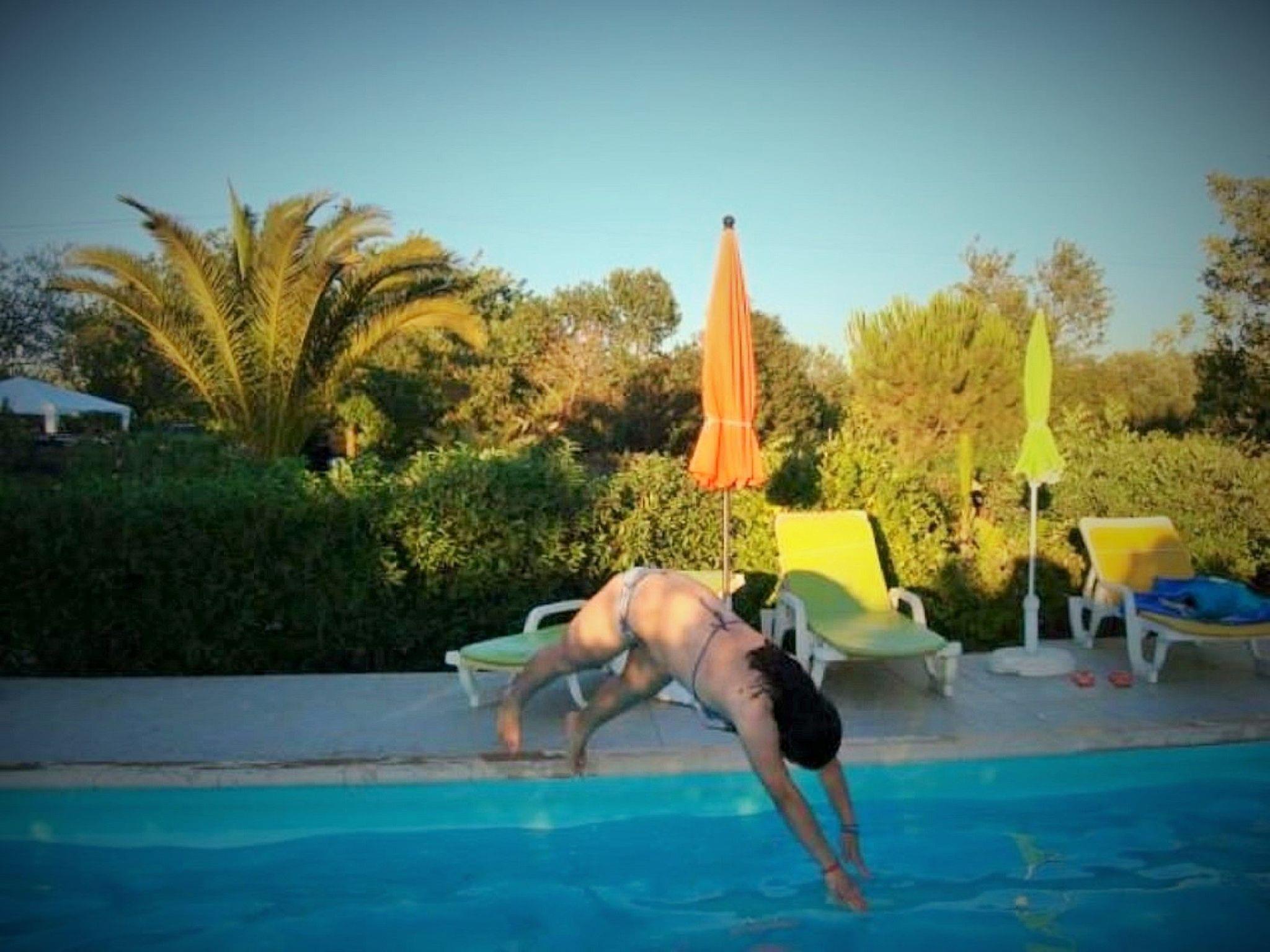 Im Außenbereich verfügt das Haus über eine einladende Terrasse mit einem großen Tisch in einer Gartenlaube und einem Grill, ideal für Mahlzeiten im Freien und um das sonnige Klima der Algarve zu genießen. Der Garten, der mit anderen Bewohnern des Anwesens geteilt wird, sowie der gemeinschaftlich genutzte Pool bieten eine herrliche Kulisse für Entspannung und Freizeit. Ob Sie nun am Pool faulenzen oder im Schatten der Obstbäume lesen möchten, die Außenanlage ist auf Ihr Wohlbefinden und Ihren Genuss ausgelegt.