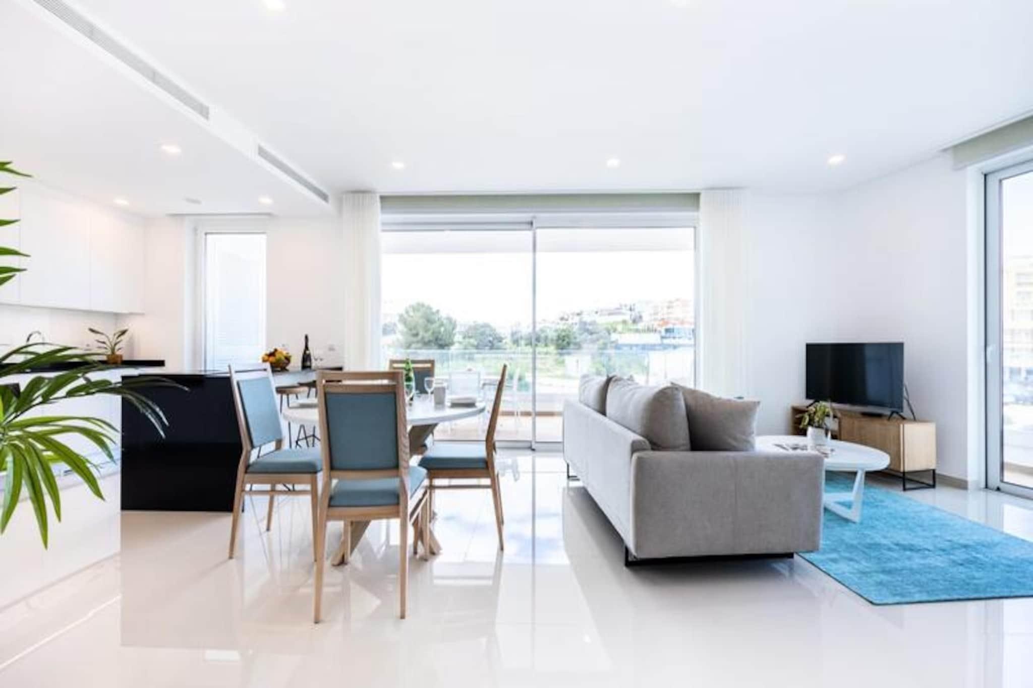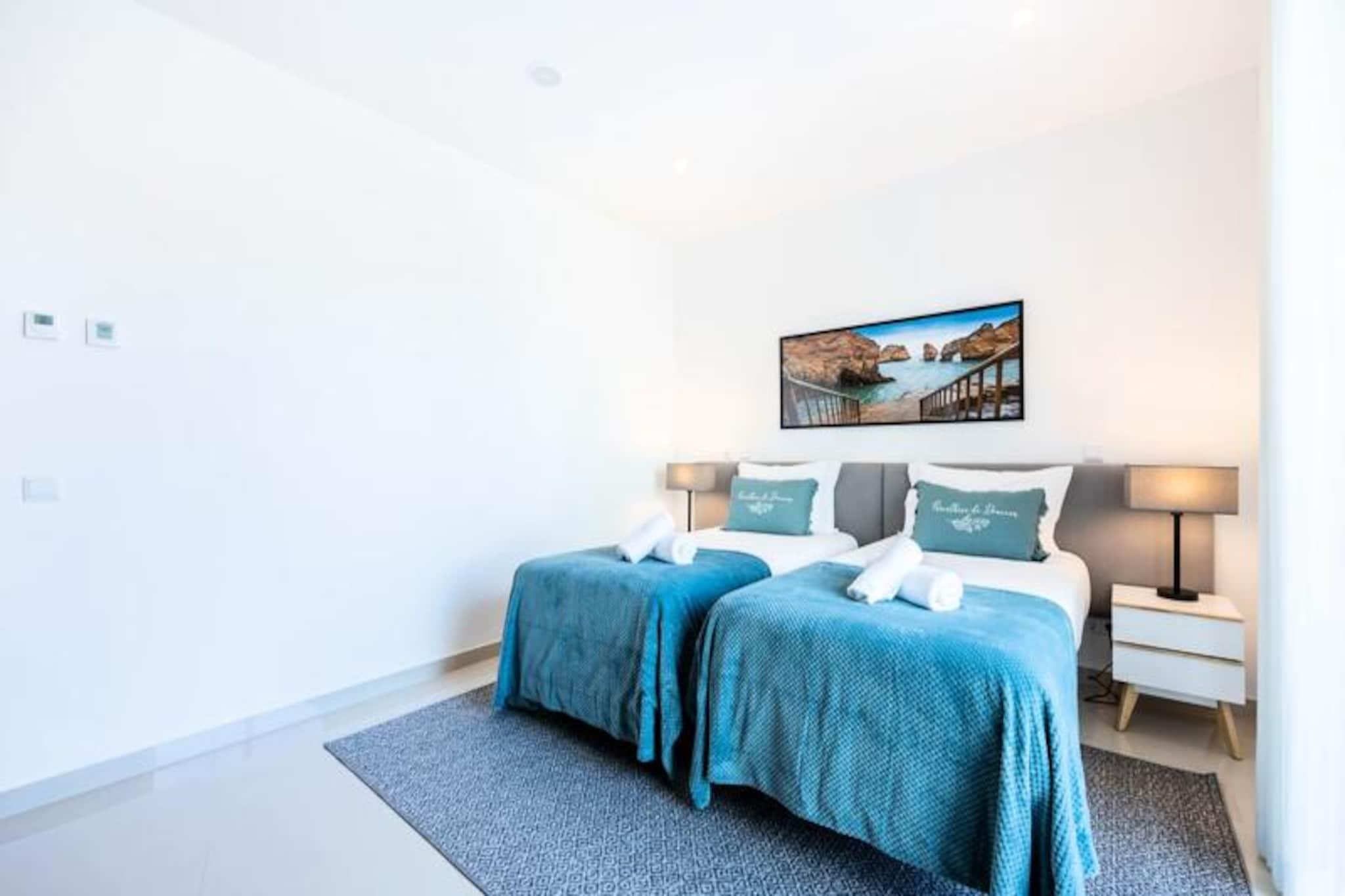 Erwachen Sie in diesem atemberaubenden, brandneuen 2-Zimmer-Apartment mit der sanften Meeresbrise und der pulsierenden Energie der Lagos Marina. In perfekter Lage nahe dem Herzen von Lagos bietet dieses moderne Refugium eine harmonische Verbindung von Luxus und Komfort und ist somit die ideale Wahl für Ihren nächsten Urlaub. Vom privaten Balkon aus können Sie den malerischen Blick auf die Stadt genießen, während Sie Ihren Morgenkaffee trinken oder einen entspannten Abend unter dem Sternenhimmel verbringen. Treten Sie ein und entdecken Sie einen durchdacht gestalteten Wohnraum mit modernem Dekor, einer voll ausgestatteten Küche und Highspeed-WLAN, damit Sie stets in Verbindung bleiben. Das Apartment bietet außerdem Zugang zu zwei Gemeinschaftspools – perfekt für eine erfrischende Abkühlung nach einem erlebnisreichen Tag. Fitnessbegeisterte werden das hauseigene Fitnessstudio zu schätzen wissen, während der großzügige Wohnbereich zum stilvollen Entspannen einlädt. Bettwäsche und Handtücher werden gestellt, und an jedes Detail wurde gedacht, um Ihnen einen reibungslosen und komfortablen Aufenthalt zu garantieren. Nur 5 Gehminuten von der Marina entfernt finden Sie eine Vielzahl von Restaurants, Bars mit Live-Musik und Supermärkten, die keine Wünsche offen lassen. Lagos ist berühmt für seine atemberaubenden Klippen und unberührten Strände und somit ein Paradies für Wassersportbegeisterte. Ob Sie entlang der dramatischen Küste Kajak fahren, auf den Wellen des Atlantiks surfen oder einfach nur die Sonne genießen – hier ist für jeden etwas dabei. Das charmante historische Zentrum mit seinen Kopfsteinpflastergassen und seiner lebendigen Atmosphäre ist ein absolutes Muss zum Shoppen und Schlemmen. Dank der guten Erreichbarkeit vom Flughafen Faro ist Lagos das perfekte Reiseziel für alle, die Entspannung und Abenteuer suchen. Buchen Sie noch heute Ihren Aufenthalt und erleben Sie unvergessliche Momente in diesem Küstenparadies.