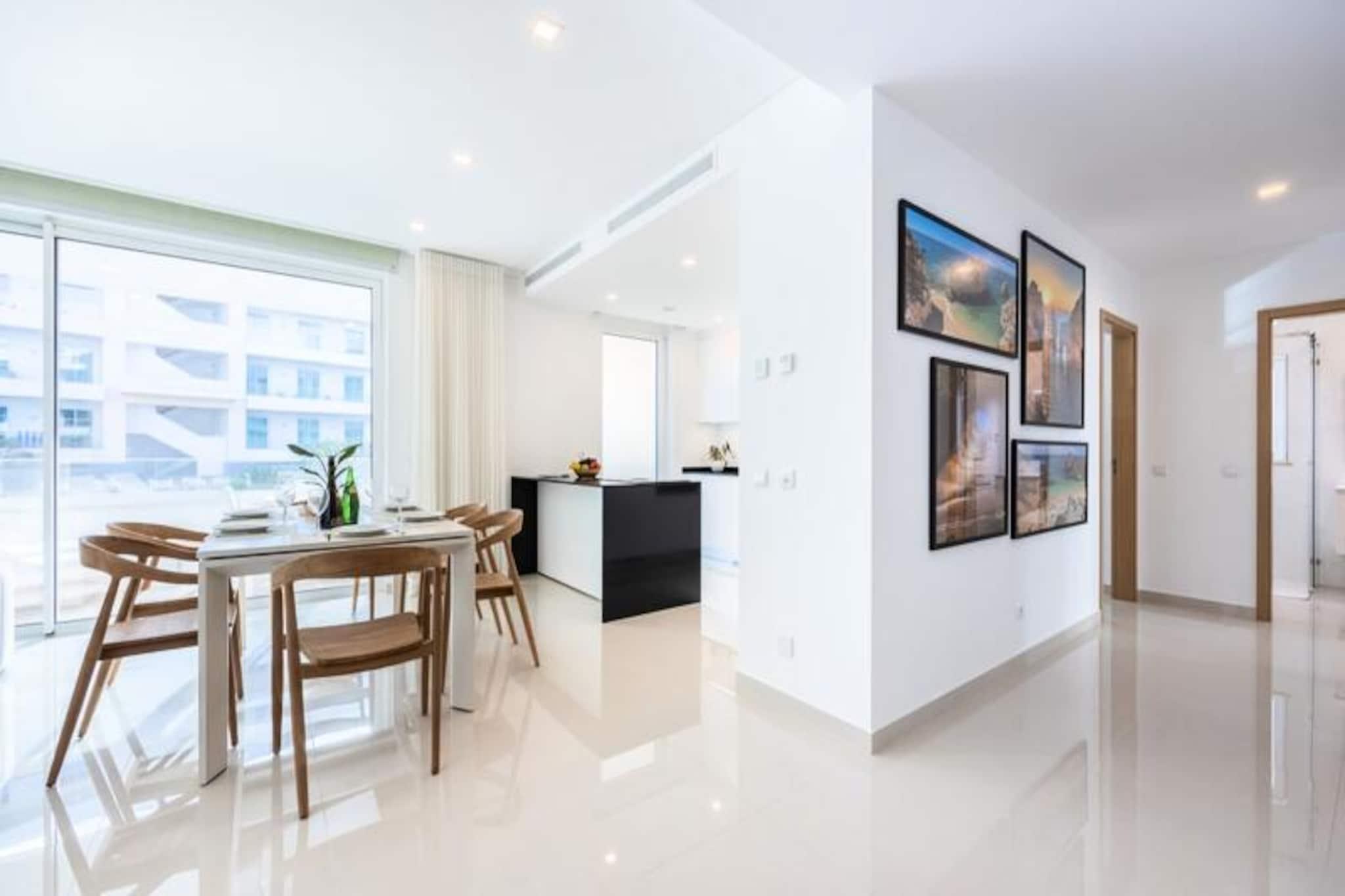 Tauchen Sie ein in den pulsierenden Charme von Lagos mit diesem luxuriösen Apartment mit drei Schlafzimmern, perfekt gelegen zwischen dem Yachthafen und der historischen Altstadt. Dieses moderne Refugium bietet Ihnen eine Oase der Ruhe und ist gleichzeitig der ideale Ausgangspunkt für Ihre Auszeit an der Algarve. Schon bei Ihrer Ankunft werden Sie von der gelungenen Kombination aus zeitgenössischer Eleganz und Küstenflair empfangen – der perfekte Ort für Ihren Portugalurlaub. Treten Sie ein und entdecken Sie einen großzügigen, lichtdurchfluteten Wohnbereich mit offener Küche und einer großen Terrasse, die zum Entspannen nach einem erlebnisreichen Tag einlädt. Jedes Schlafzimmer ist komfortabel eingerichtet und verfügt über Klimaanlage, elektrische Jalousien und luxuriöse Betten. Drei moderne Badezimmer und ein privater Balkon, der von einem der Schlafzimmer aus zugänglich ist, machen dieses Apartment zu einer gelungenen Verbindung von Stil und Funktionalität. Ein Gemeinschaftspool steht Ihnen ebenfalls zur Verfügung – eine erfrischende Oase direkt vor Ihrer Tür. Die Lage ist unvergleichlich: Die berühmten Strände von Lagos – Praia Dona Ana, Praia de Porto de Mos und Praia do Camilo – sind nur wenige Schritte entfernt. Erkunden Sie die malerische Ponte de Piedade (30 Gehminuten oder kurze Autofahrt) und genießen Sie einen der meistfotografierten Küstenabschnitte Portugals. Das historische Zentrum mit seinen Kopfsteinpflastergassen, lebhaften Märkten und charmanten Cafés erreichen Sie in nur 15 Minuten zu Fuß. Golfliebhaber erreichen den Golfplatz Boavista in nur 6 Autominuten. Supermärkte und Geschäfte in der Nähe sorgen für Komfort während Ihres gesamten Aufenthalts. Ob Sie Abenteuer, Entspannung oder beides suchen – dieses Apartment bietet die perfekte Kombination aus Luxus und erstklassiger Lage. Buchen Sie noch heute und erleben Sie unvergessliche Momente im bezaubernden Lagos.