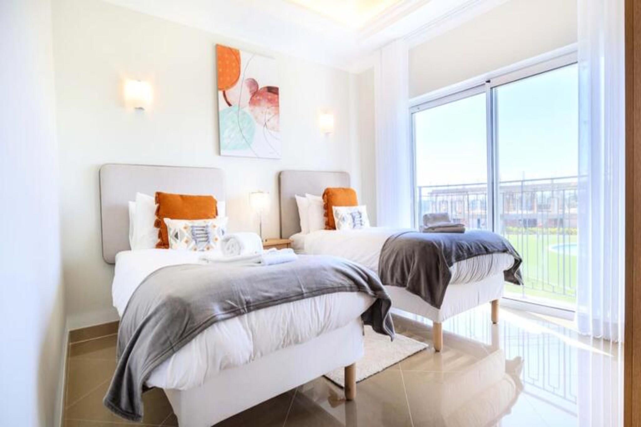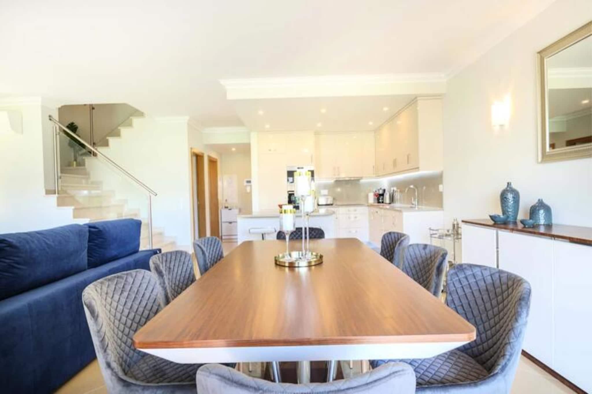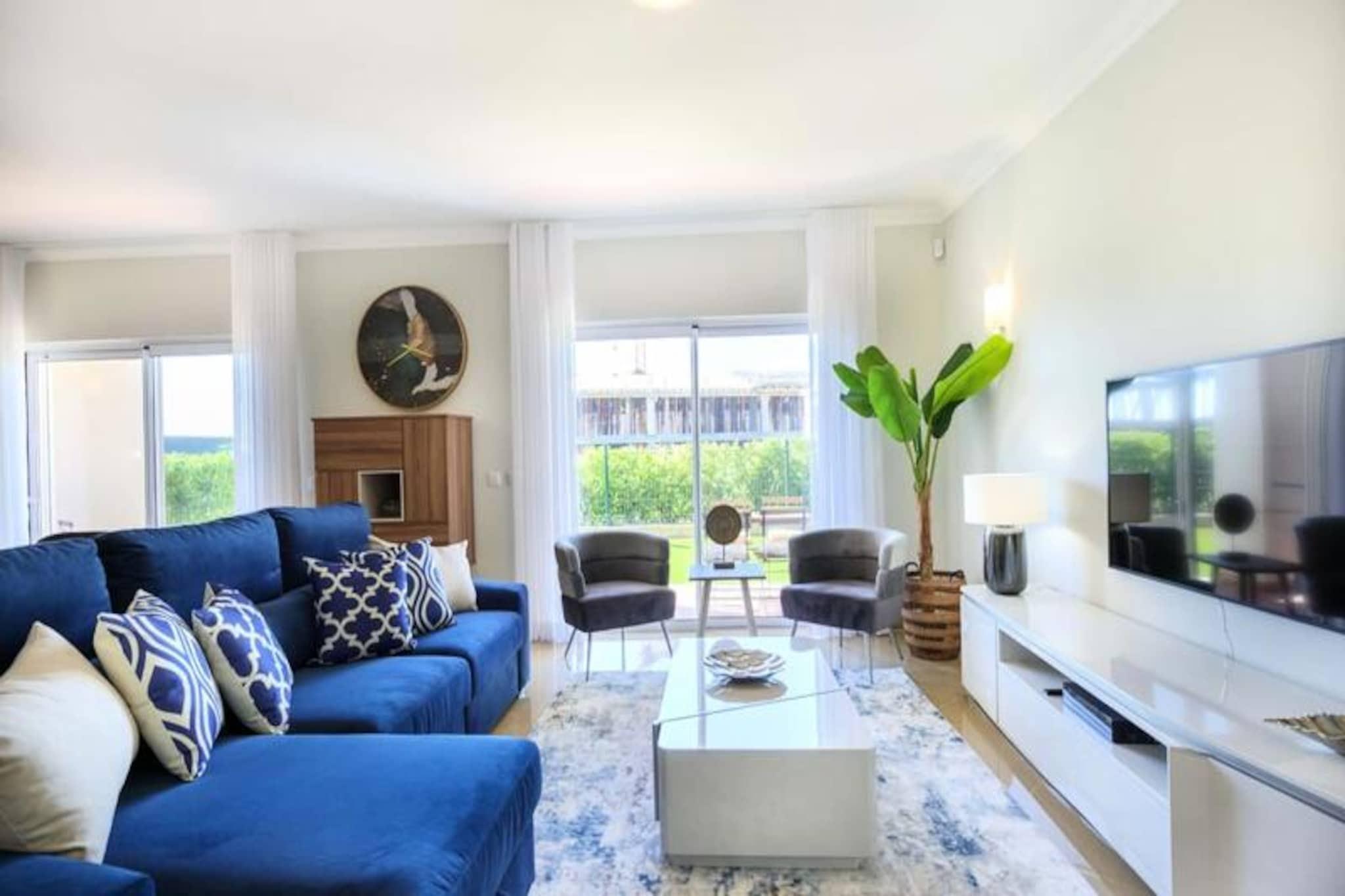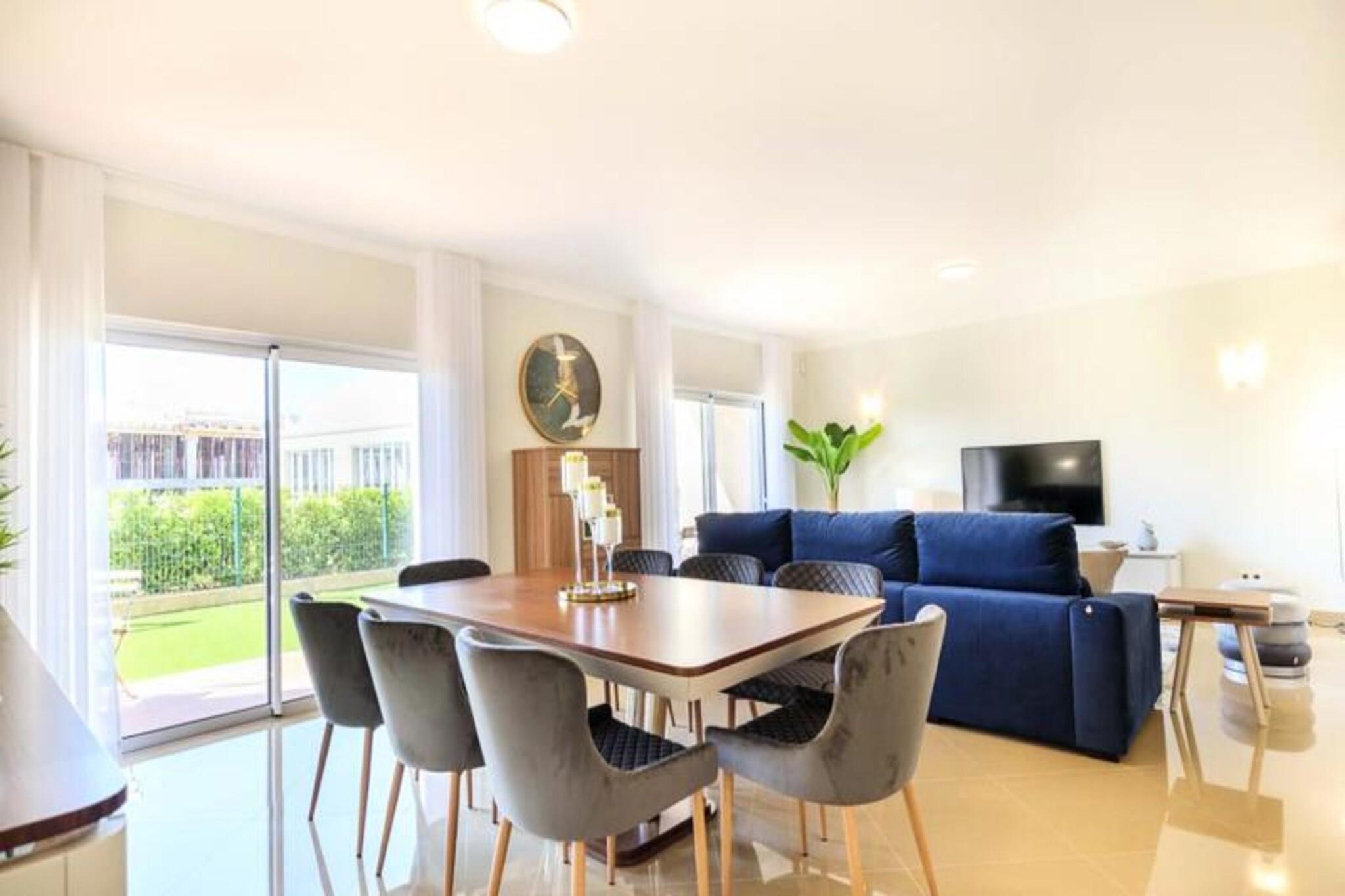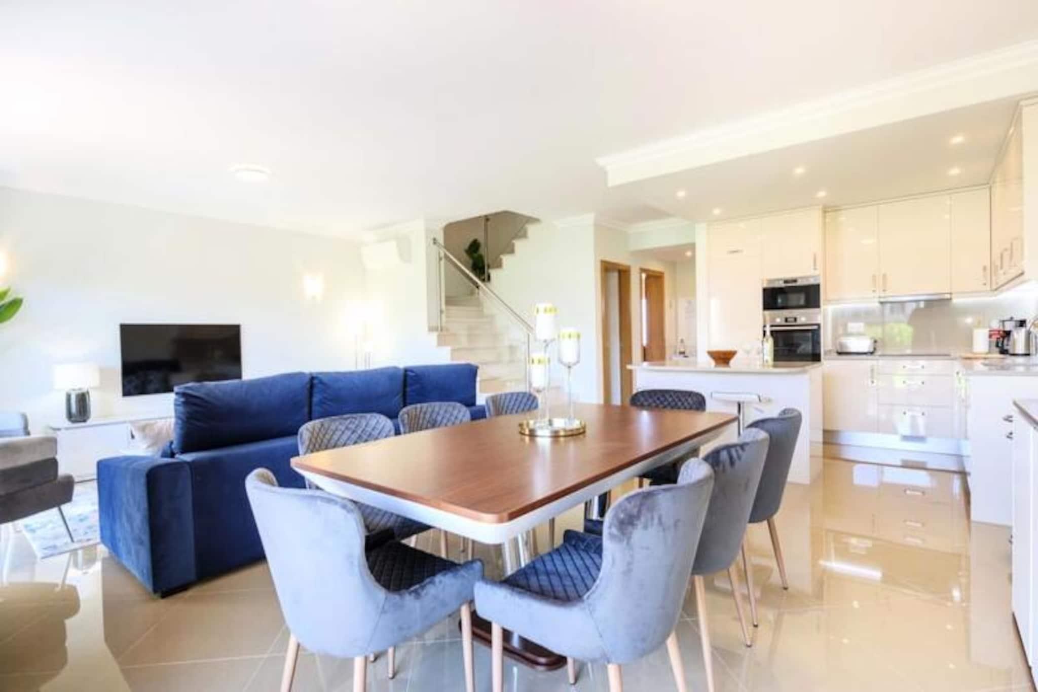 Im Herzen der Algarve, wo goldene Strände auf sanfte grüne Fairways treffen, bietet dieses elegante Stadthaus im exklusiven Bayview Village im BoaVista Golf Resort einen luxuriösen Rückzugsort für bis zu acht Gäste. Umgeben von der ruhigen Schönheit von Lagos und seiner dramatischen Küste lädt diese Unterkunft Sie ein, sich stilvoll zu entspannen und dabei erstklassige Annehmlichkeiten und atemberaubende Landschaften zu genießen. Ob Sie hier einen Familienurlaub oder einen Ausflug mit Freunden verbringen möchten, dieses Haus verspricht einen unvergesslichen Aufenthalt voller Entspannung und Abenteuer. Treten Sie ein und entdecken Sie einen modernen, geschmackvoll eingerichteten Raum, der auf Komfort und Bequemlichkeit ausgelegt ist. Das Haus verfügt über drei geräumige Schlafzimmer, jedes mit eigenem Bad, und ein zusätzliches Zimmer mit Schlafsofa und nahe gelegenem Badezimmer. Der offene Wohnbereich verfügt über eine voll ausgestattete Küche, einen Esstisch und eine gemütliche Lounge, die sich zu einem privaten Garten mit Grill und Essbereich hin öffnet. Im Obergeschoss bietet ein großer Balkon einen Blick auf den Pool und das Resort und ist ideal für den Morgenkaffee oder Cocktails am Abend. Mit WLAN, einem Arbeitsbereich und Bettwäsche ist an jedes Detail gedacht worden, um Ihren Aufenthalt so angenehm wie möglich zu gestalten. Das Resort selbst ist eine Oase der Erholung und verfügt über einen 18-Loch-Golfplatz, zwei Restaurants, Tennisplätze, einen Spielplatz und ein Gesundheits- und Wellness-Spa mit beheiztem Pool, Whirlpool, Sauna und Fitnessstudio. Nur einen kurzen Spaziergang vom Haus entfernt finden Sie Innen- und Außenpools, ein Bistro-Restaurant und einen Bereich zum Sonnenbaden. Außerhalb des Resorts erwartet Sie die lebhafte Stadt Lagos mit ihrem historischen Zentrum, dem Yachthafen und den atemberaubenden Klippen. Entdecken Sie die natürliche Schönheit der Algarve bei Bootstouren, Kajakfahrten oder Wanderungen oder entspannen Sie sich einfach an einem der vielen Strände in der Nähe. Ob Sie Abenteuer, Ruhe oder eine Mischung aus beidem suchen, dieses Stadthaus ist der perfekte Ausgangspunkt, um das Beste der Algarve zu erleben. Buchen Sie noch heute Ihren Aufenthalt und schaffen Sie unvergessliche Erinnerungen in diesem Küstenparadies.