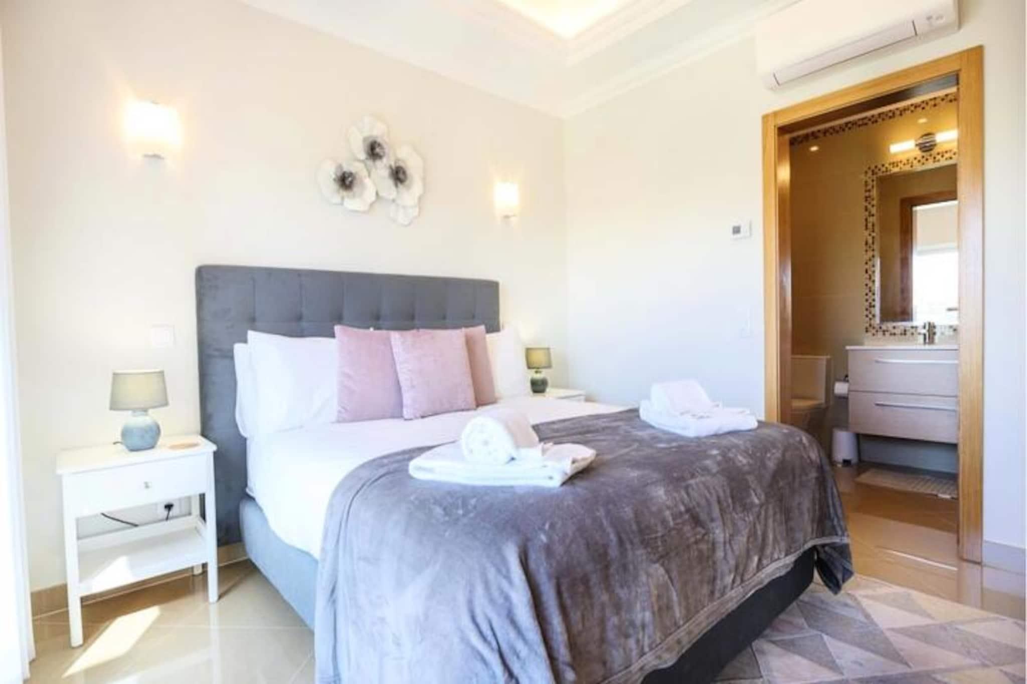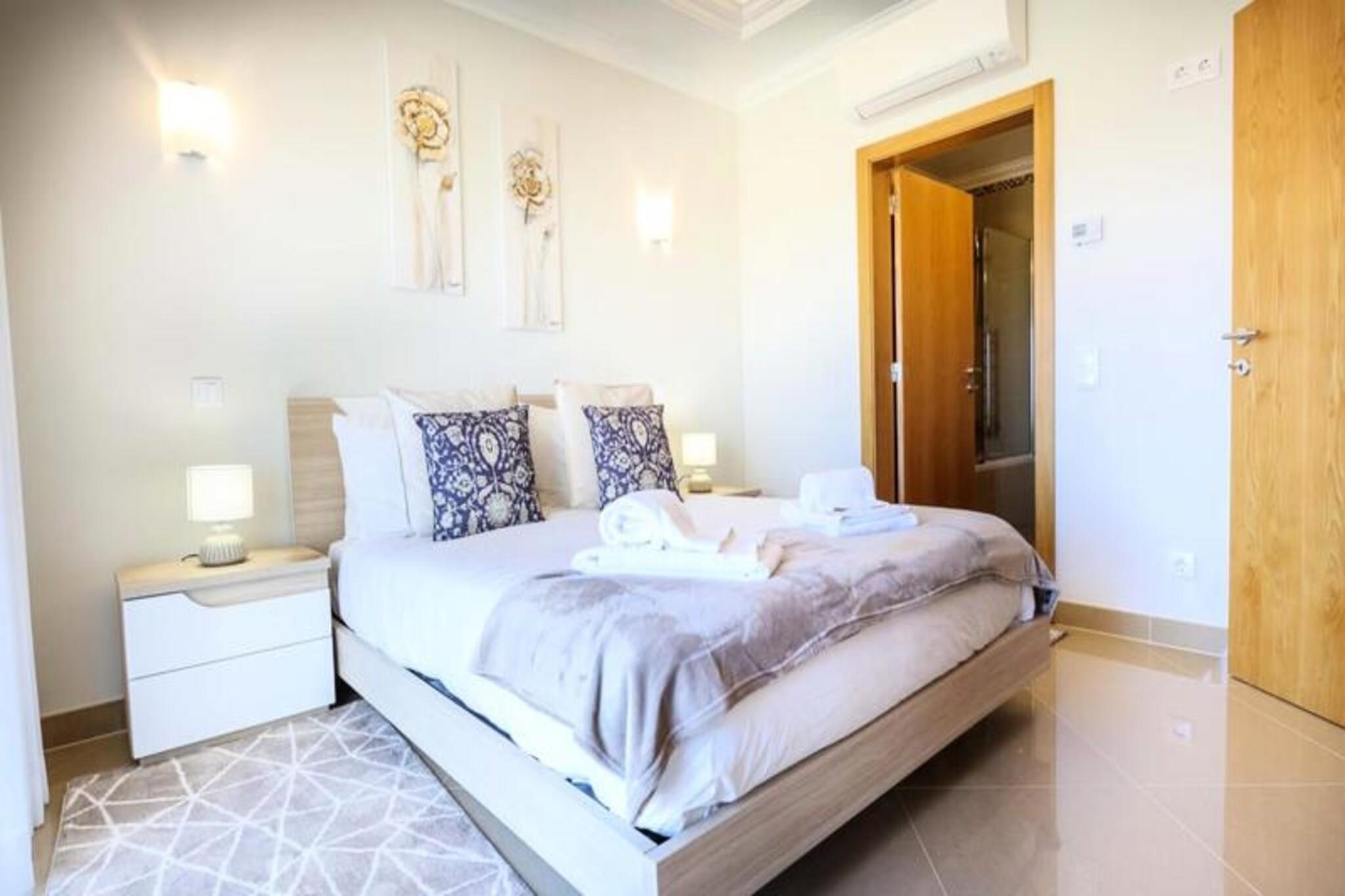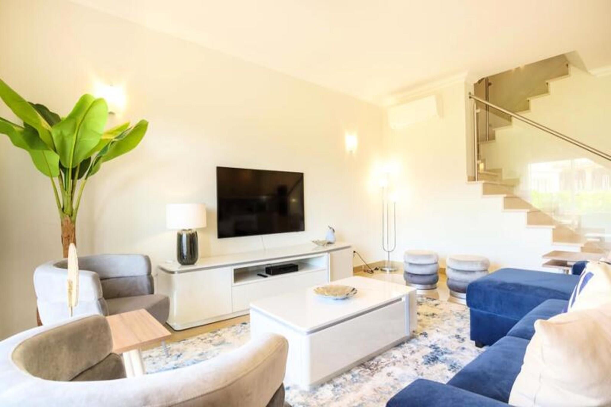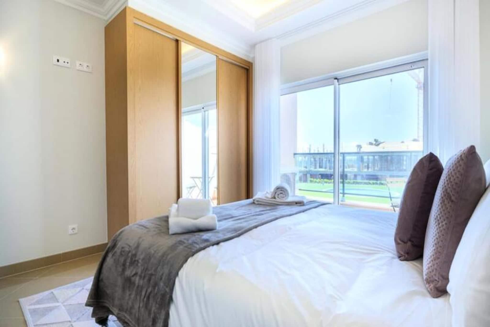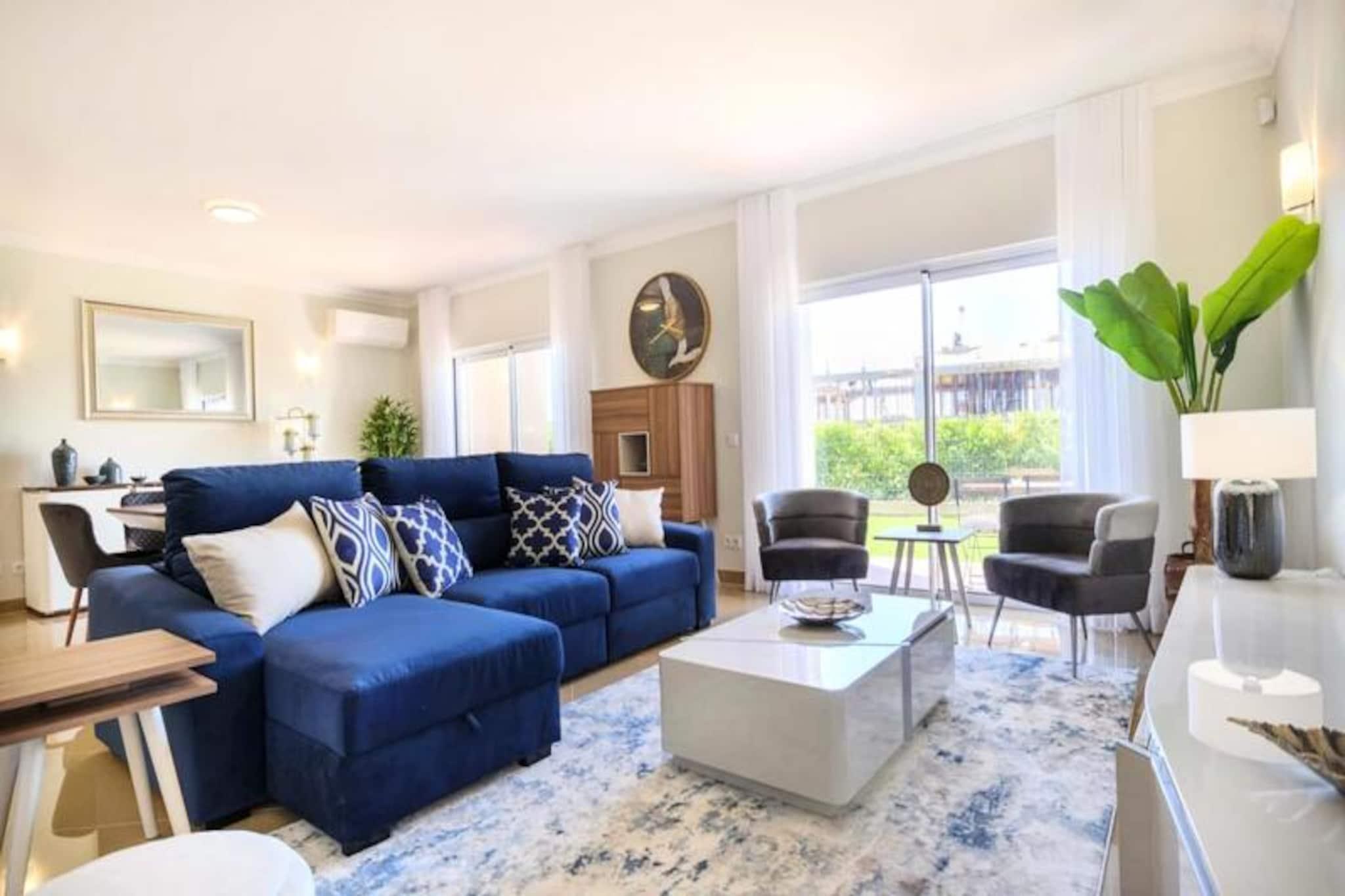 Im Herzen der Algarve, wo goldene Strände auf sanfte grüne Fairways treffen, bietet dieses elegante Stadthaus im exklusiven Bayview Village im BoaVista Golf Resort einen luxuriösen Rückzugsort für bis zu acht Gäste. Umgeben von der ruhigen Schönheit von Lagos und seiner dramatischen Küste lädt diese Unterkunft Sie ein, sich stilvoll zu entspannen und dabei erstklassige Annehmlichkeiten und atemberaubende Landschaften zu genießen. Ob Sie hier einen Familienurlaub oder einen Ausflug mit Freunden verbringen möchten, dieses Haus verspricht einen unvergesslichen Aufenthalt voller Entspannung und Abenteuer. Treten Sie ein und entdecken Sie einen modernen, geschmackvoll eingerichteten Raum, der auf Komfort und Bequemlichkeit ausgelegt ist. Das Haus verfügt über drei geräumige Schlafzimmer, jedes mit eigenem Bad, und ein zusätzliches Zimmer mit Schlafsofa und nahe gelegenem Badezimmer. Der offene Wohnbereich verfügt über eine voll ausgestattete Küche, einen Esstisch und eine gemütliche Lounge, die sich zu einem privaten Garten mit Grill und Essbereich hin öffnet. Im Obergeschoss bietet ein großer Balkon einen Blick auf den Pool und das Resort und ist ideal für den Morgenkaffee oder Cocktails am Abend. Mit WLAN, einem Arbeitsbereich und Bettwäsche ist an jedes Detail gedacht worden, um Ihren Aufenthalt so angenehm wie möglich zu gestalten. Das Resort selbst ist eine Oase der Erholung und verfügt über einen 18-Loch-Golfplatz, zwei Restaurants, Tennisplätze, einen Spielplatz und ein Gesundheits- und Wellness-Spa mit beheiztem Pool, Whirlpool, Sauna und Fitnessstudio. Nur einen kurzen Spaziergang vom Haus entfernt finden Sie Innen- und Außenpools, ein Bistro-Restaurant und einen Bereich zum Sonnenbaden. Außerhalb des Resorts erwartet Sie die lebhafte Stadt Lagos mit ihrem historischen Zentrum, dem Yachthafen und den atemberaubenden Klippen. Entdecken Sie die natürliche Schönheit der Algarve bei Bootstouren, Kajakfahrten oder Wanderungen oder entspannen Sie sich einfach an einem der vielen Strände in der Nähe. Ob Sie Abenteuer, Ruhe oder eine Mischung aus beidem suchen, dieses Stadthaus ist der perfekte Ausgangspunkt, um das Beste der Algarve zu erleben. Buchen Sie noch heute Ihren Aufenthalt und schaffen Sie unvergessliche Erinnerungen in diesem Küstenparadies.