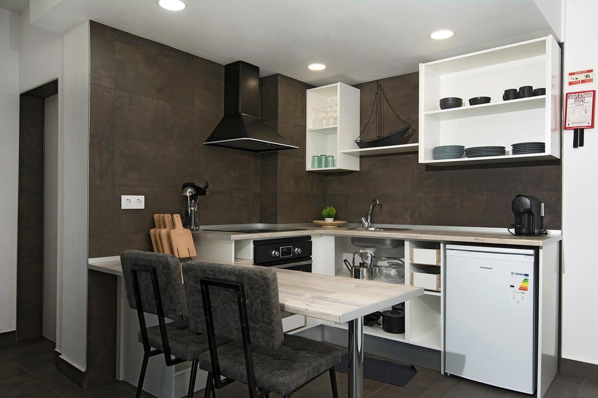 Genießen Sie den phantastischen Blick vom überdachten Balkon über die Dächer und die Lagune von Lagos! Das modern eingerichtete und sehr gut ausgestattete Appartement im 3. Stock eines Wohnhauses (Aufzug) bietet ein geschmackvolles Ambiente für 1-2 Personen. Auf dem großzügigen Balkon mit bequemen Sitzmöbeln können Sie herrlich entspannen und den Blick Richtung Meer schweifen lassen. Der Schlafraum ist vom komfortablen Wohnbereich durch einen Vorhang getrennt. Einkaufsmöglichkeiten, Restaurants, Cafés sowie die nächsten Strände sind auch zu Fuß schnell erreichbar.