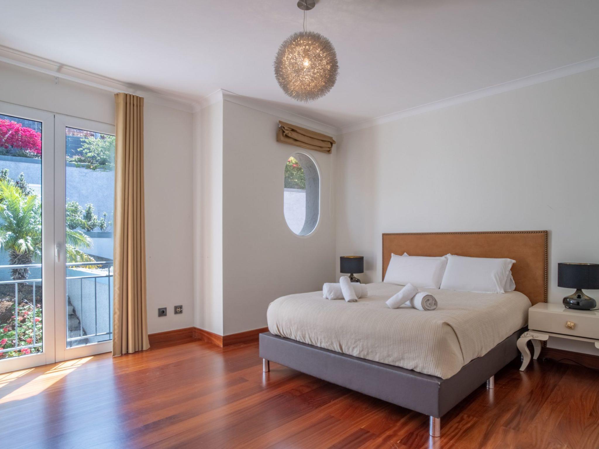 Im Außenbereich der Villa Loreina Palace befindet sich die Krönung: ein privater Poolbereich, in dem die Gäste in aller Ruhe ein Sonnenbad nehmen oder ein erfrischendes Bad nehmen können. Die Villa verfügt auch über einen großzügigen Garten, der zu gemütlichen Spaziergängen einlädt oder einfach zum Entspannen in der üppigen Umgebung Madeiras. Der Charme des Außenbereichs wird durch eine herrliche Terrasse abgerundet, ein idealer Ort, um im Freien zu speisen oder ein Getränk zu genießen, während man den Tag ausklingen lässt.