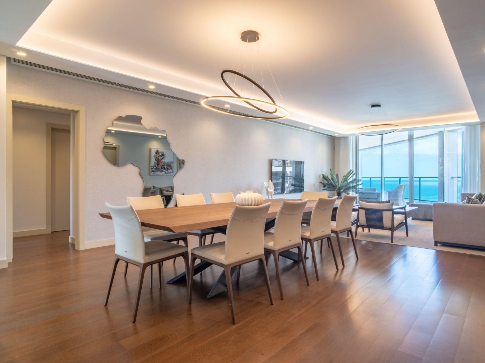 Im Inneren der Wohnung befinden sich drei einladende Schlafzimmer und drei Bäder, die allen Gästen Privatsphäre und Komfort bieten. Die Teilklimaanlage sorgt für ein angenehmes Ambiente, während die Waschmaschine und der Wäschetrockner für zusätzlichen Komfort sorgen. Die Küche ist mit einem Geschirrspüler, einer Kaffeemaschine und einem Wasserkocher ausgestattet, so dass die Zubereitung von Mahlzeiten ein Kinderspiel ist. Ganz gleich, ob Sie eine lokale Delikatesse oder einen schnellen Snack zubereiten möchten, diese durchdachten Annehmlichkeiten sorgen für ein problemloses Wohnerlebnis.