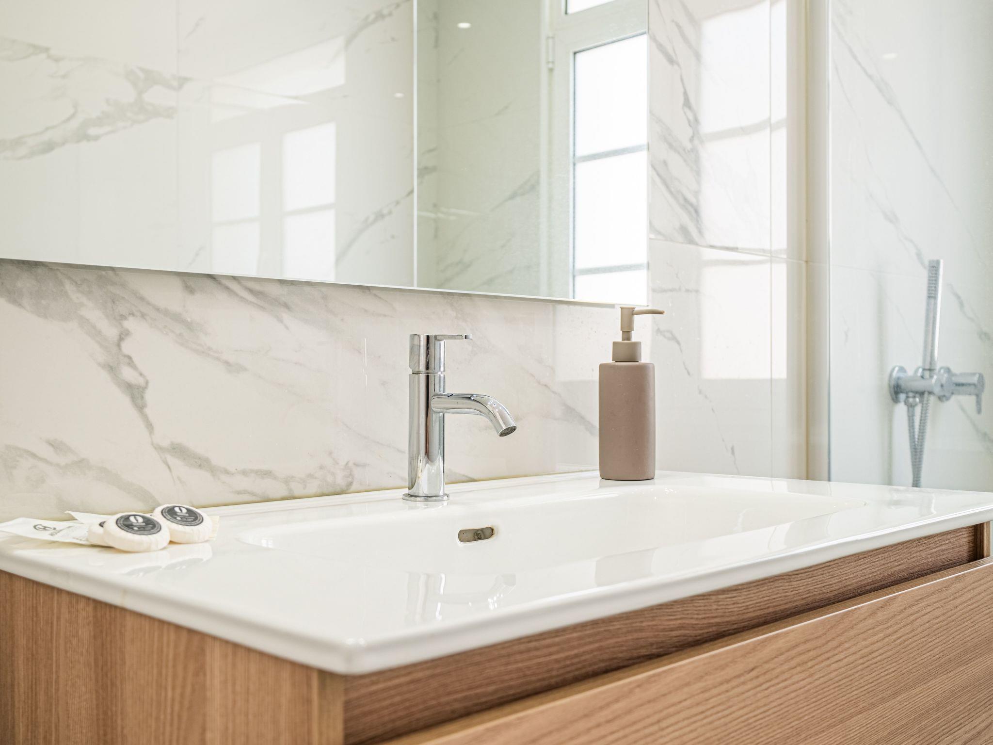 Auf dem privaten Balkon können Sie die frische Luft und den Rhythmus der Stadt von einem ruhigen Aussichtspunkt aus genießen. Auch wenn die Wohnung nicht mit großen Außenanlagen aufwartet, sorgt dieser private Außenbereich dafür, dass ein Hauch von frischer Luft nur wenige Schritte entfernt ist, und bietet eine kleine Oase inmitten der Aufregung der Stadt.