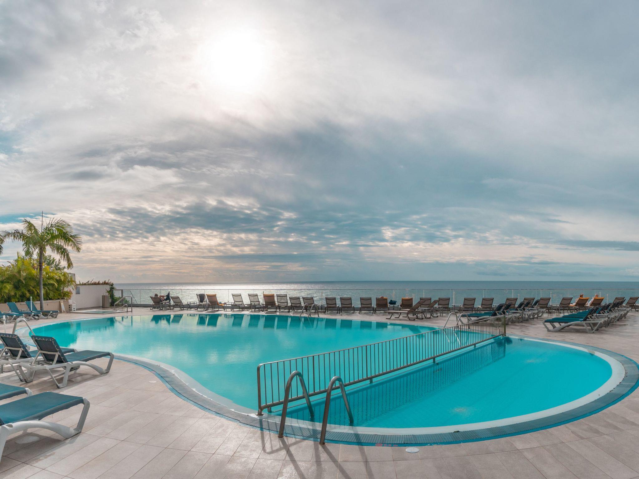Treten Sie hinaus auf den Balkon oder gehen Sie in den Gemeinschaftsgarten, um die Sonne Madeiras zu genießen. Beide Bereiche bieten einen erfrischenden Rahmen für den Morgenkaffee oder die abendliche Entspannung. Das Highlight ist jedoch der gemeinschaftliche Außenpool, der zu einem erfrischenden Bad einlädt. Es ist der ideale Ort, um das herrliche Wetter Madeiras zu genießen und jeden Moment Ihres Aufenthalts unvergesslich zu machen.