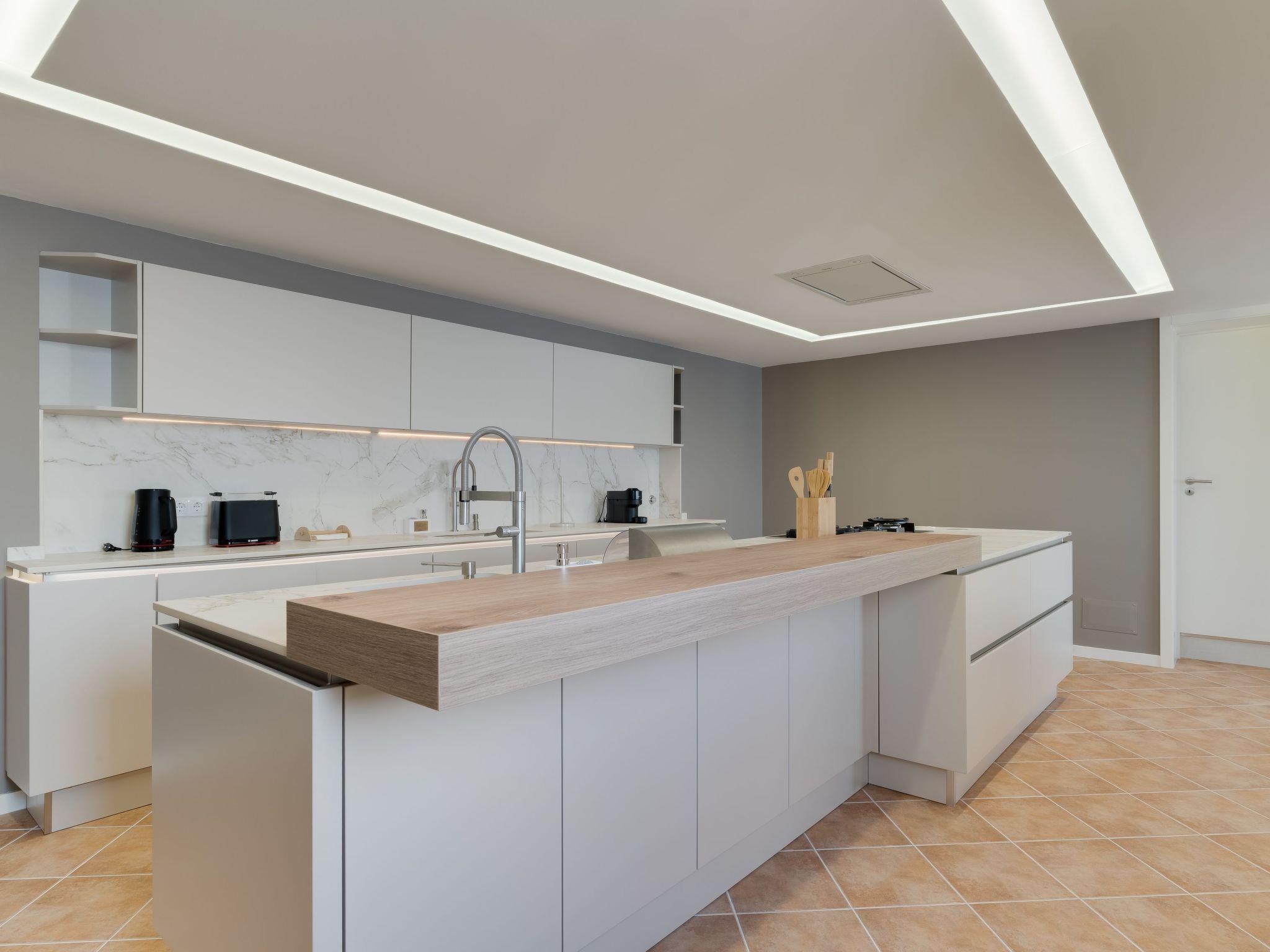 Im Inneren finden Sie einen gut ausgestatteten Wohnbereich, der alle Ihre Bedürfnisse erfüllt. Zu jedem der drei Schlafzimmer gehört ein eigenes Bad, so dass jeder seine Privatsphäre hat und sich wohl fühlt. Eine Dusche, eine Badewanne mit Dusche, eine Kapselkaffeemaschine, ein Geschirrspüler und ein Wasserkocher sorgen dafür, dass Sie sich wie zu Hause fühlen können. Für längere Aufenthalte stehen Ihnen eine Waschmaschine und ein Wäschetrockner zur Verfügung, die Sie nur für sich selbst nutzen können, was für zusätzlichen Komfort sorgt.