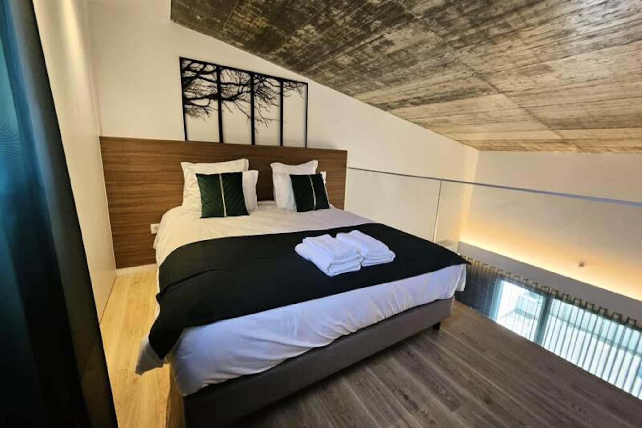 Im Herzen Portugals, wo moderner Komfort auf Küstencharme trifft, bietet MARINHA GRANDE APARTAMENTOS einen ruhigen Rückzugsort für Geschäftsreisende, Freiberufler und Erholungssuchende. Dank der erstklassigen Lage, nur 10 Fahrminuten von den goldenen Stränden der Costa da Prata und unweit von Leiria entfernt, ist diese Unterkunft der perfekte Ausgangspunkt, um die pulsierenden Städte Porto und Lissabon oder die malerische Küste zwischen Aveiro und Torres Vedras zu erkunden. Naturliebhaber finden in der Region zahlreiche Radwege, die unzählige Abenteuer inmitten üppiger Landschaften versprechen. Das Apartment GREEN LOFT Nr. 6 ist eine Oase des Komforts und Stils. Auf zwei Ebenen bietet es einen einladenden Eingangsbereich mit viel Stauraum, eine voll ausgestattete Küche mit modernen Geräten und ein gemütliches Wohnzimmer mit Essbereich und Unterhaltungsmöglichkeiten wie Kabelfernsehen, Netflix und YouTube. Im Obergeschoss befindet sich das luxuriöse Schlafzimmer mit einem 180 cm breiten Bett, einer Arbeitsecke und einem privaten Badezimmer mit eleganter Dusche. Durchdachte Details wie elektrische Jalousien, Klimaanlage und Highspeed-WLAN sorgen für einen reibungslosen Aufenthalt. Die private Terrasse lädt zum Entspannen ein, und das intelligente Schließsystem ermöglicht einen bequemen Zugang. Gäste genießen exklusive Annehmlichkeiten wie einen glitzernden Swimmingpool, einen Fitnessraum und eine sichere Garage mit Tesla-Ladestation (gegen Gebühr). Wöchentliche Reinigung und frische Bettwäsche sind bei Aufenthalten von mehr als einer Woche inklusive und garantieren einen sorgenfreien Aufenthalt. Ob Sie geschäftlich, entspannt oder auf Entdeckungsreise sind – die MARINHA GRANDE APARTAMENTOS bieten die perfekte Kombination aus Luxus und Funktionalität. Entdecken Sie Portugal von seiner zentralen und ruhigen Lage aus.