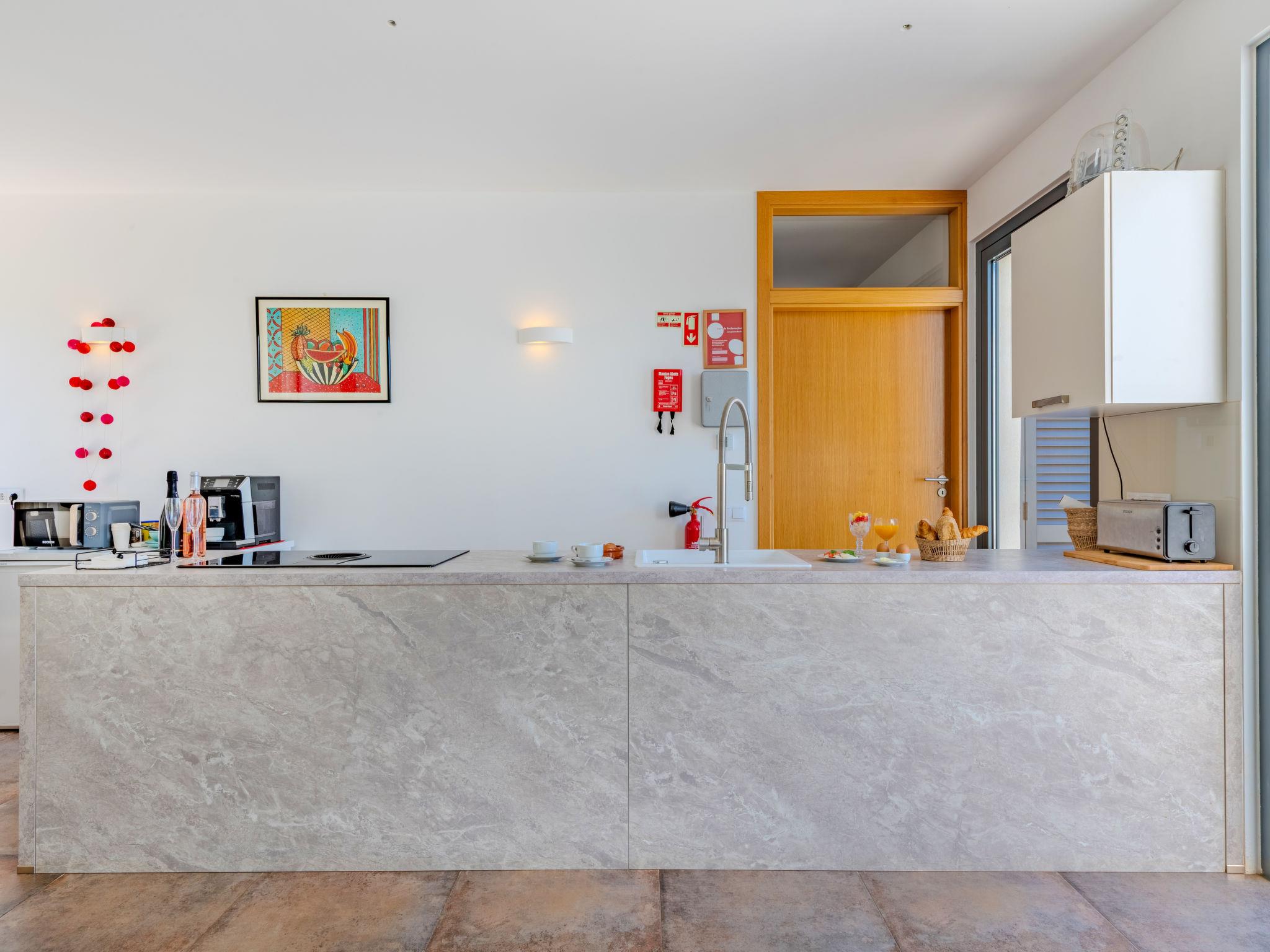 "Suites Sunny Hill", 2-Zimmer-Wohnung 64 m2. Sehr zweckmässig und gemütlich eingerichtet: 1 Zimmer mit 2 Betten (90 cm, Länge 200 cm), Klimaanlage und Warmluftheizung. Wohnküche (4 Induktionskochplatten, elektrische Kaffeemaschine, Kapseln für die Kaffeemaschine (Dolce Gusto not incl)) mit Esstisch, Digital-TV, Flachbildschirm und Klimaanlage. Ausgang zur Terrasse. Dusche/WC. Fussbodenheizung. Liegestühle. Sicht auf den Garten und die Landschaft. Zur Verfügung: Haartrockner. Internet (WLAN, gratis). Bitte beachten: nicht geeignet für Kinder unter 16 Jahren. Nichtraucher-Unterkunft. Feuerlöscher. 153922/AL