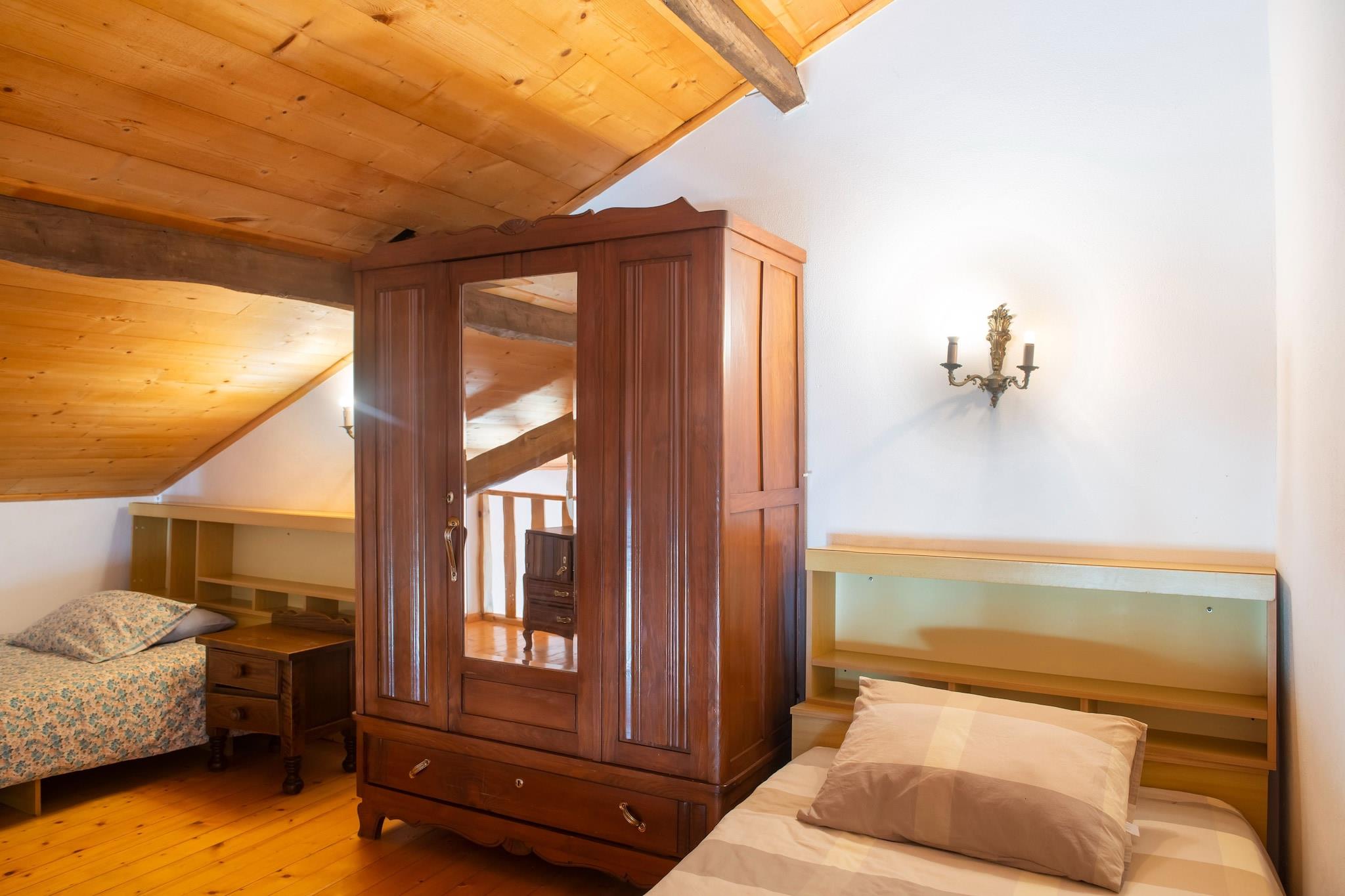 Parterre: (Eingangshalle(Bettnische (1 Pers.)), Wohnzimmer(TV(Satellit), Gartentüren), offene Küche(Kaffeemaschine, Mikrowelle, Spülmaschine, Kühl-/Gefrierkombination, Gartentüren), Schlafzimmer(Doppelbett(180 x 200 cm)), Badezimmer(Badewanne mit Dusche, 2x Waschbecken, Toilette, Bidet)) In der 1. Etage: (Galerieschlafzimmer(2x Schlafcouch 1 Pers.)) Gästeunterkunft Parterre: (Schlafzimmer(4x Einzelbett), Badezimmer(Dusche, Waschbecken, Toilette, Bidet)) Carport(auf dem Gelände)(Garten(umzäunt), Teich), 2x Waschmaschine(Gemeinschaftliche Nutzung mit anderen Gästen), Klimaanlage, Terrasse(alleinige Nutzung), Garten(Gemeinschaftliche Nutzung mit anderen Gästen), Grill, Parkplatz, Sonnenschirm, Pool(Gemeinschaftliche Nutzung mit anderen Gästen, 20 x 10 m., geöffnet von Jan bis einschließlich Dez), Tischtennisplatte, Kinderbett(auf Anfrage), Hochstuhl(auf Anfrage)