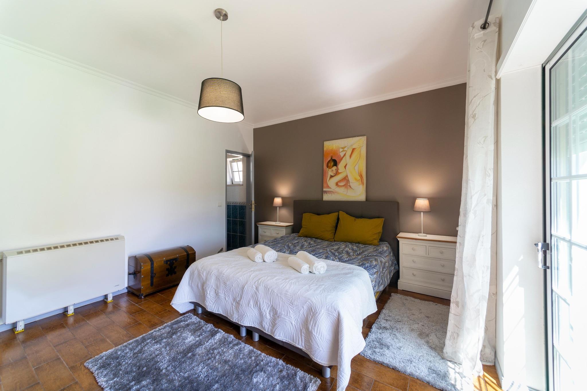 Inmitten der ruhigen Landschaft von Netos Almagreira bietet dieses charmante Ferienhaus einen erholsamen Rückzugsort für Familien und Freunde. Mit stilvollem Interieur und Zugang zu einem großen Gemeinschaftspool, einer Sauna, einem Whirlpool und einem wunderschön gepflegten Garten ist es der perfekte Ort zum Entspannen und um die Natur wiederzuentdecken. Das Haus bietet komfortablen Platz für Gäste mit gemütlicher Raumaufteilung und einer gut ausgestatteten Gemeinschaftsküche im Freien. Hier können Sie Ihre Mahlzeiten auf der Terrasse oder im Innenhof genießen. Kinder werden das gemeinschaftliche Trampolin lieben, während Erwachsene auf Liegestühlen Sonne tanken oder ruhige Momente in der Spa-Lounge genießen können. Das Anwesen verfügt außerdem über einen gemeinschaftlichen Grillplatz und Wellnesseinrichtungen für zusätzliches Wohlbefinden. Nur 25 km vom Strand Praia da Leirosa und 45 km von Figueira da Foz entfernt, ist das Haus ein idealer Ausgangspunkt für Tagesausflüge und Küstenabenteuer. Wander- und Radwege umgeben die Umgebung, und nahe gelegene Restaurants und Supermärkte sorgen für einen komfortablen Aufenthalt. Ob Sie die Region erkunden oder einfach im Garten entspannen – dieses ländliche Refugium bietet ein ruhiges und erholsames Erlebnis.