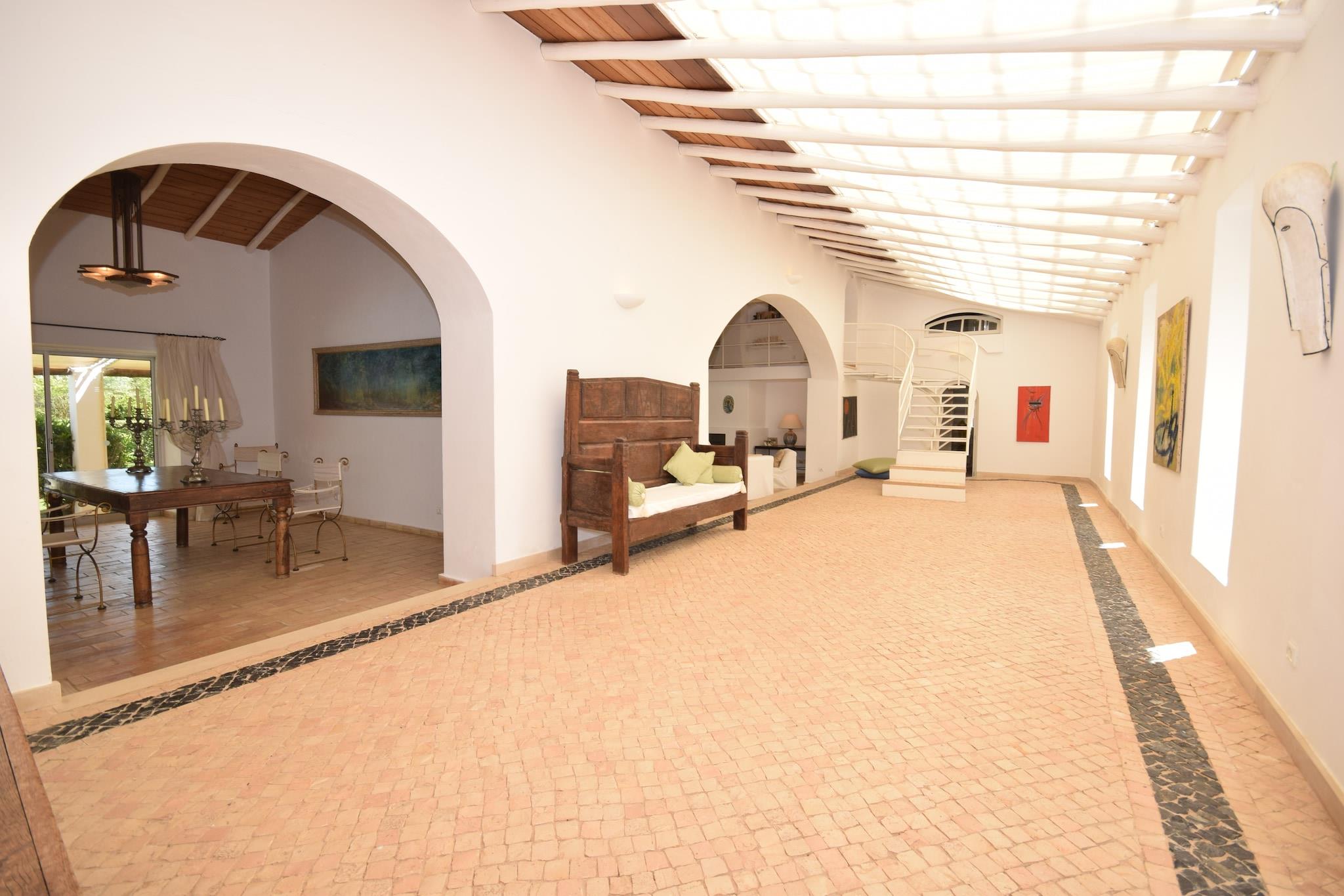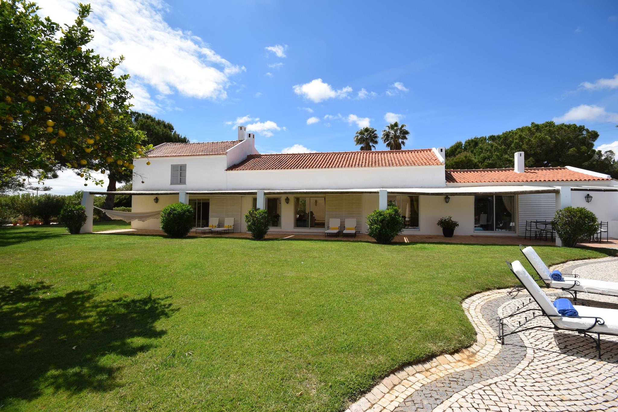 Ruhiges Familienhaus mit privatem Pool in der Nähe von Meia Praia, Odiáxere Eingebettet im ruhigen Dorf Odiáxere verbindet dieses einladende Ferienhaus den Charme der Algarve mit Komfort und Platz für Familien oder kleine Gruppen. Das Haus bietet einen privaten 17-Meter-Pool und eine üppige Umgebung – ideal für lange Tage in der Sonne oder ruhige Abende auf der überdachten Terrasse. Die Innenräume sind hell und geschmackvoll eingerichtet und verfügen über mehrere Loungebereiche, einen Wintergarten und eine gemütliche Bibliothek – ideal zum Entspannen mit einem guten Buch oder für gemütliche Stunden zu zweit. Strände, Golfplätze und das historische Lagos entdecken Die ideale Lage, nur 5 km vom goldenen Sandstrand Meia Praia entfernt, ermöglicht Gästen Sonnenbaden, Strandspaziergänge oder spannende Wassersportarten. Der renommierte Golfplatz Palmares ist für Golfbegeisterte nur 3 km entfernt, während die charmante Stadt Lagos mit ihren historischen Straßen, dem lebhaften Yachthafen und der malerischen Küste nur 10 Minuten entfernt ist. Für den täglichen Bedarf und lokale Spezialitäten bietet das nur 1 km entfernte Dorf Odiáxere Bäckereien, Restaurants und Märkte. Genießen Sie lokale Spezialitäten von Dorftavernen bis hin zu Küstenrestaurants Verwöhnen Sie Ihren Gaumen mit der vielfältigen kulinarischen Szene der Algarve. Genießen Sie in Odiáxere traditionelle portugiesische Gerichte in rustikalen Tavernen oder probieren Sie Grillspezialitäten und frische Meeresfrüchte. Eine größere Auswahl finden Sie in Lagos, wo gehobene Restaurants und Strandlokale frische Muscheln, Cataplana und regionale Weine anbieten. Ob entspanntes Café oder romantisches Abendessen am Meer – die lokale Küche wird Ihren Aufenthalt unvergesslich machen.