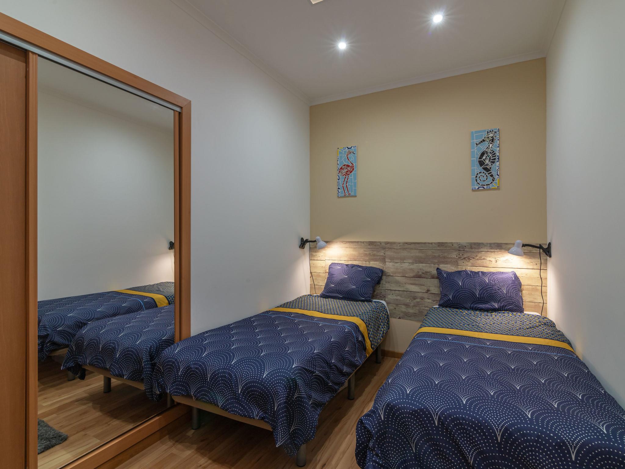 "Felicidade", 4-Zimmer-Reihenhaus 71 m2 auf 2 Stockwerken. Renoviert im Jahre 2020, komfortabel und gemütlich eingerichtet: Wohn-/Esszimmer mit Esstisch, TV, Internationale TV-Sender, Flachbildschirm, Klimaanlage und Warmluftheizung. 1 Zimmer mit 1 franz. Bett (160 cm, Länge 200 cm), Klimaanlage und Warmluftheizung. 1 Zimmer mit 2 Betten (90 cm, Länge 190 cm), Klimaanlage und Warmluftheizung. Küche (Backofen, 4 Glaskeramikplatten, Toaster, Mikrowelle, Tiefkühler, elektrische Kaffeemaschine). Dusche/WC. Obergeschoss: 1 Zimmer mit 1 franz. Bett (140 cm, Länge 190 cm), Dusche/WC, Klimaanlage und Warmluftheizung. Ausgang zur Terrasse. Laube. Terrassenmöbel, Gartengrill. Zur Verfügung: Waschmaschine, Kinderhochstuhl, Babybett bis 2 Jahre. Internet (WLAN). Bitte beachten: geeignet für Familien. Feuerlöscher. 109277/AL