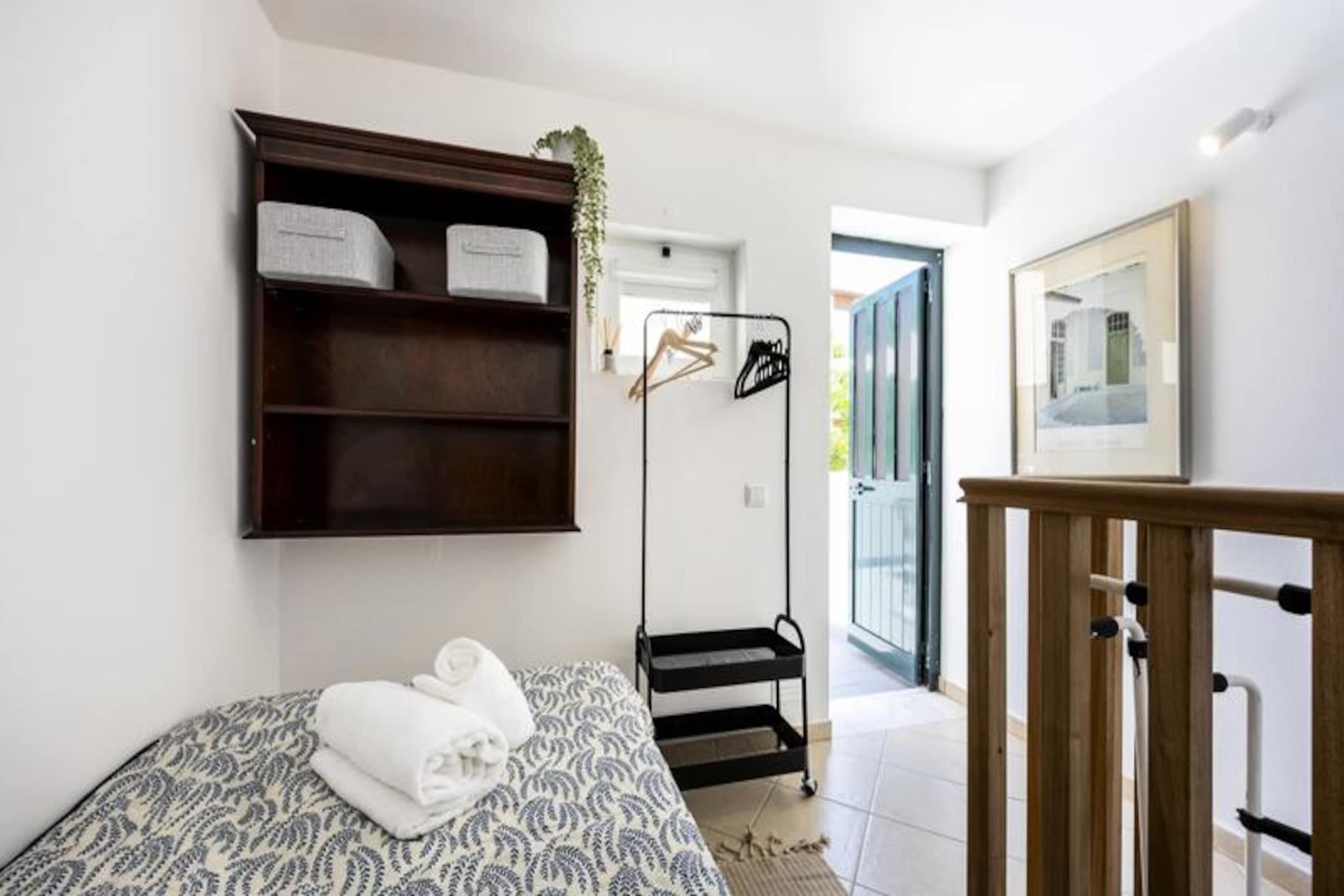 Treten Sie ein ins Herz von Olhátildeo, wo diese durchdacht gestaltete Wohnung eine perfekte Mischung aus modernem Komfort und authentischem portugiesischem Charme bietet. Versteckt im historischen Zentrum lädt dieser gemütliche Rückzugsort dazu ein, die lebendige Kultur, die atemberaubenden Landschaften und die herzliche Gastfreundschaft der Algarve zu erleben. Ob Sie durch Kopfsteinpflasterstraßen schlendern oder in einem lokalen Restaurant frische Meeresfrüchte genießen – jeder Moment hier fühlt sich wie ein Fest des Lebens an. Im Inneren maximiert die Wohnung mit einer cleveren Raumaufteilung Platz und Funktionalität. Der Wohnbereich verfügt über ein Doppelbett, das durch eine elegante Trennwand diskret abgetrennt ist und so ein Gleichgewicht zwischen Offenheit und Privatsphäre schafft. Im Obergeschoss bietet ein ruhiges Einzelzimmer einen friedlichen Rückzugsort. Die voll ausgestattete Küche macht das Zubereiten von Mahlzeiten zum Vergnügen, egal ob Sie einen schnellen Snack zubereiten oder mit Zutaten aus den nahe gelegenen Märkten experimentieren. Das Badezimmer ist modern und praktisch und sorgt für einen erfrischenden Start oder einen entspannten Ausklang Ihres Tages. Die private Terrasse ist ein echtes Highlight und wird von einem Sonnensegel vor der Sonne der Algarve geschützt. Hier können Sie sich mit einem Buch entspannen, ein Glas Wein trinken oder einfach die sanfte Meeresbrise genießen. Nur wenige Schritte entfernt warten der Yachthafen von Olhátildeo, historische Sehenswürdigkeiten und vielseitige Restaurants darauf, von Ihnen entdeckt zu werden. Für Abenteuerlustige sind die Fähren zu den ruhigen Inseln Armona und Culatra leicht zu erreichen, die unberührte Strände und unberührte Natur bieten. Ob Sie als Paar einen romantischen Urlaub verbringen möchten oder als Alleinreisender auf der Suche nach Inspiration sind, diese Wohnung ist Ihr Tor zu den Schätzen der Algarve. Mit ihrer zentralen Lage, modernen Annehmlichkeiten und ihrem unbestreitbaren Charme verspricht sie einen unvergesslichen Aufenthalt.