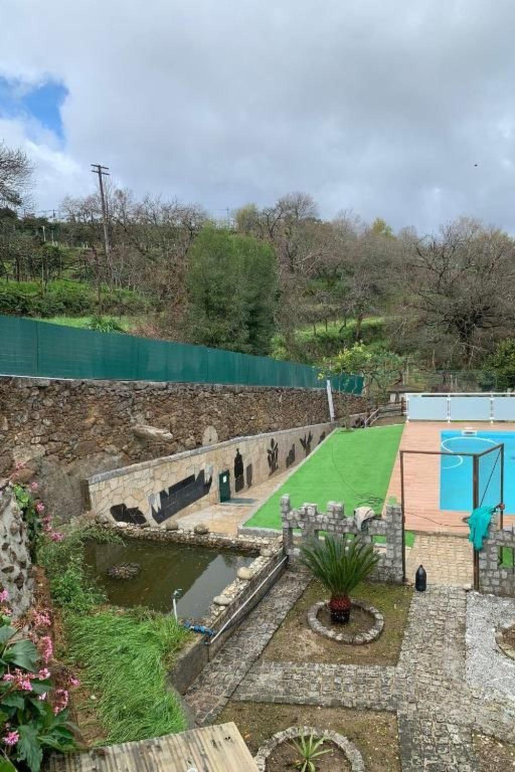 Das Haus bietet Unterkünfte mit kostenfreiem WLAN, Klimaanlage, einem Außenpool, einem Garten, einer Tischtennisplatte und Tischfußball. Das Ferienhaus bietet kostenfreie Privatparkplätze und befindet sich in einem Gebiet, in dem Sie Aktivitäten wie Wandern und Tischtennis nachgehen können.