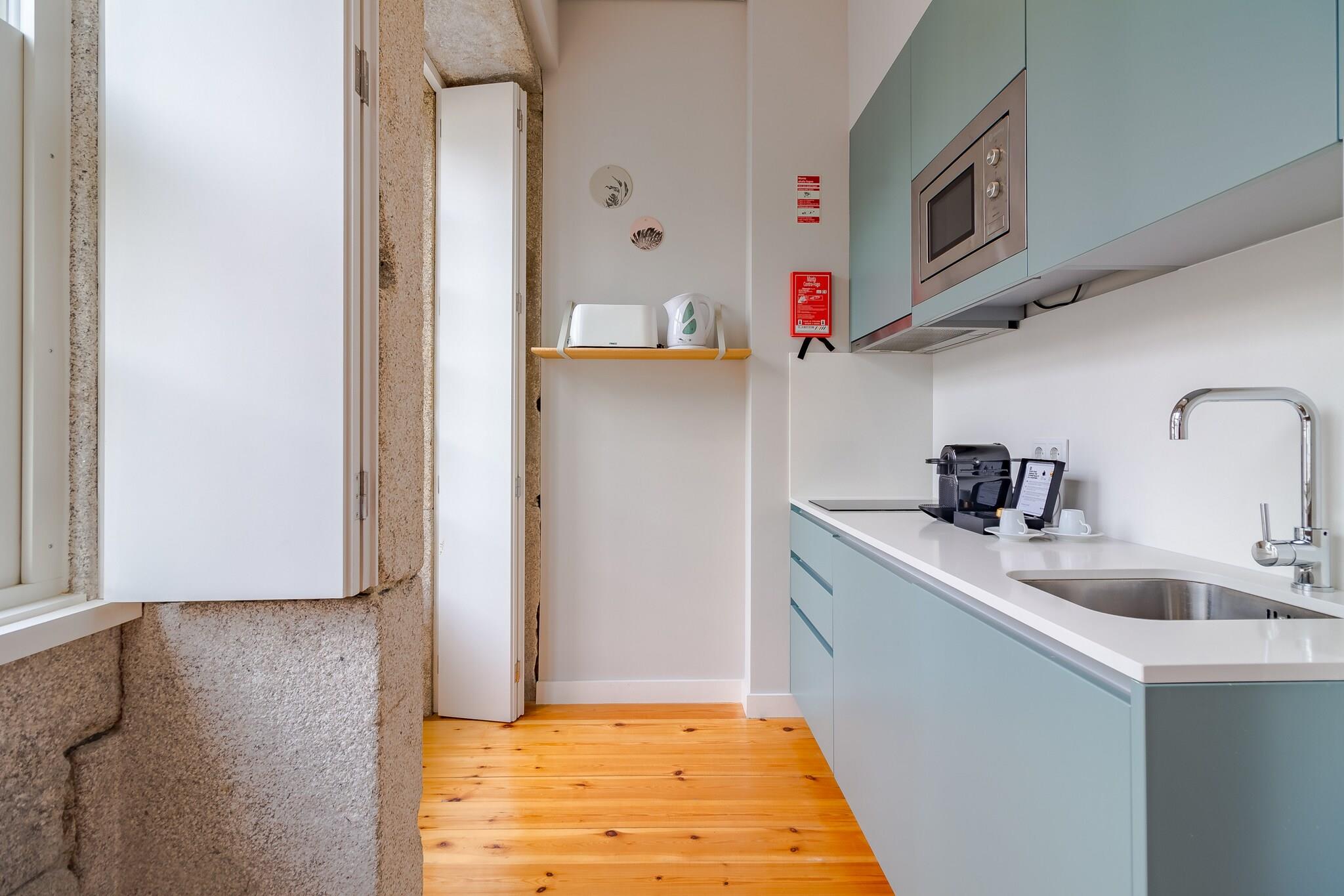 Dieses gemütliche und gut ausgestattete Apartment befindet sich im Herzen der pulsierenden Stadt Porto. Mit einer Fläche von 35 m² bietet es den perfekten Ort für einen komfortablen Aufenthalt. Das Apartment verfügt über ein Schlafzimmer mit Doppelbett für erholsamen Schlaf. Die separate Küche ist komplett ausgestattet mit Kühlschrank, Gefrierschrank, Kaffeemaschine, Backofen, Mikrowelle und allen notwendigen Utensilien für die Zubereitung köstlicher Mahlzeiten. Klimaanlage, WLAN und ein Fernseher mit spanischen, englischen, französischen und portugiesischen Kanälen sorgen für Ihren Komfort während Ihres gesamten Aufenthalts. Das Badezimmer mit Dusche rundet die Ausstattung dieser Unterkunft ab. Es gibt zwar keine Parkplätze vor Ort, aber in der Nähe des Gebäudes stehen Parkmöglichkeiten zur Verfügung. Haustiere sind leider nicht erlaubt. Dieses Apartment ist die perfekte Wahl für alle, die einen komfortablen und gut gelegenen Aufenthalt in Porto mit guter Anbindung an die Sehenswürdigkeiten und öffentlichen Verkehrsmittel suchen. Ob geschäftlich oder privat – dieses Apartment bietet eine hervorragende Kombination aus Komfort und Funktionalität und sorgt für ein unvergessliches Erlebnis im Herzen von Porto.