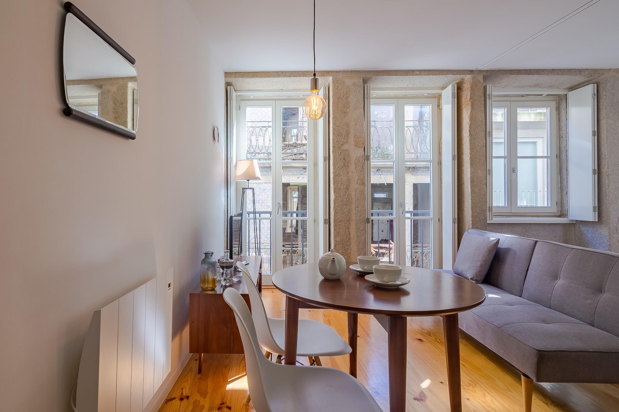 Dieses gemütliche, 28 m² große Studio-Apartment befindet sich im Herzen von Porto und bietet eine komfortable und praktische Unterkunft für Ihren Aufenthalt in der Stadt. Das Apartment verfügt über drei Einzelbetten und ist somit ideal für kleine Gruppen oder Alleinreisende. Die separate Küche ist komplett ausgestattet mit allen wichtigen Geräten wie Kochplatte, Kühlschrank, Mikrowelle, Backofen, Gefrierschrank, Kaffeemaschine, Toaster und Wasserkocher. Geschirr, Besteck und Kochutensilien sind ebenfalls vorhanden. Das Badezimmer verfügt über eine Dusche und einen Haartrockner. Das Apartment befindet sich in bester Lage, nur wenige Schritte von Portos beliebten Sehenswürdigkeiten wie historischen Wahrzeichen, Cafés und Restaurants entfernt. Es gibt zwar keine Parkplätze vor Ort, aber Sie finden Parkmöglichkeiten in der Nähe. Es ist der perfekte Ort, um die lebendige Atmosphäre Portos zu genießen und alles zu erkunden, was diese charmante Stadt zu bieten hat. Zu den weiteren Annehmlichkeiten gehören kostenloses WLAN, Sat-TV, Elektroheizung und ein Bügeleisen. Bettwäsche und Handtücher werden gestellt. Die Endreinigung ist im Gesamtpreis inbegriffen. Gäste können kostenlos einen Hochstuhl oder ein Kinderbett anfordern. Bitte beachten Sie, dass Haustiere nicht erlaubt sind und die Unterkunft keine Jugendgruppen akzeptiert. Dieses Studio-Apartment bietet einen komfortablen und gut ausgestatteten Raum für einen angenehmen Aufenthalt in Porto.