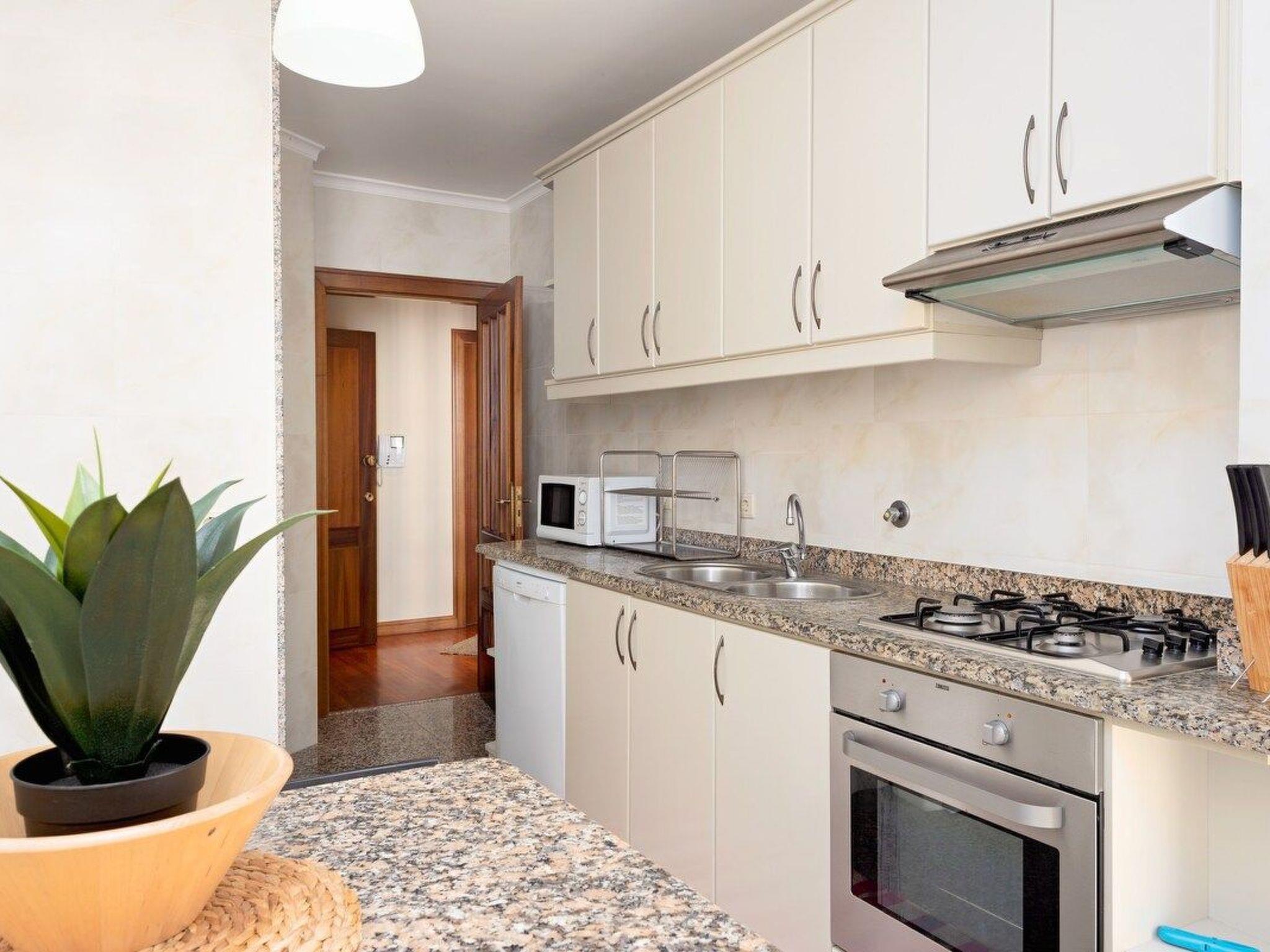 Das Innere der Wohnung ist so ausgestattet, dass alle Ihre Bedürfnisse erfüllt werden. Es gibt drei gemütliche Schlafzimmer, die genügend Platz für alle Gäste bieten. Ein Schlafzimmer verfügt über ein eigenes Bad, das für zusätzliche Privatsphäre sorgt. Außerdem steht Ihnen eine Waschmaschine zur alleinigen Nutzung zur Verfügung, so dass Sie sich während Ihres Aufenthalts problemlos um die Wäsche kümmern können. Ein Gasherd, eine Kaffeemaschine, ein Geschirrspüler und ein Wasserkocher in der Küche machen die Zubereitung von Mahlzeiten einfach und angenehm.